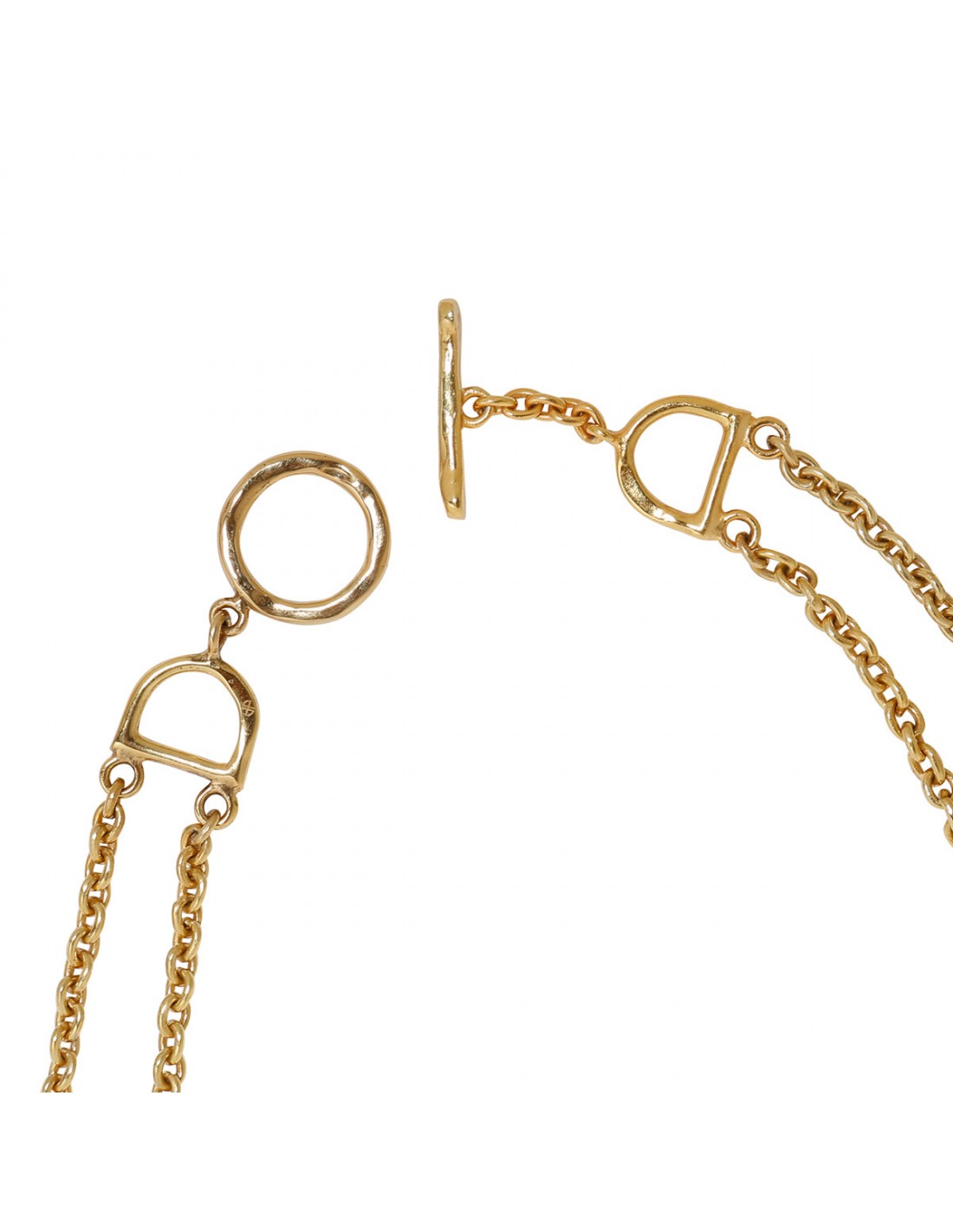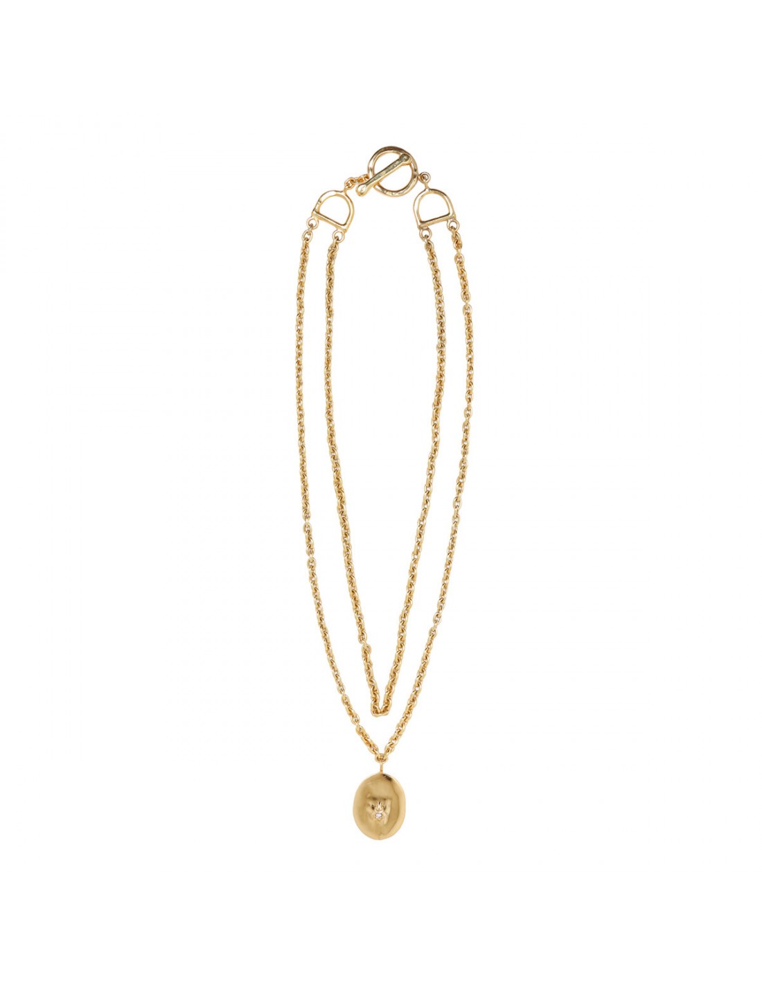 Gold-plated Bocca double necklace from Patou featuring oval pendant with cut-outs inspired by the Bocca della Verità, clasp fastening.