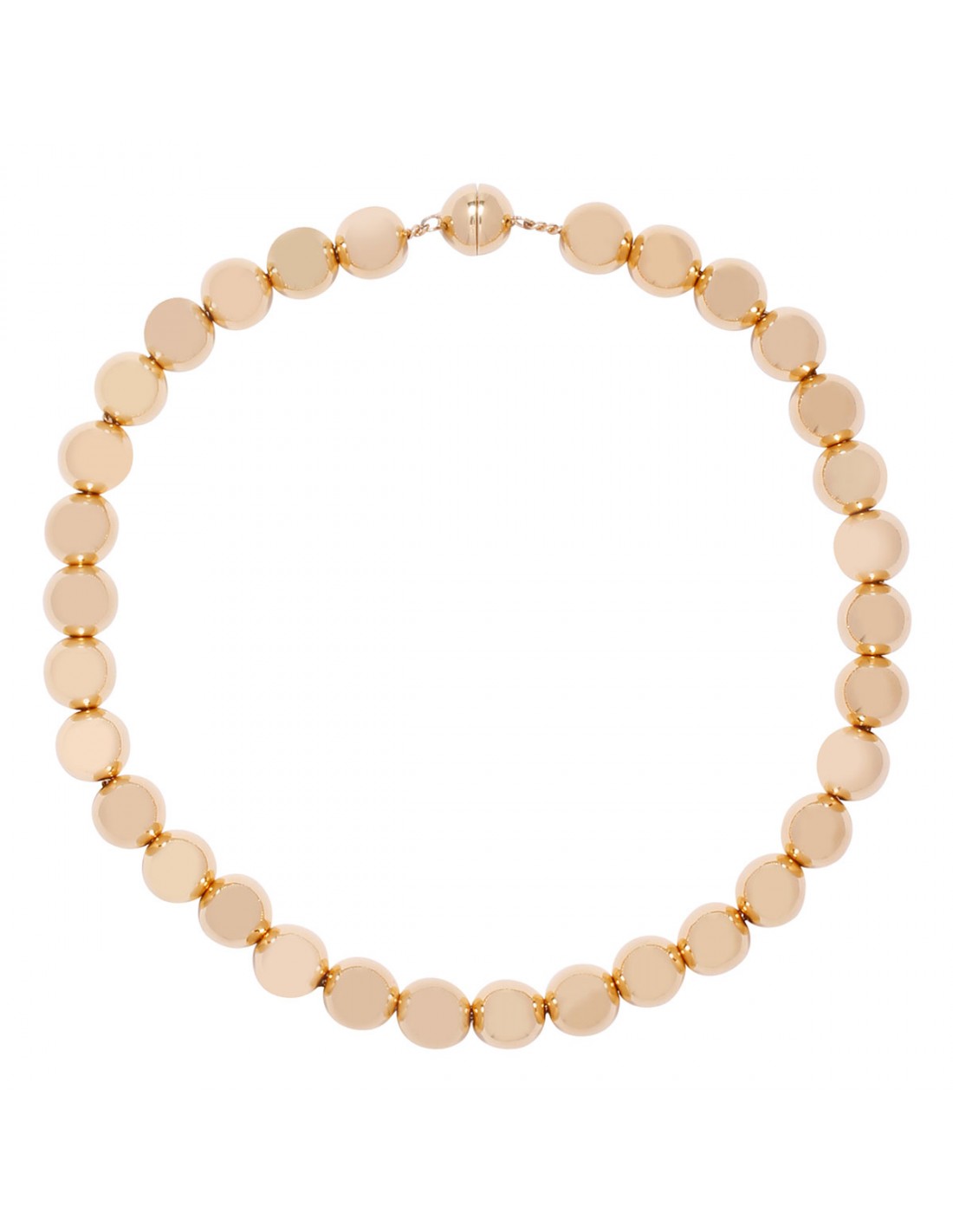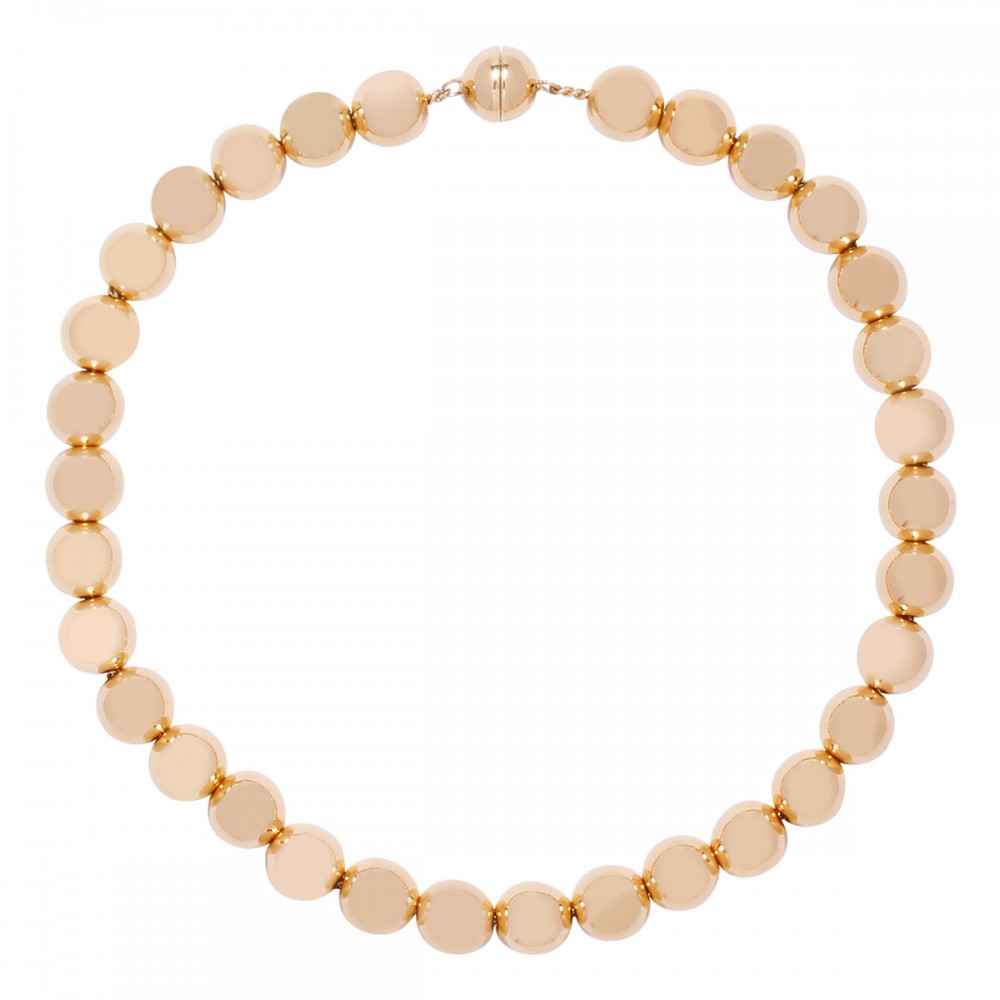 Gold-tone real silver 925 metal sphere necklace from Jil Sander featuring magnetic toggle closure.