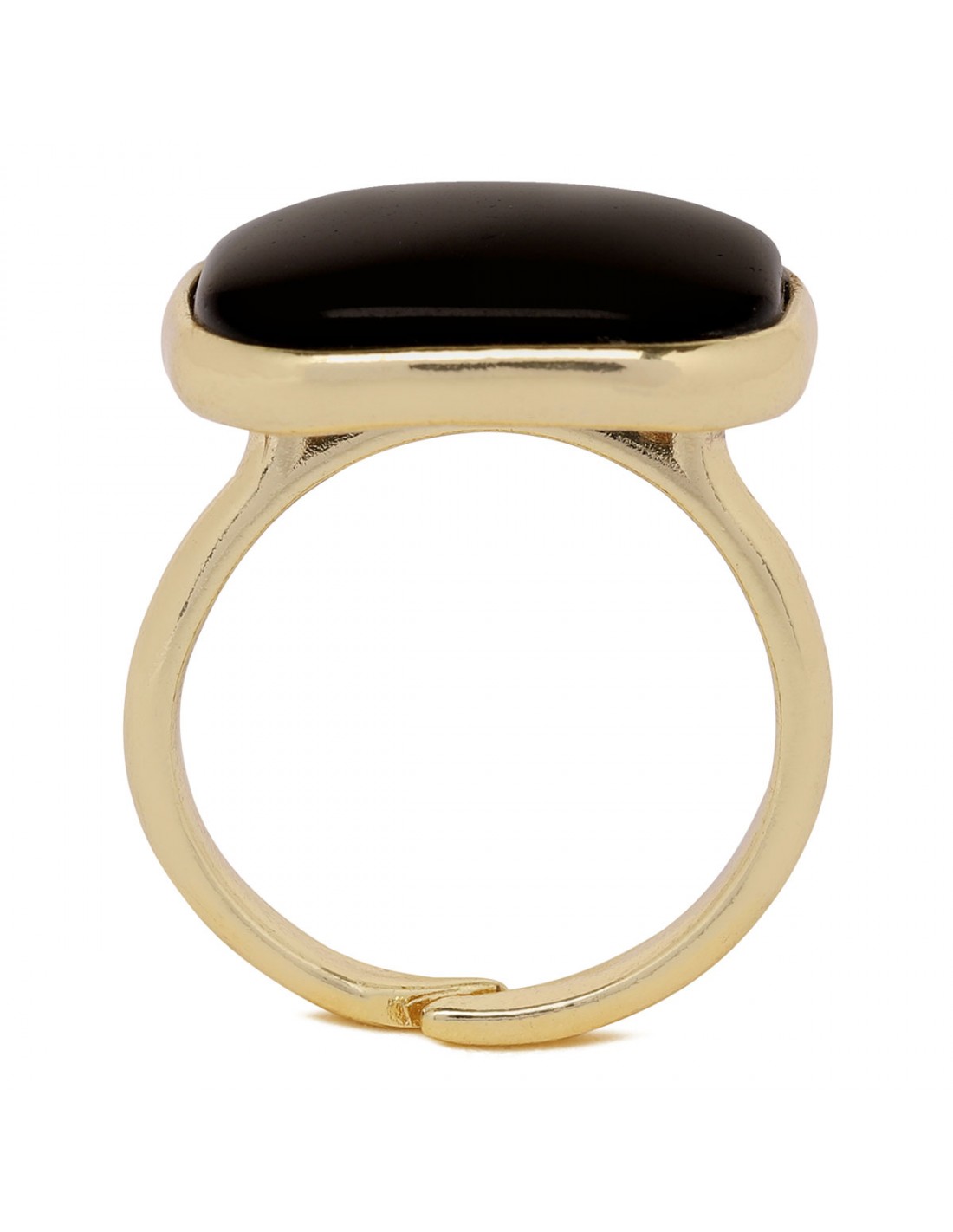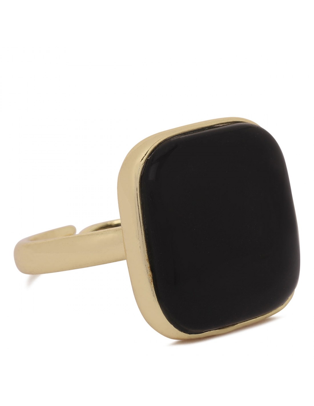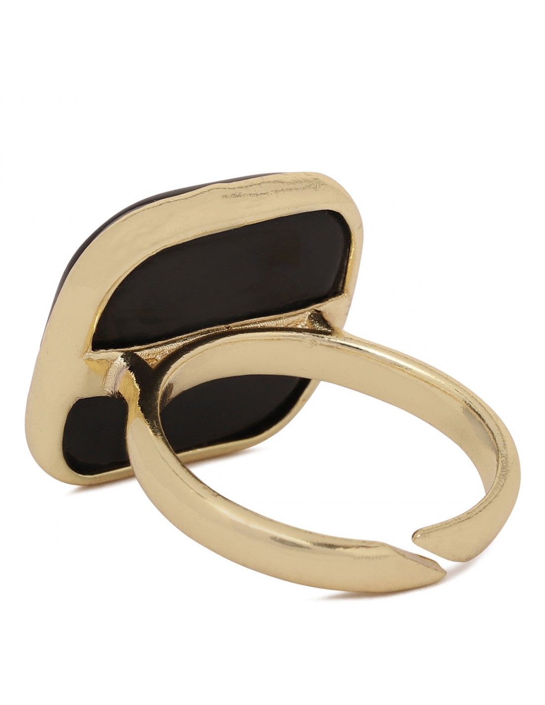 Golden brass adjustable ring from Almala featuring black square shape stone.
