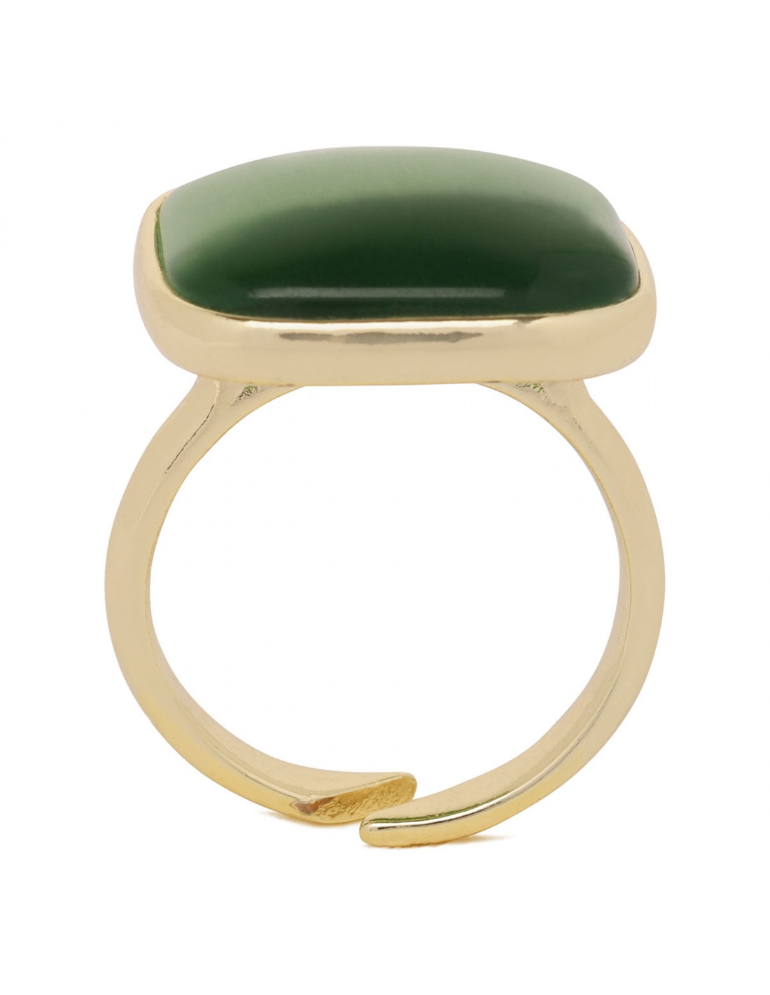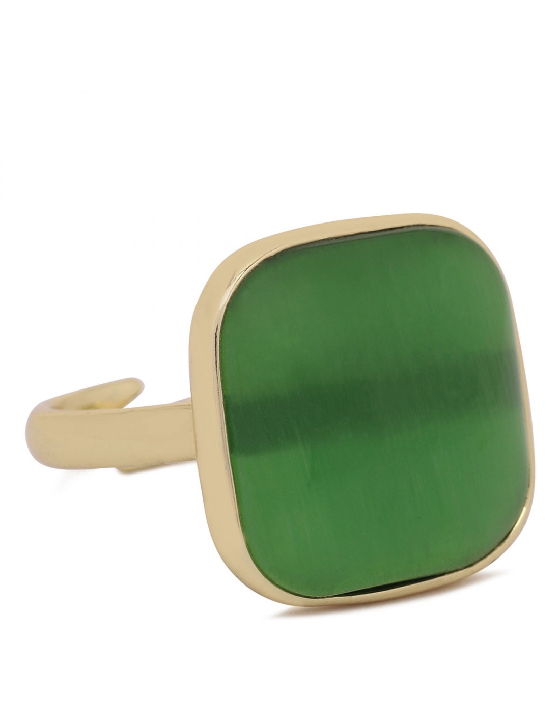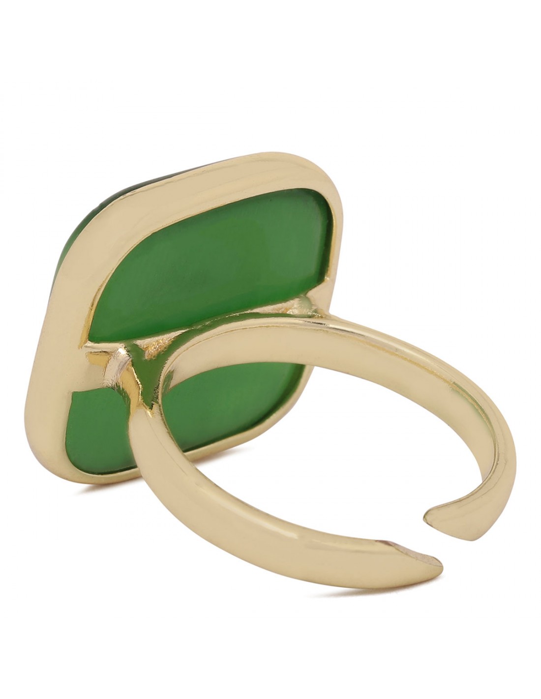 Golden brass adjustable ring from Almala featuring green square shape stone.