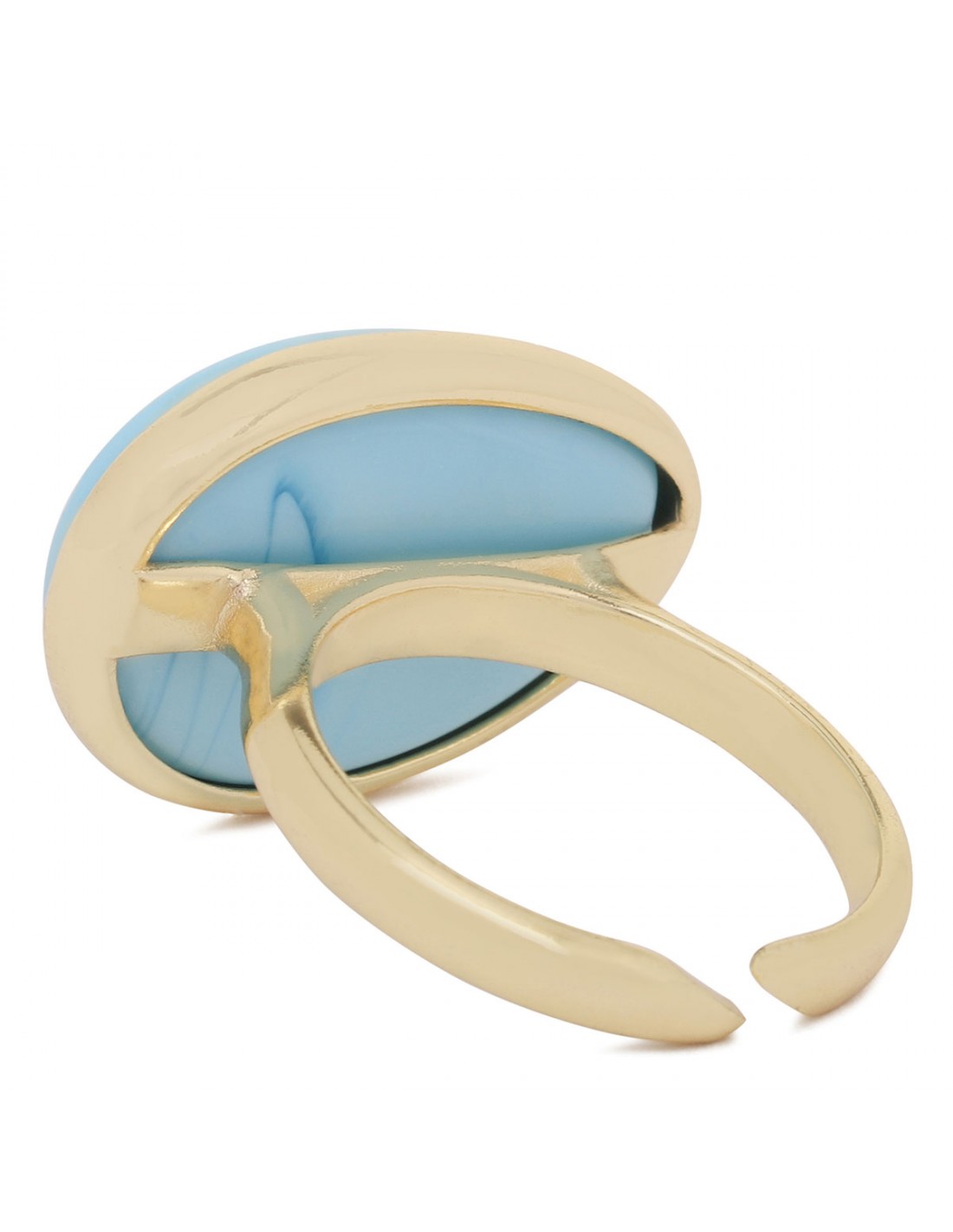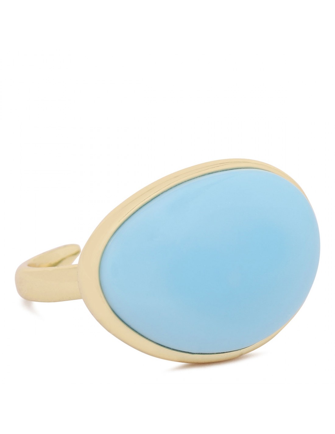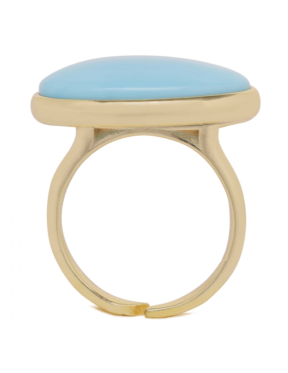 Golden brass adjustable ring from Almala featuring turquoise oval shape stone.