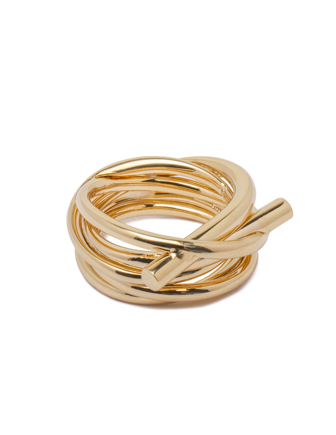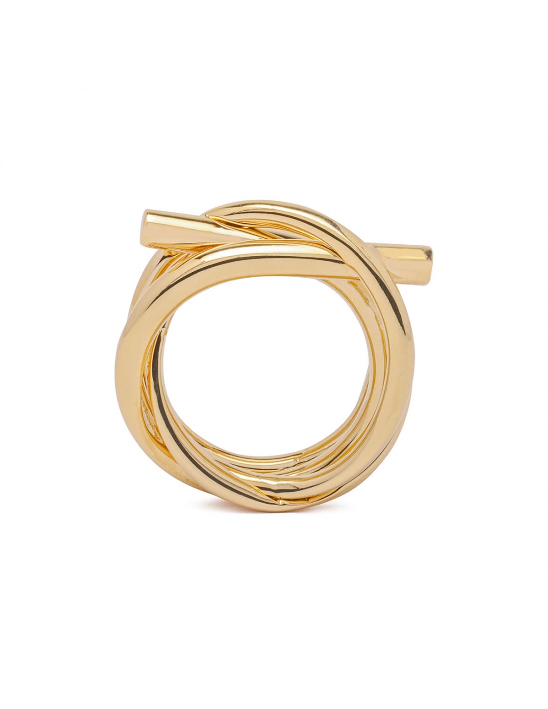 Gold-tone metal Gancini chunky ring from Ferragamo featuring twisted metal strings, Gancio silhouette.