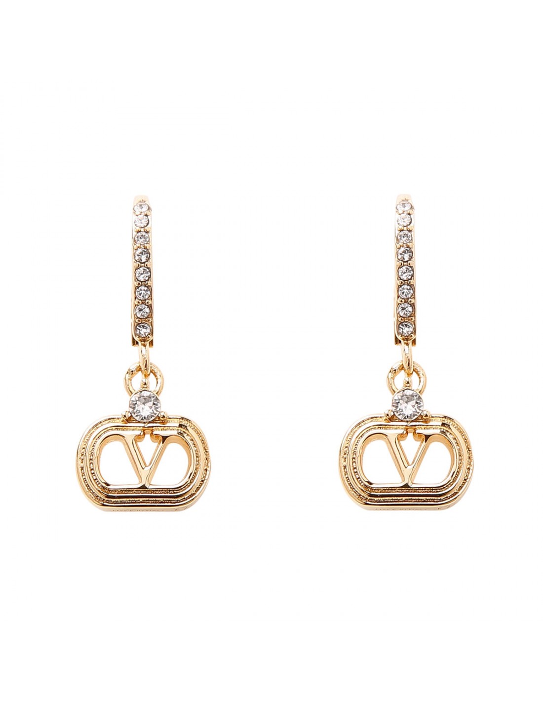 Gold-tone metal Ovalette earrings from Valentino featuring Swarovski® crystals, VLogo, leverback closure.