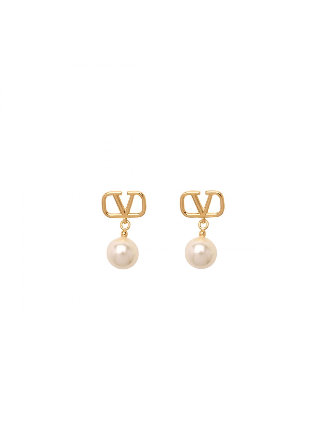 Gold-tone metal earrings from Valentino Garavani featuring VLogo Signature, cream Swarovski® pearls and butterfly fastening.