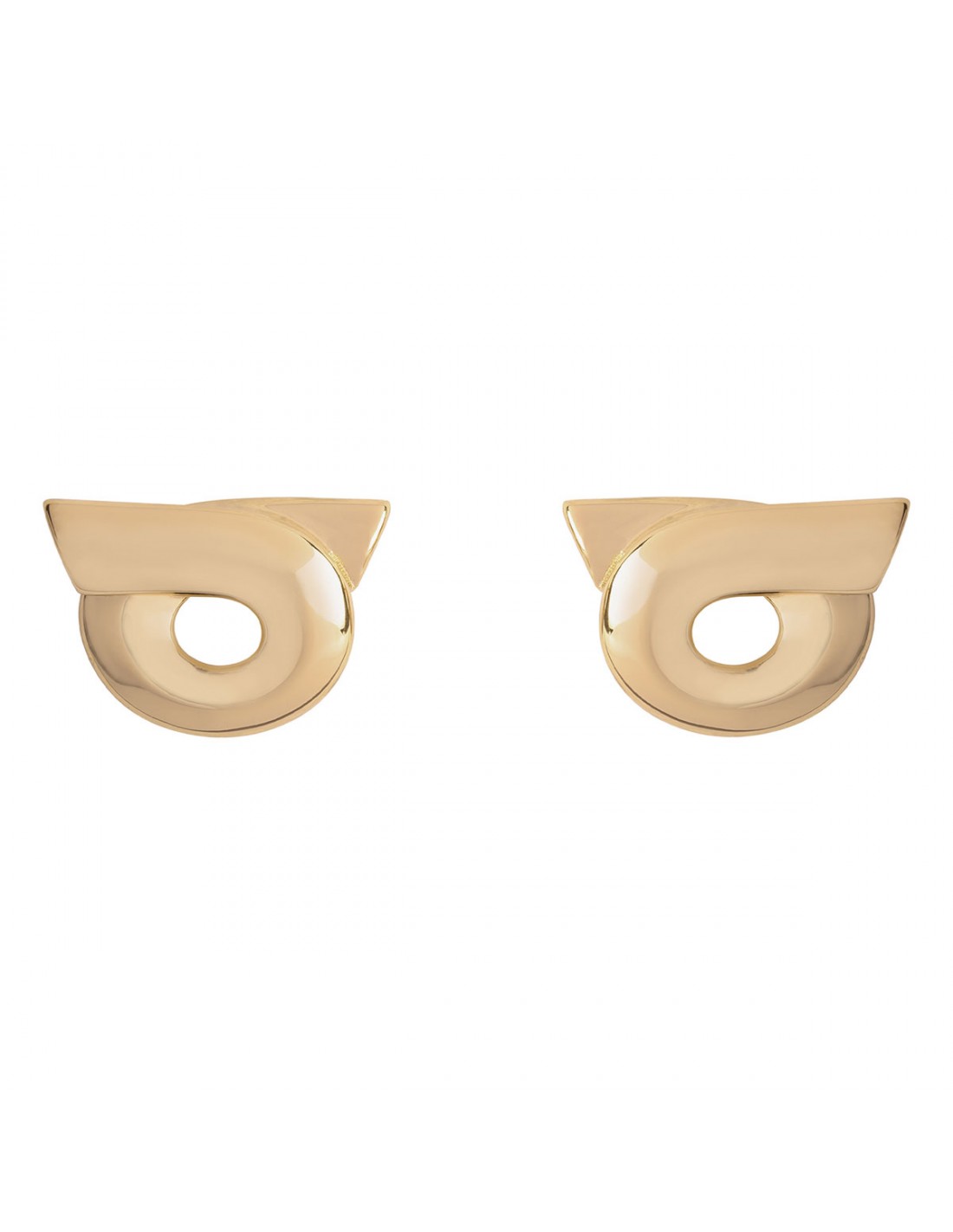 Gold-tone metal Gancini New 18 earrings from Ferragamo featuring Gancini silhouette with fluid line, glossy finish, stud fastening.