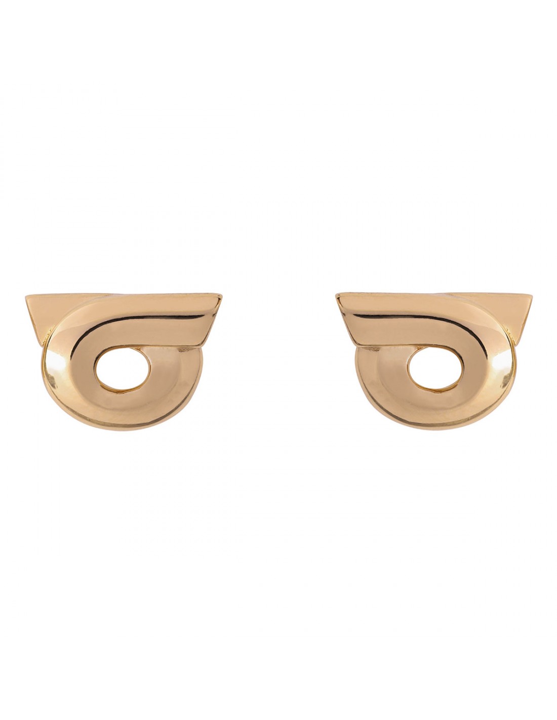 Gold-tone metal Gancini New 14 earrings from Ferragamo featuring Gancini silhouette with fluid line, glossy finish, stud fastening.