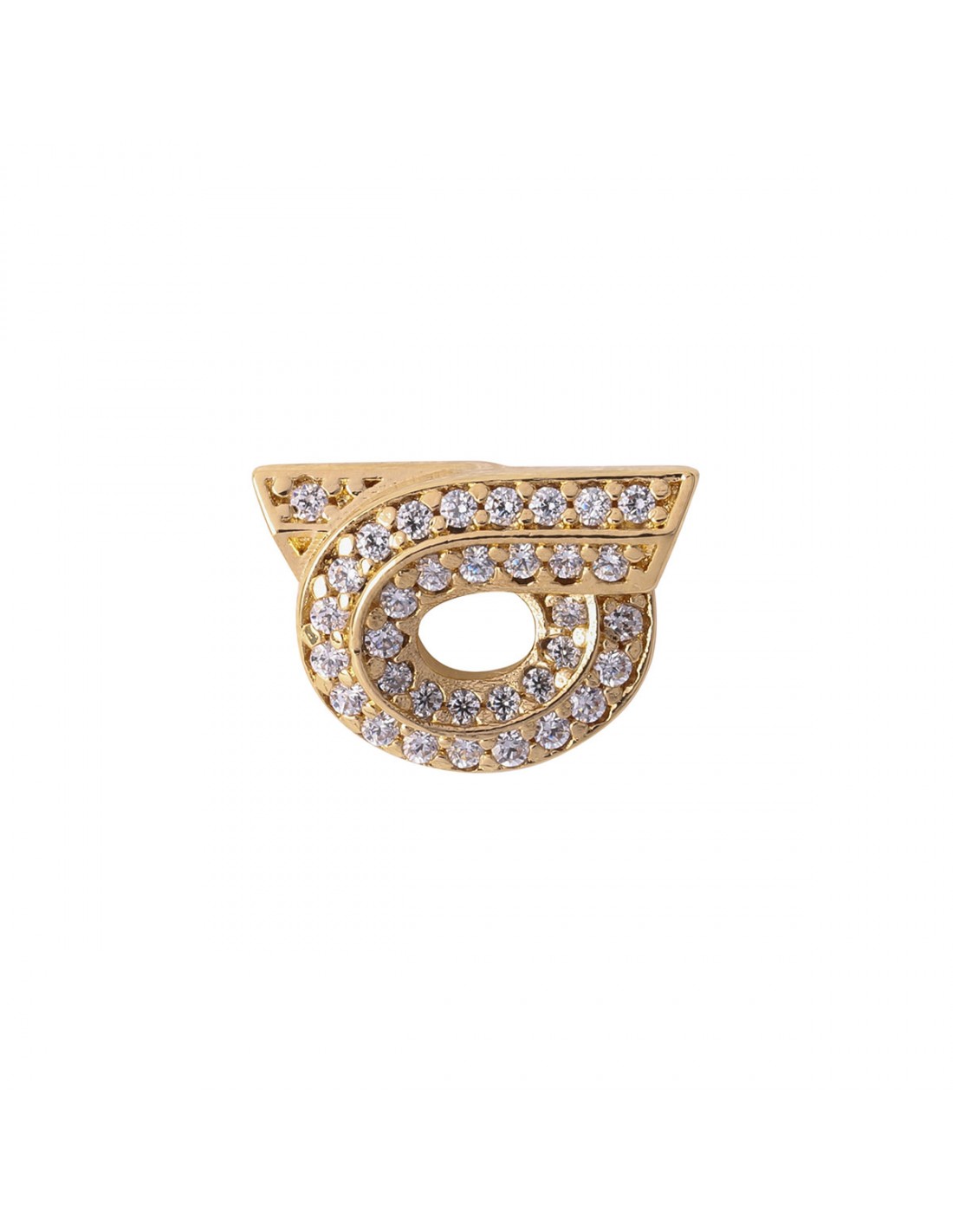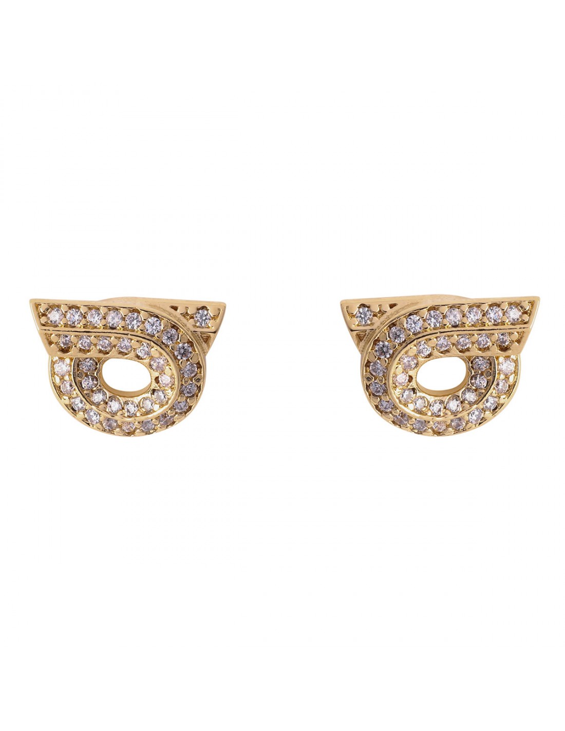 Gold-tone metal Gancini New 14 earrings from Ferragamo featuring Gancini silhouette with fluid line, mini crystals embellishment, glossy finish, stud fastening.