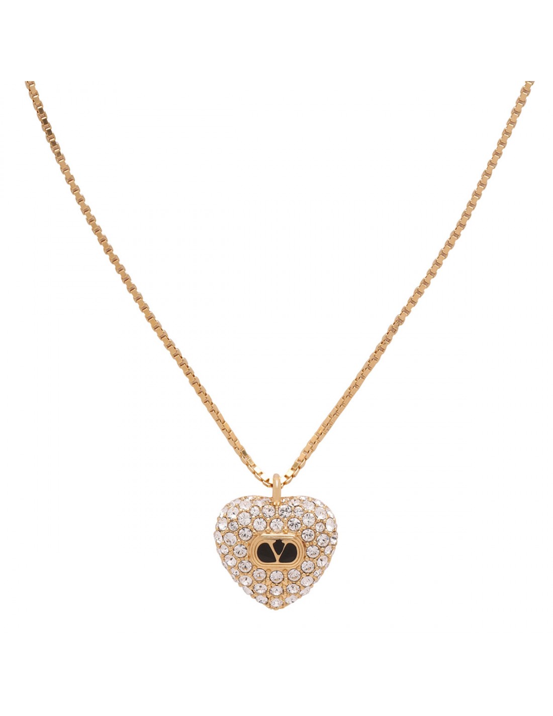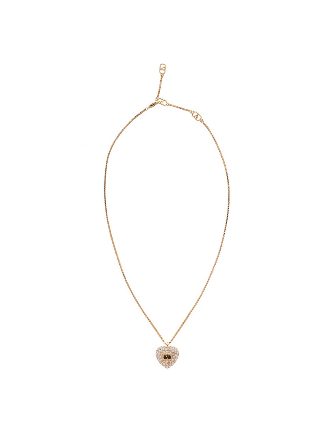 Gold-tone finish metal, enamel and Swarovski® crystals Coeur Royal necklace from Valentino Garavani featuring heart with metal and enamel ovalette detail, adjustable length, swivel carabiner fastening.
