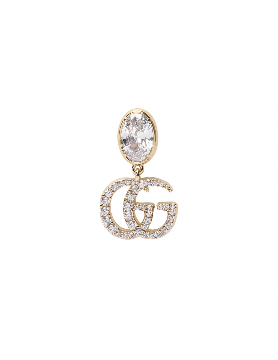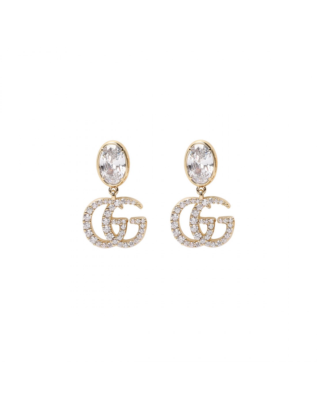 Gold-toned brass GG Marmont earrings from Gucci featuring crystal drop, double G and butterfly fastening.