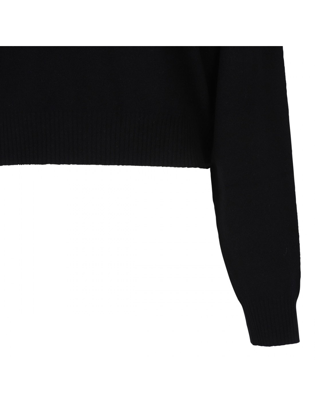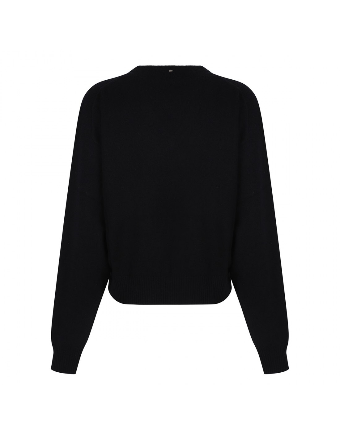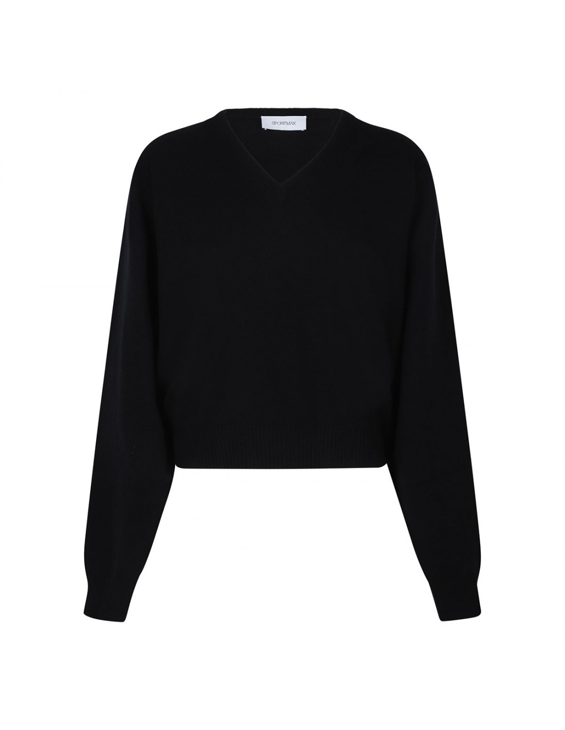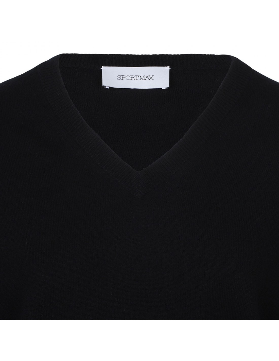 Black wool and cashmere blend Polis sweater from Sportmax featuring V-neck, long sleeves, ribbed-knit edges.