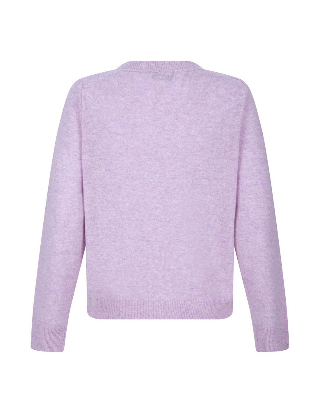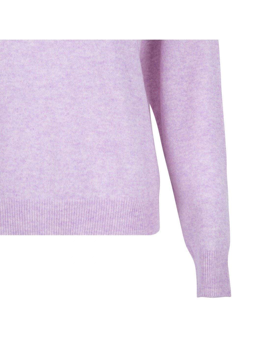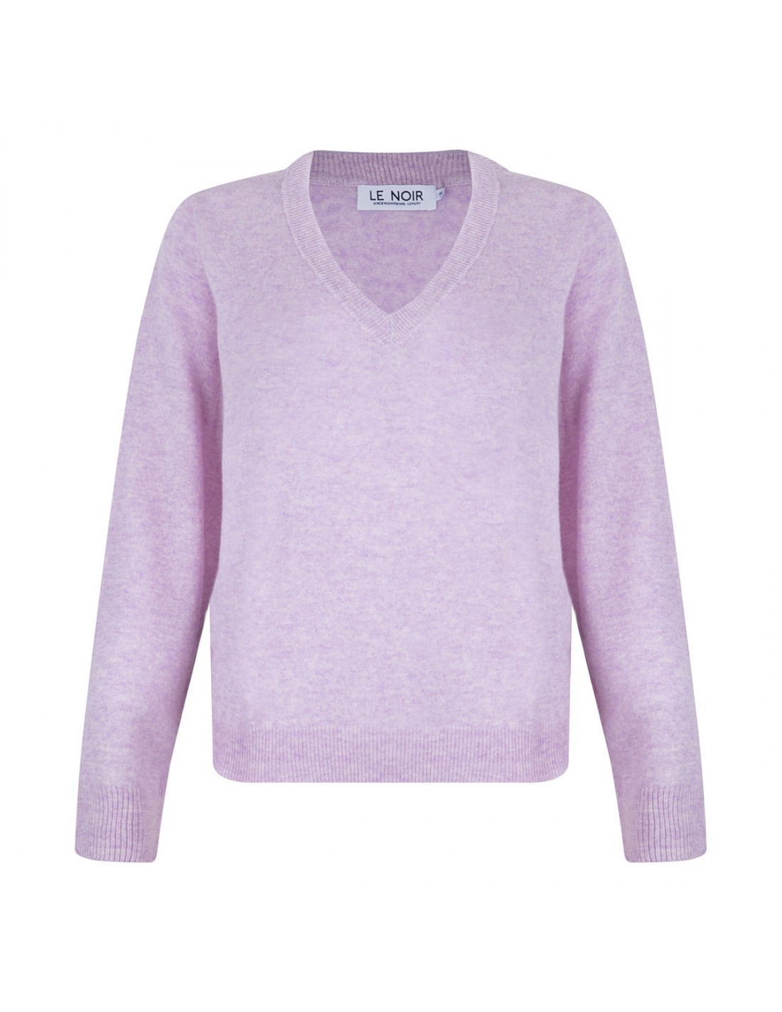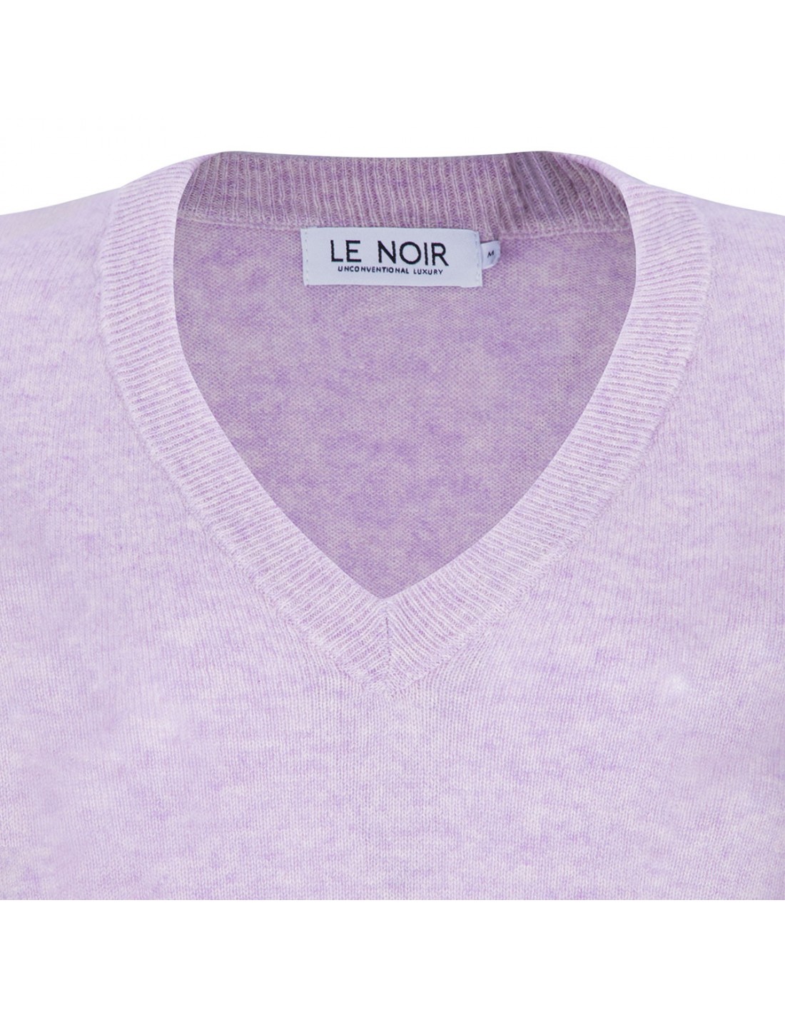 Lilac cashmere Celia sweater from Le Noir featuring V-neck, long sleeves and ribbed knit edges.