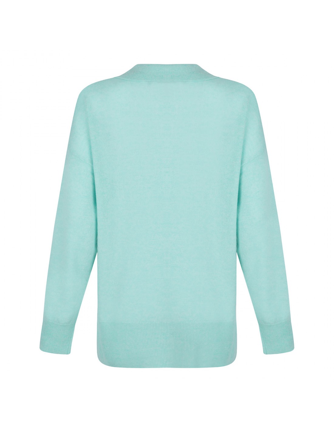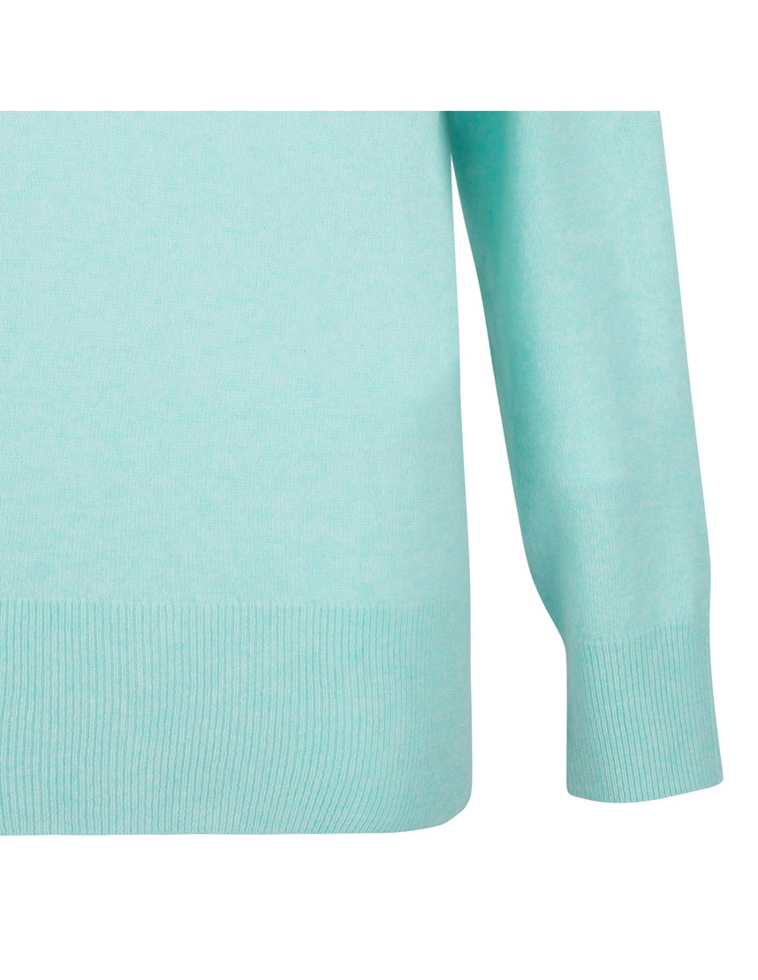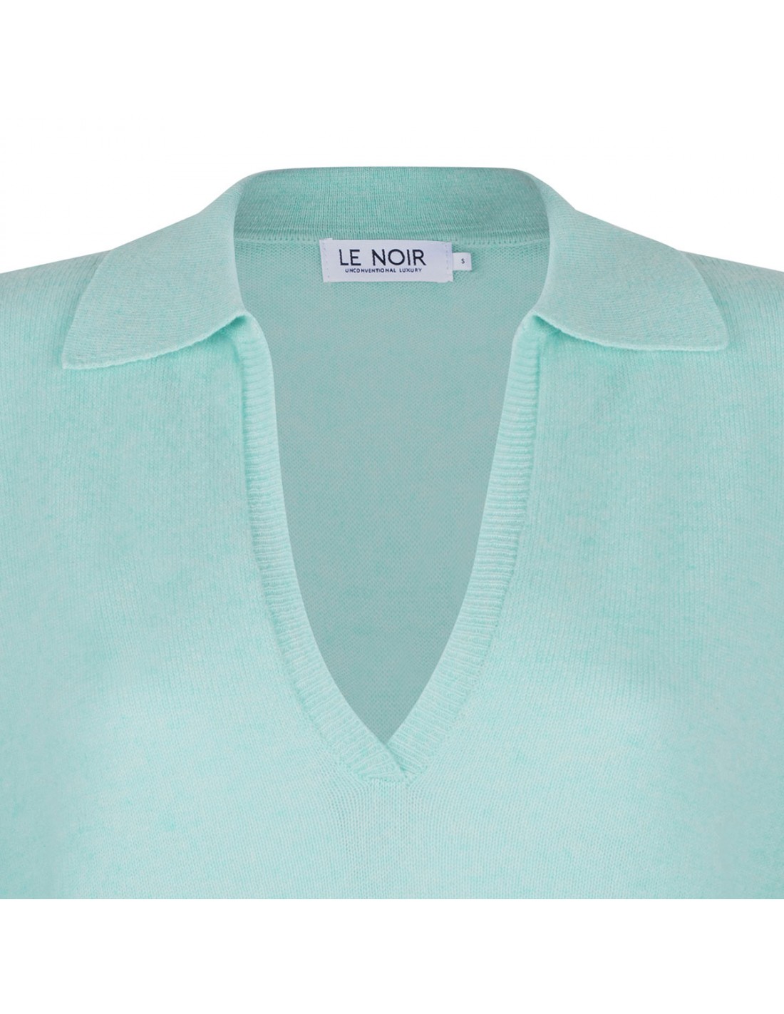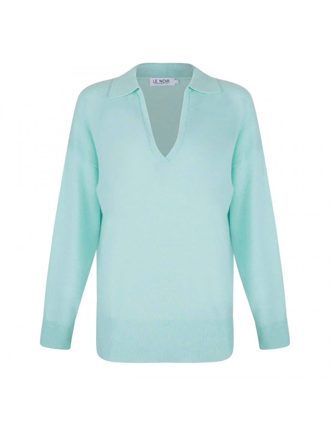 Mint green cashmere Romeo polo sweater from Le Noir featuring polo collar with V-neck, long sleeves, ribbed-knit edges.