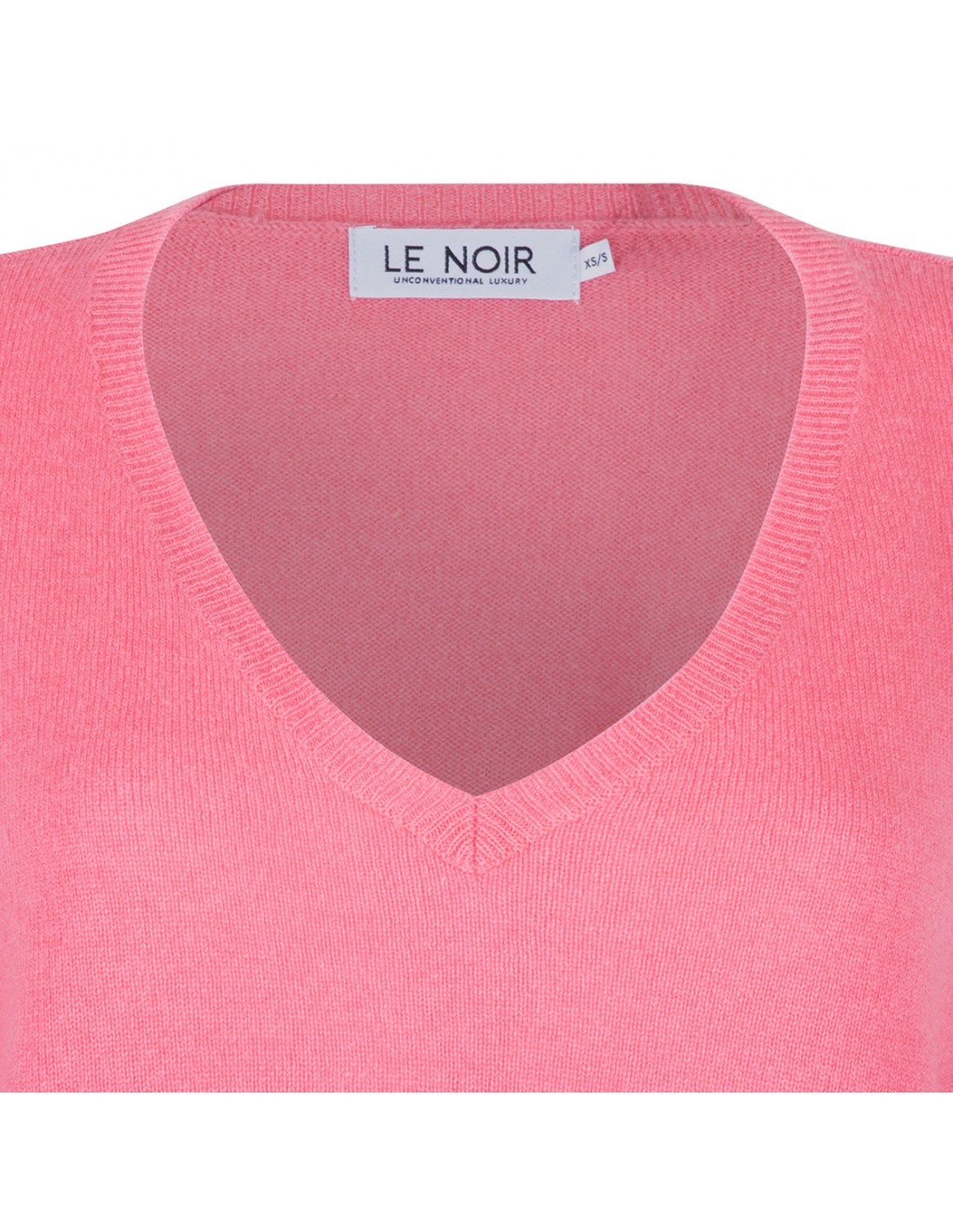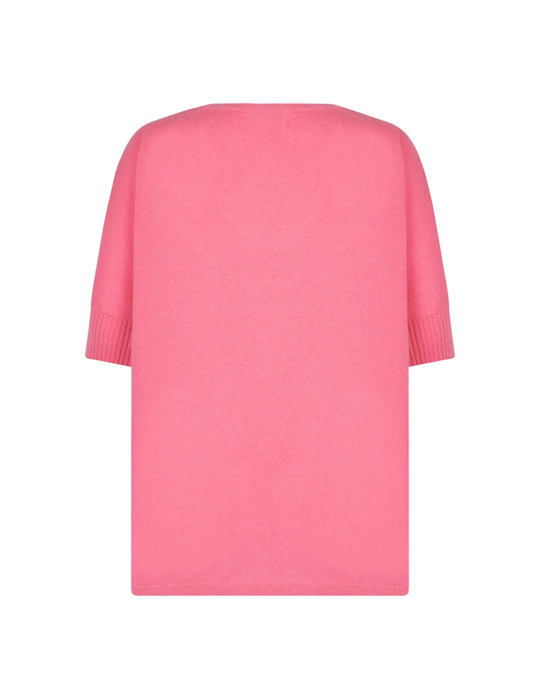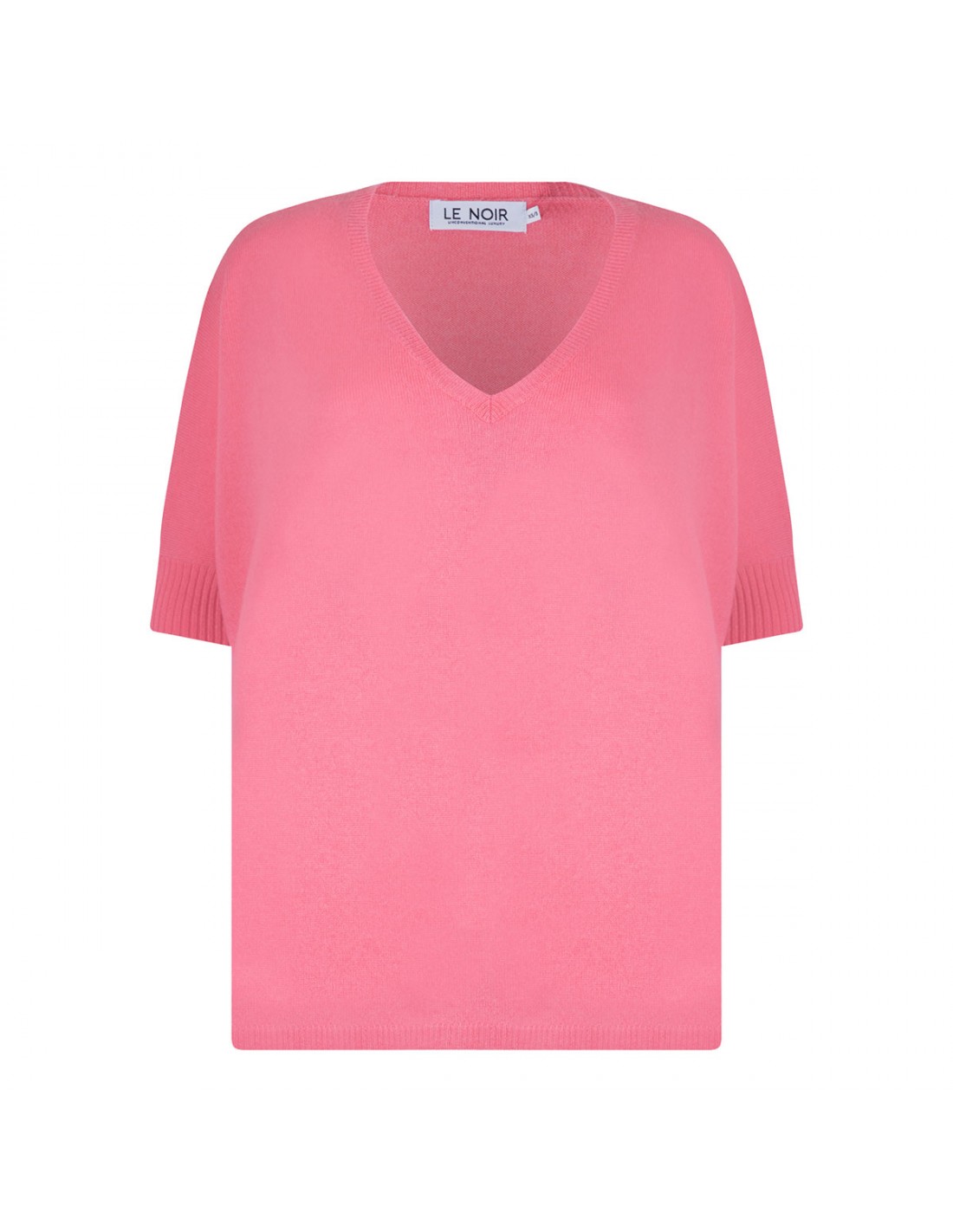 Acid pink cashmere Aimee top from Le Noir featuring V-neck, half-length sleeves, ribbed knit edges.