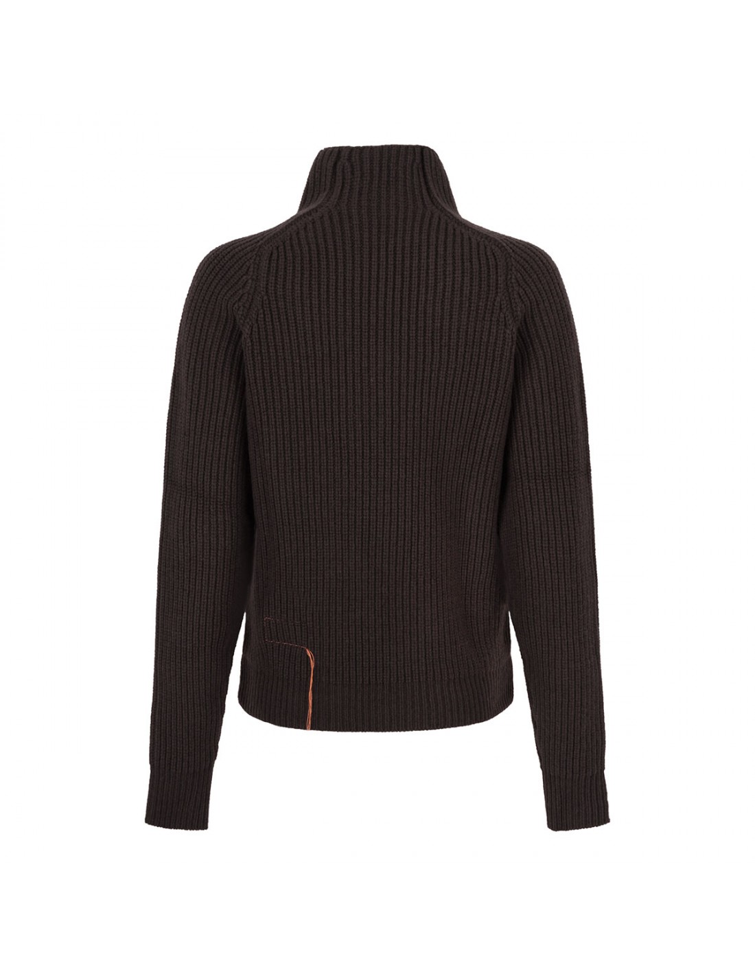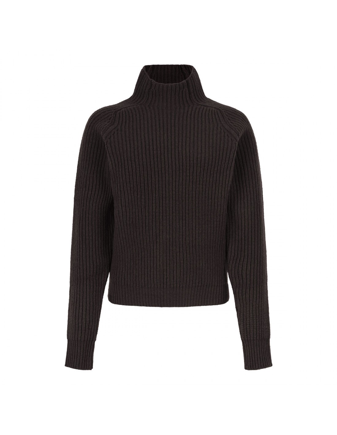 Brown merino wool and cashmere Leona sweater from Fortela featuring turtleneck, dropped shoulders, regular fit.