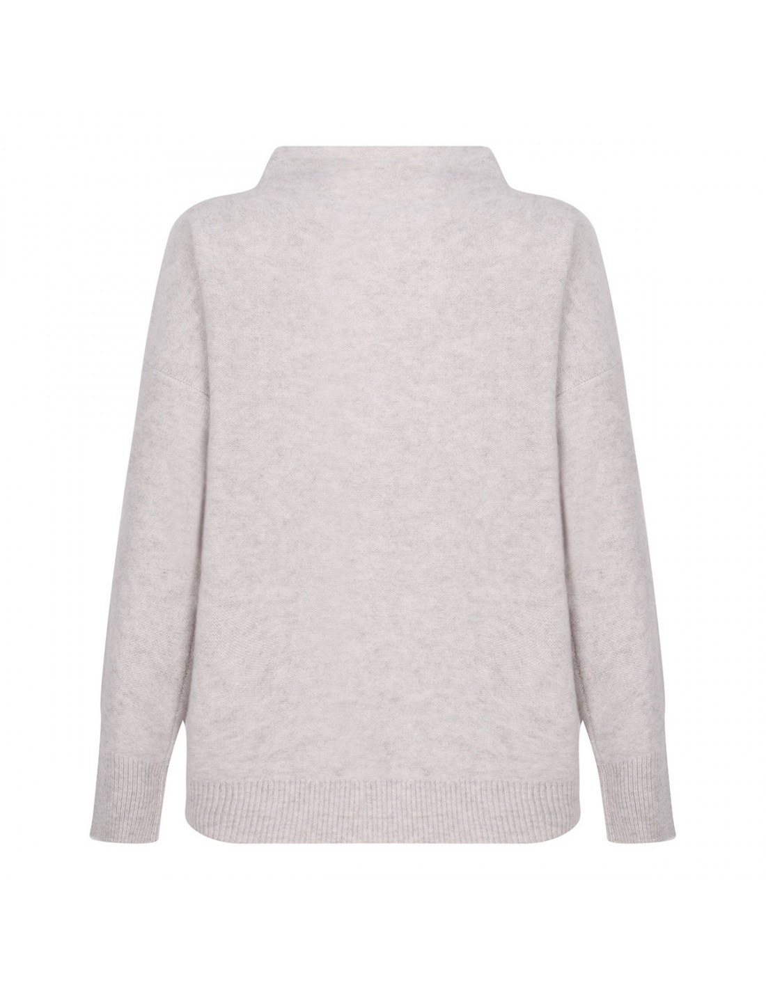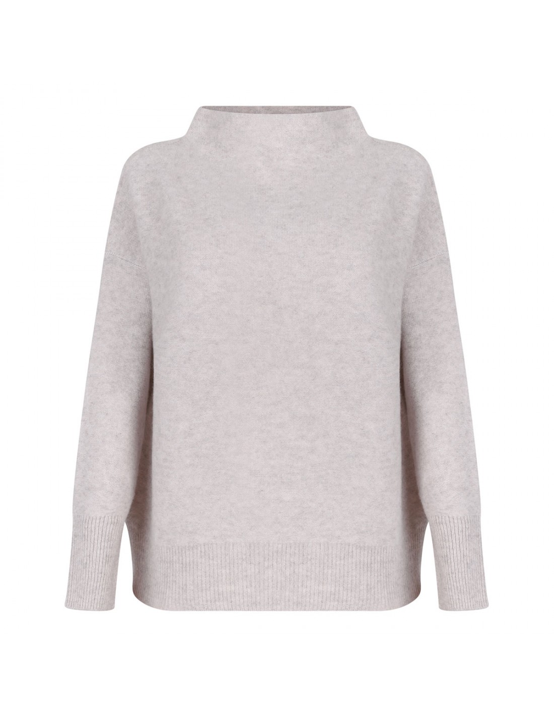Marble hue boiled cashmere sweater from Vince featuring funnel neck, long fitted sleeves, dropped shoulders, ribbed-knit edges.