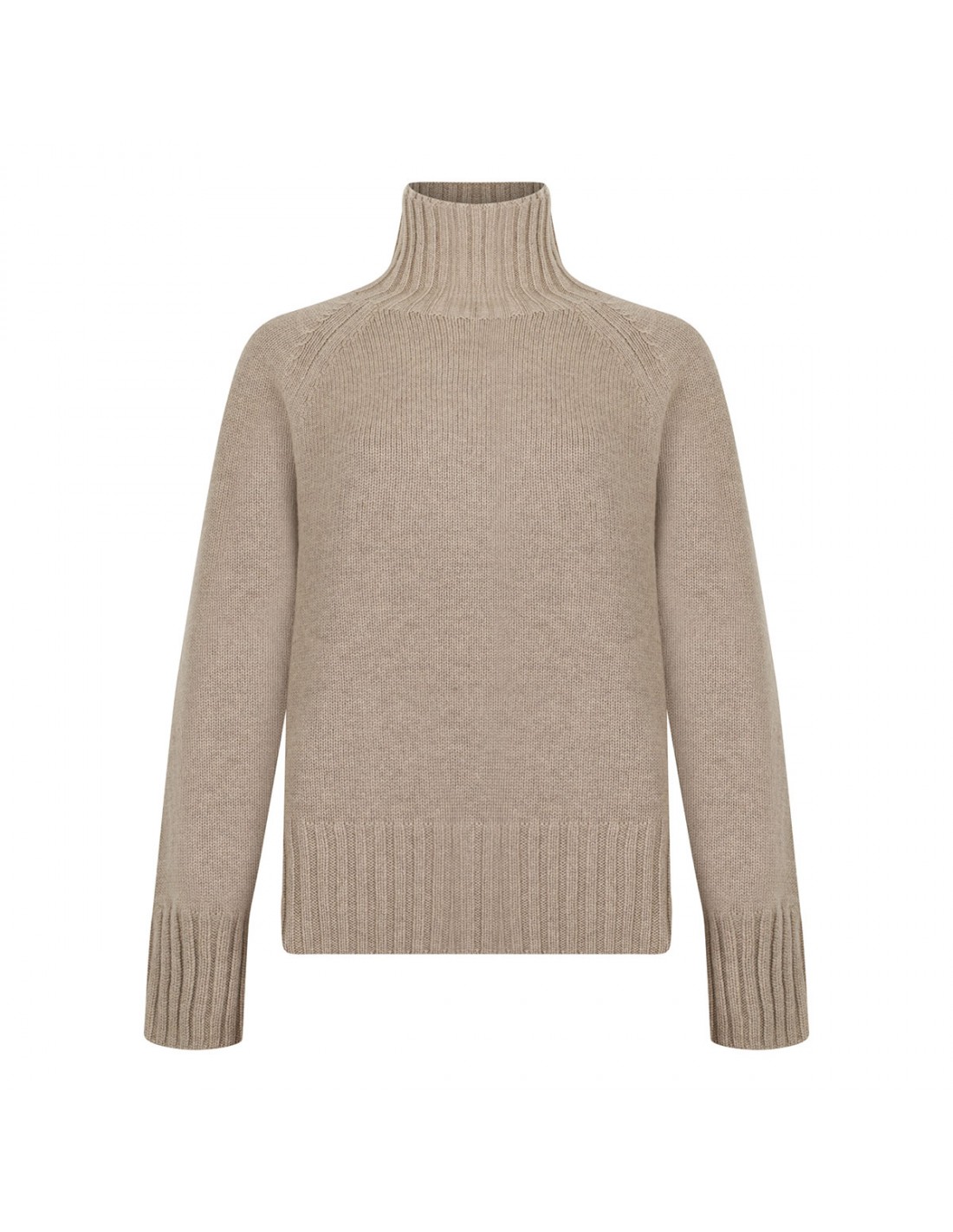 Beige wool and cashmere Mantova sweater from 'S Max Mara featuring turtleneck, boxy silhouette, long raglan sleeves, straight hem, ribbed-knit trims.