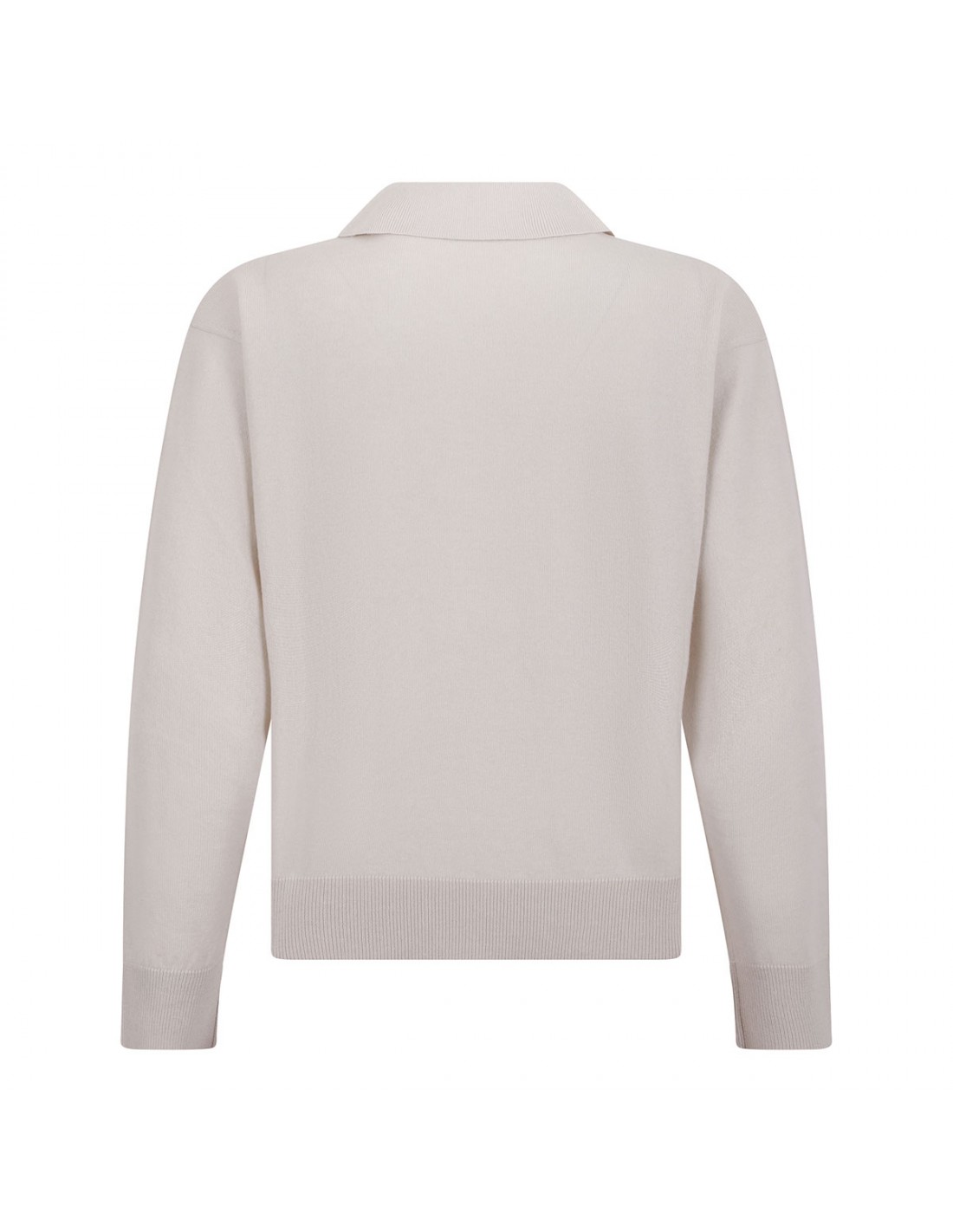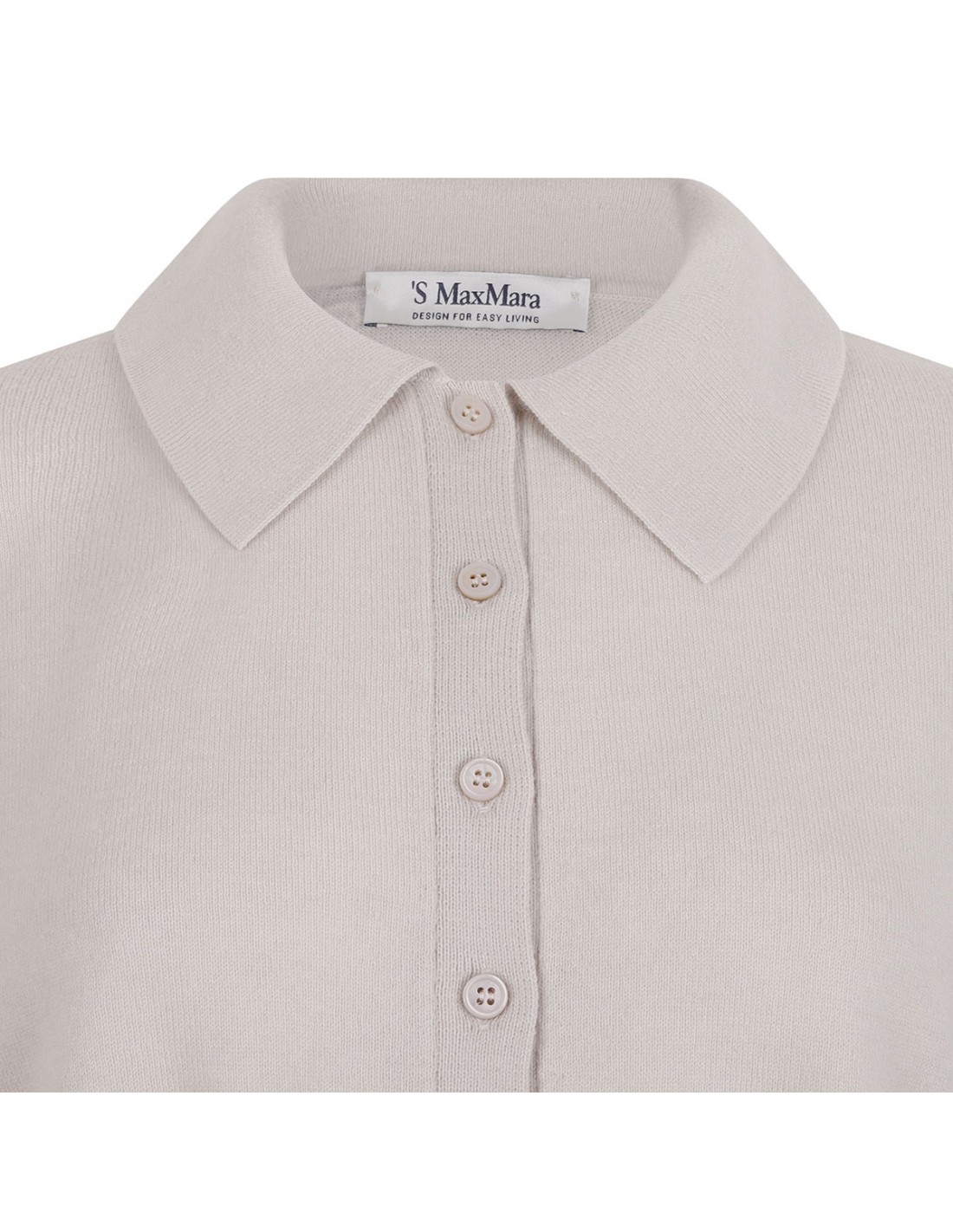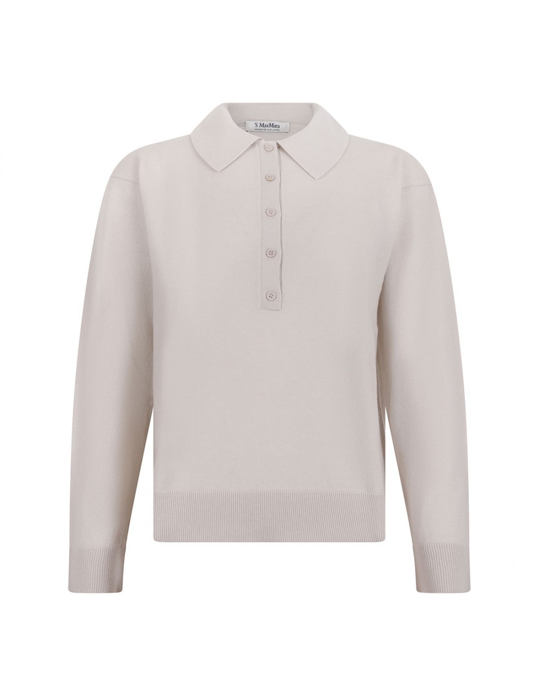 Ecru wool Frisia polo sweater from 'S Max Mara featuring polo collar, partially buttoned front, long sleeves and ribbed-knit edges