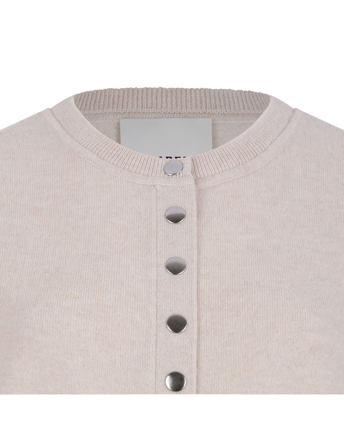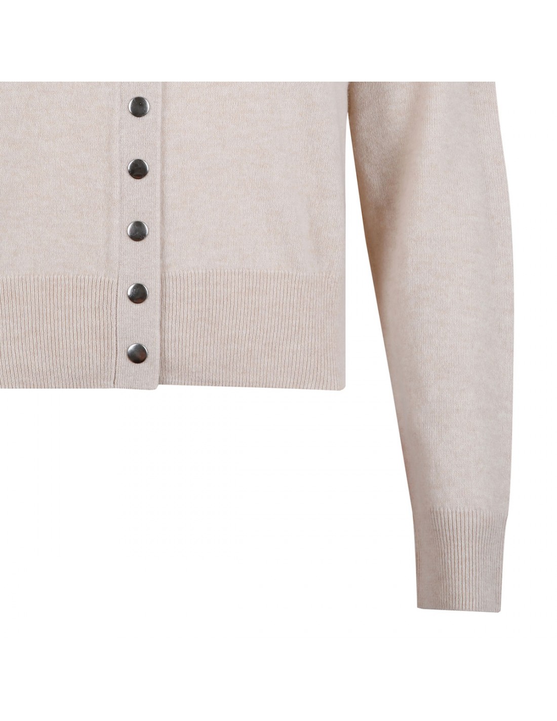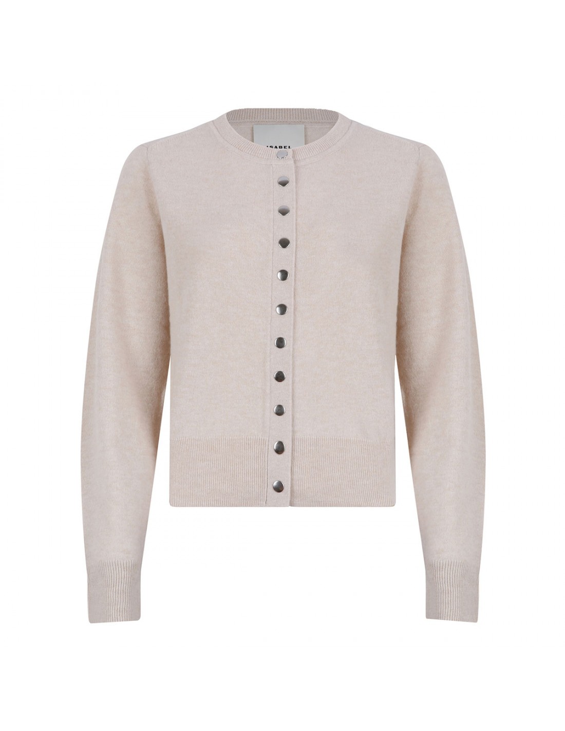 Ecru merino wool and cashmere blend Idesia cardigan from Isabel Marant featuring round neckline, long sleeves, button fastening along front, ribbed-knit edges, fitted cut.
