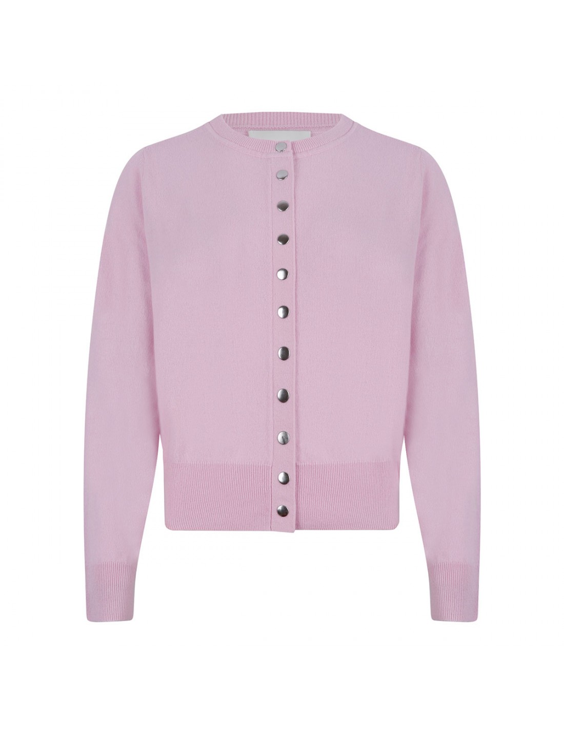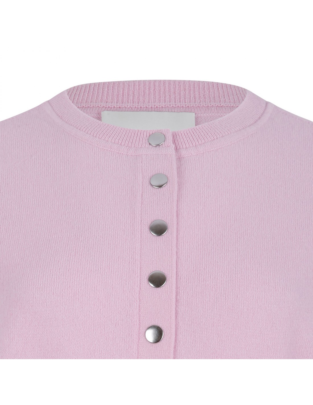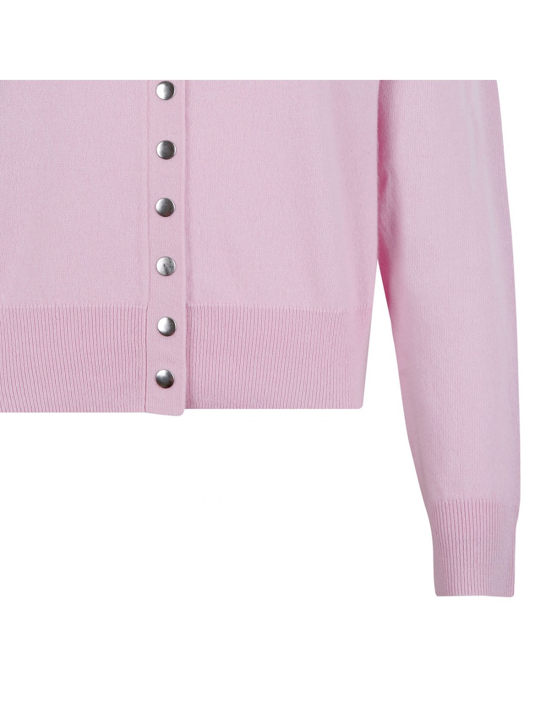 Pink merino wool and cashmere blend Idesia cardigan from Isabel Marant featuring round neckline, long sleeves, button fastening along front, ribbed-knit edges, fitted cut.