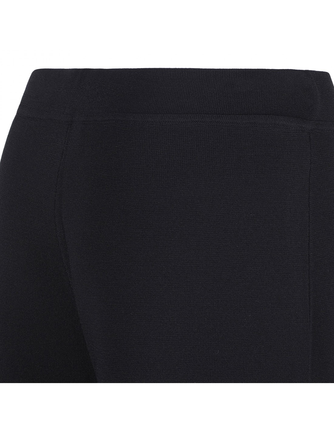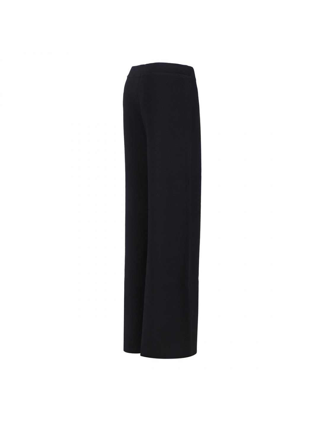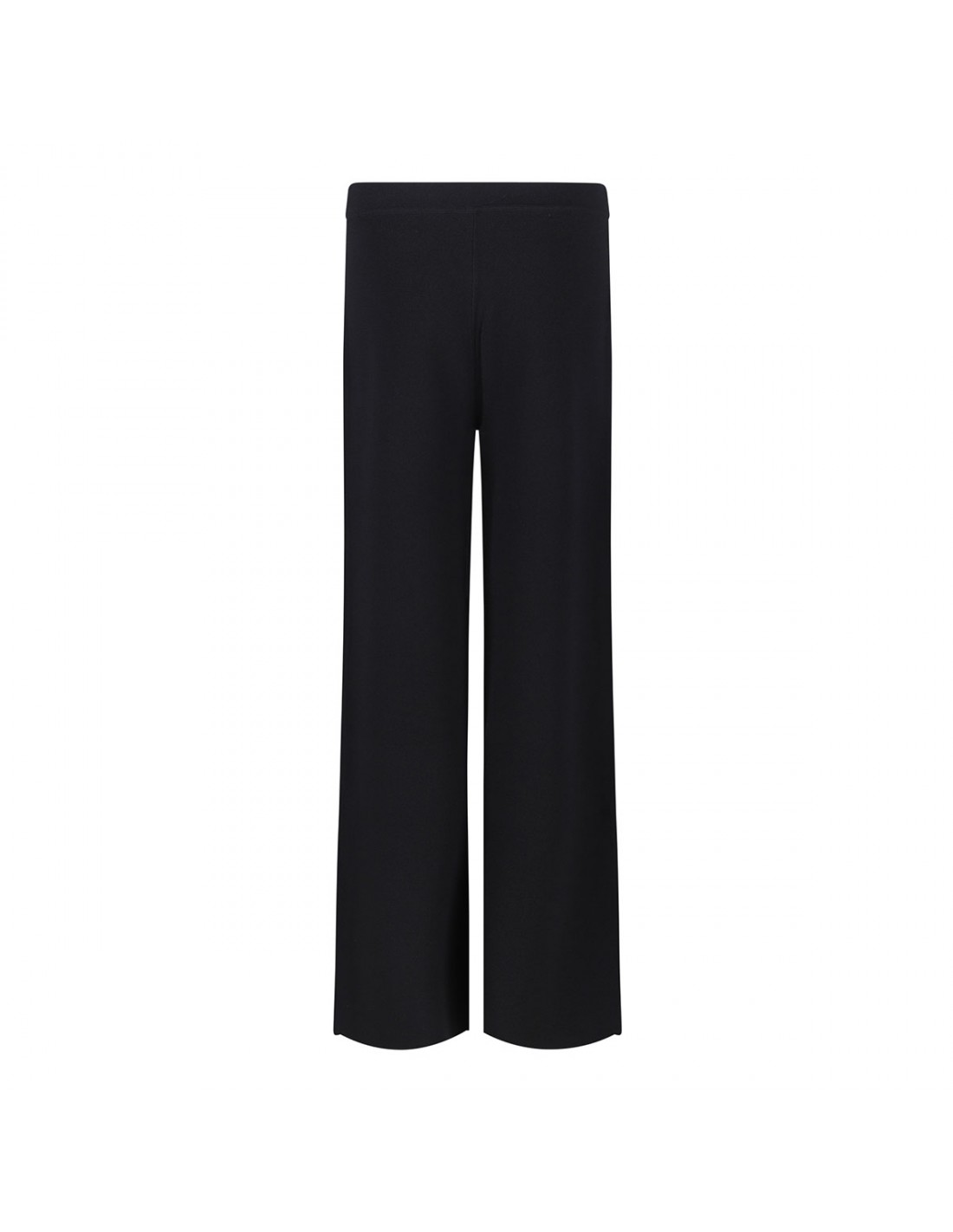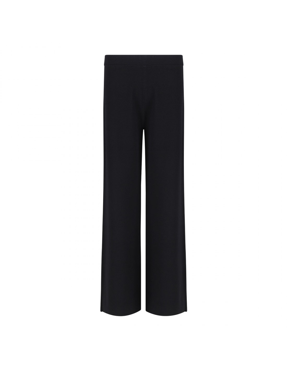 Black knit viscose blend pants from PAROSH featuring elastic waist, wide leg and pull on style.