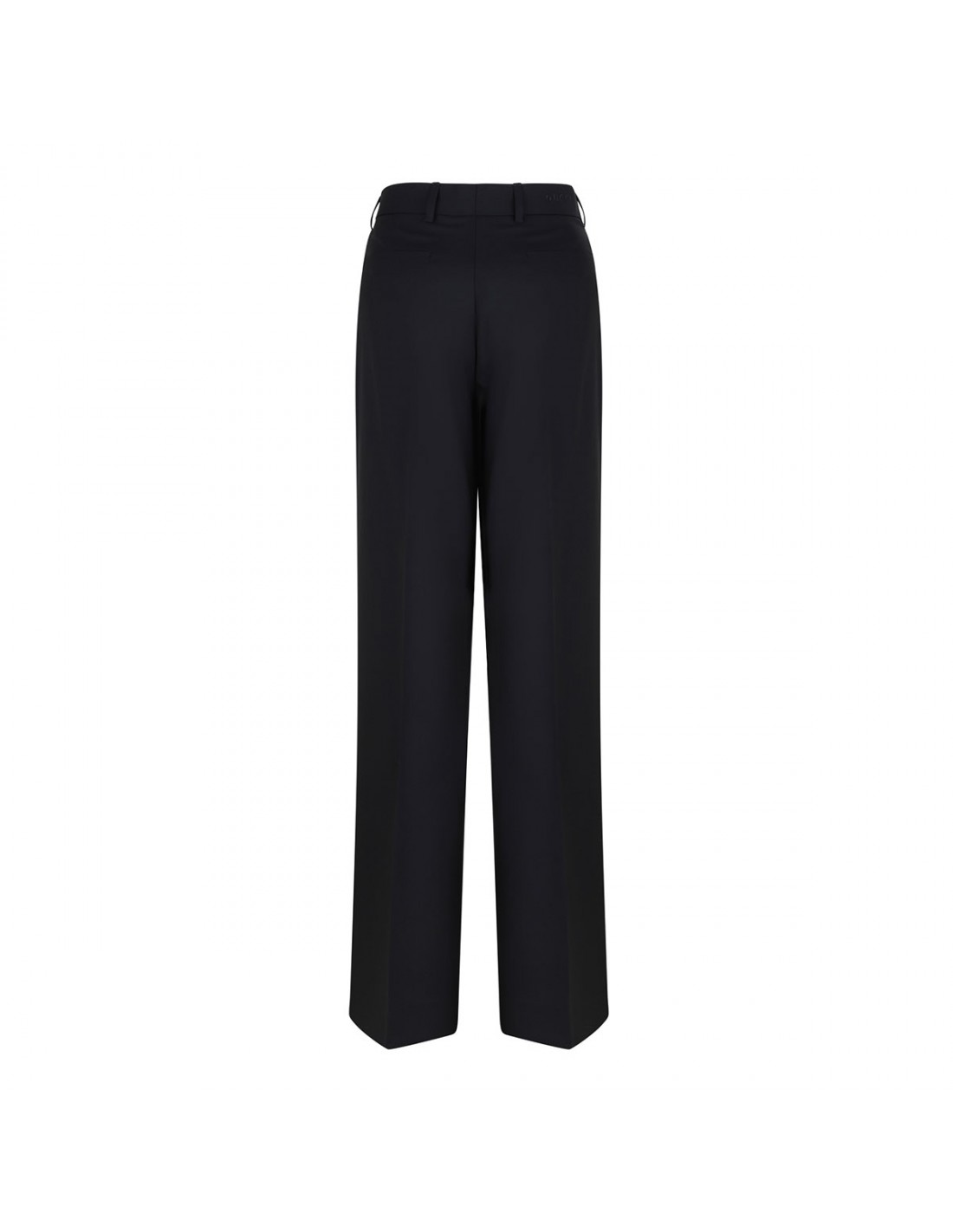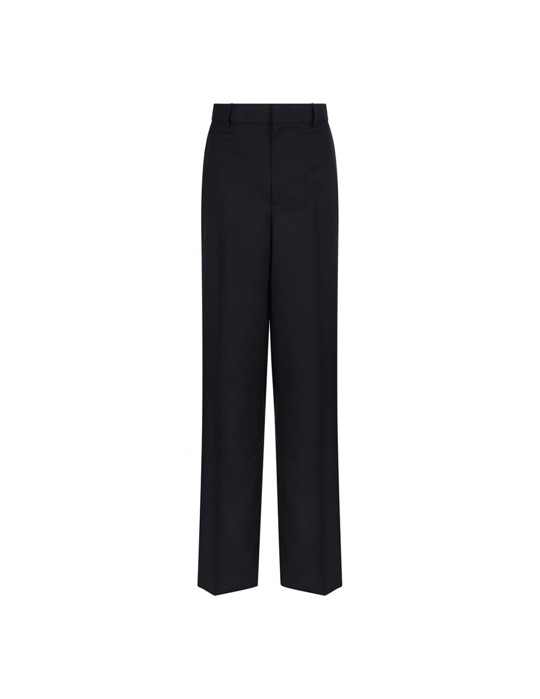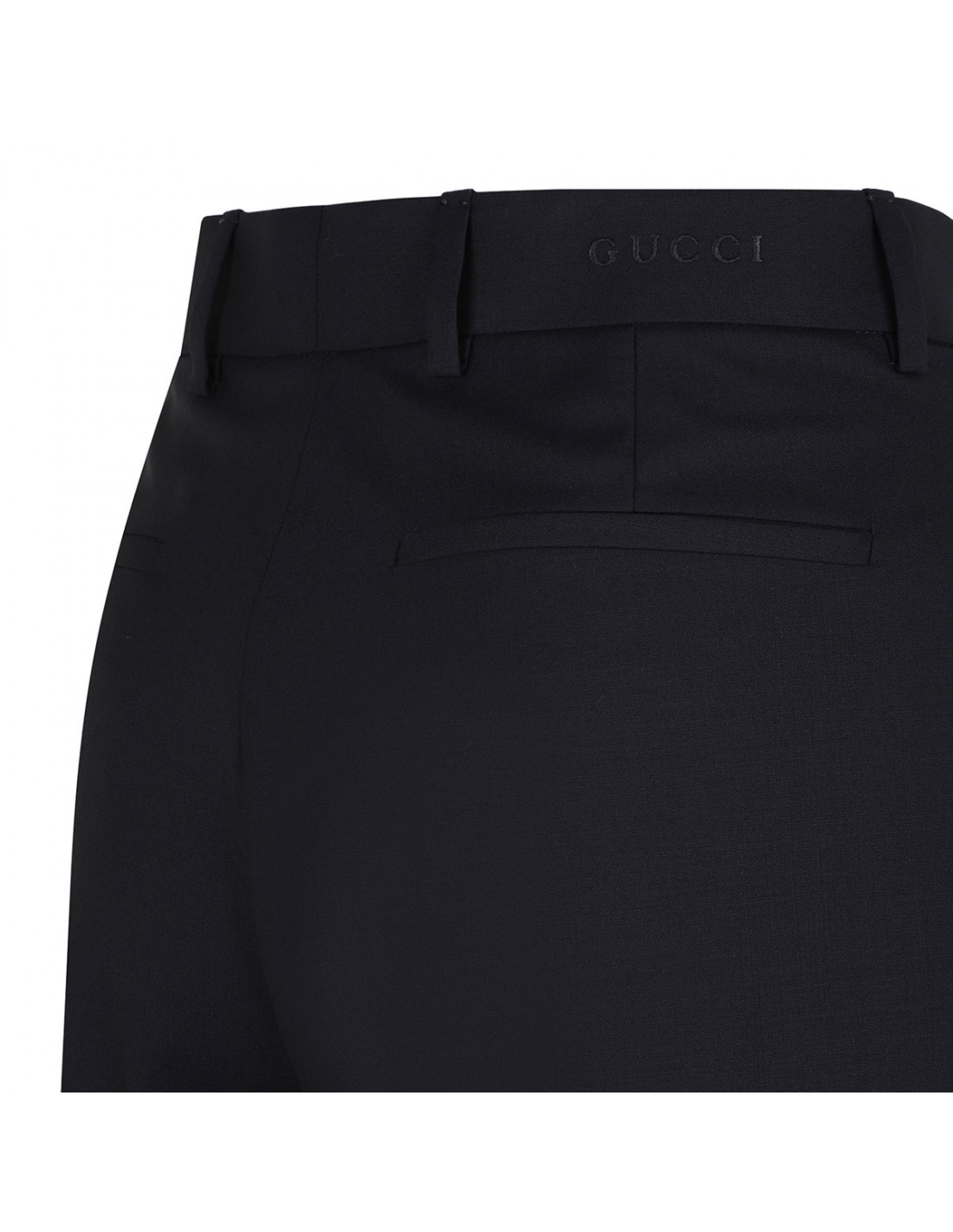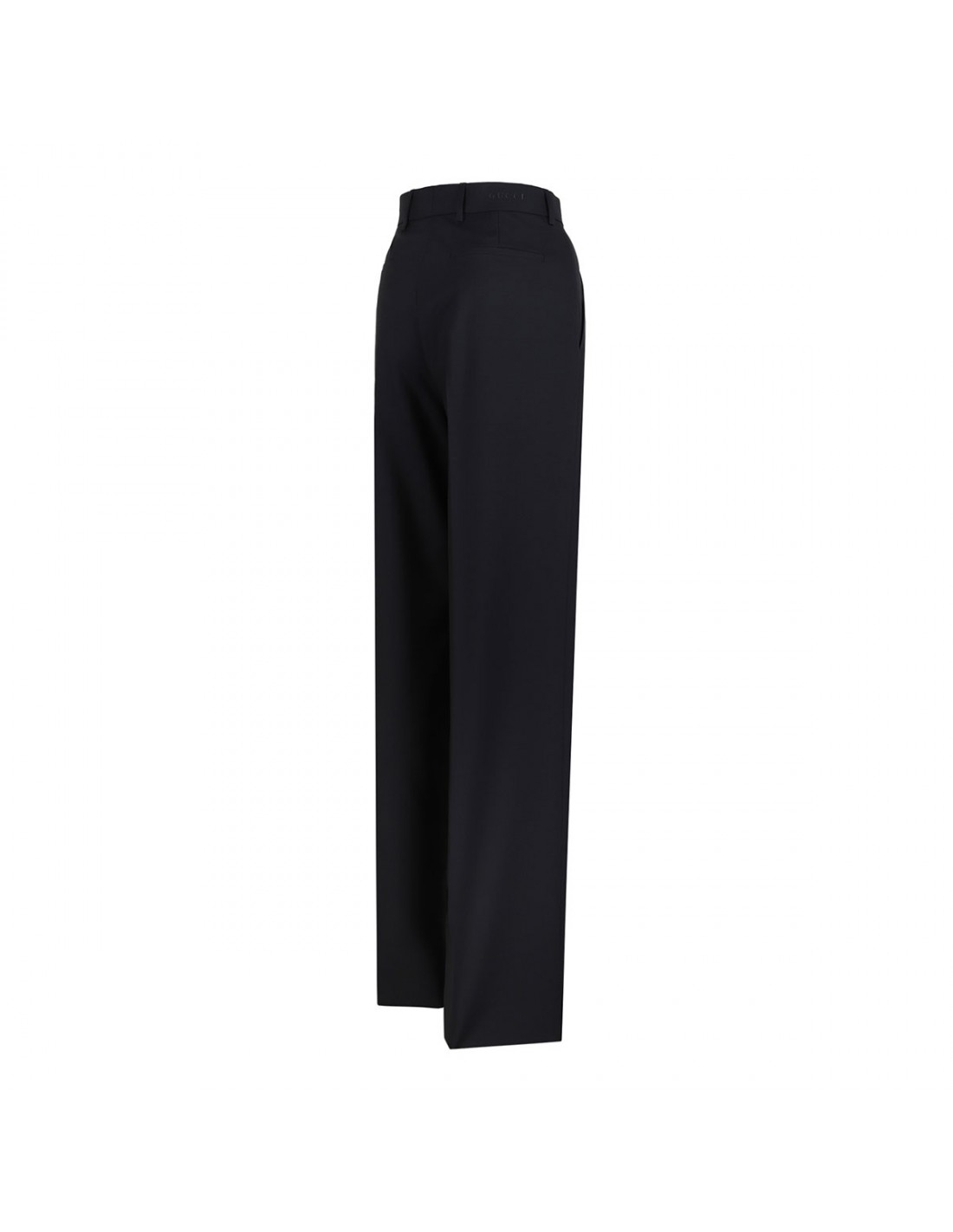Navy blue wool pants from Gucci featuring embossed Gucci logo embroidered, belt loops on the waistband, two side pockets, hook tab and zip fastening, two back pockets, creases at front and back.