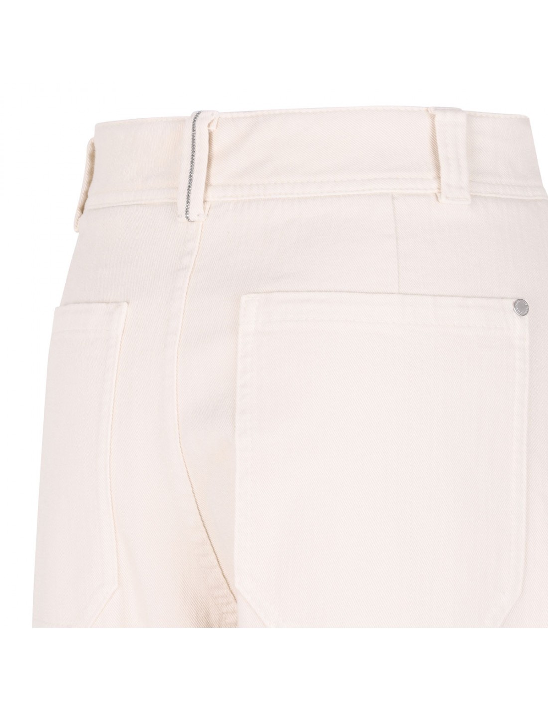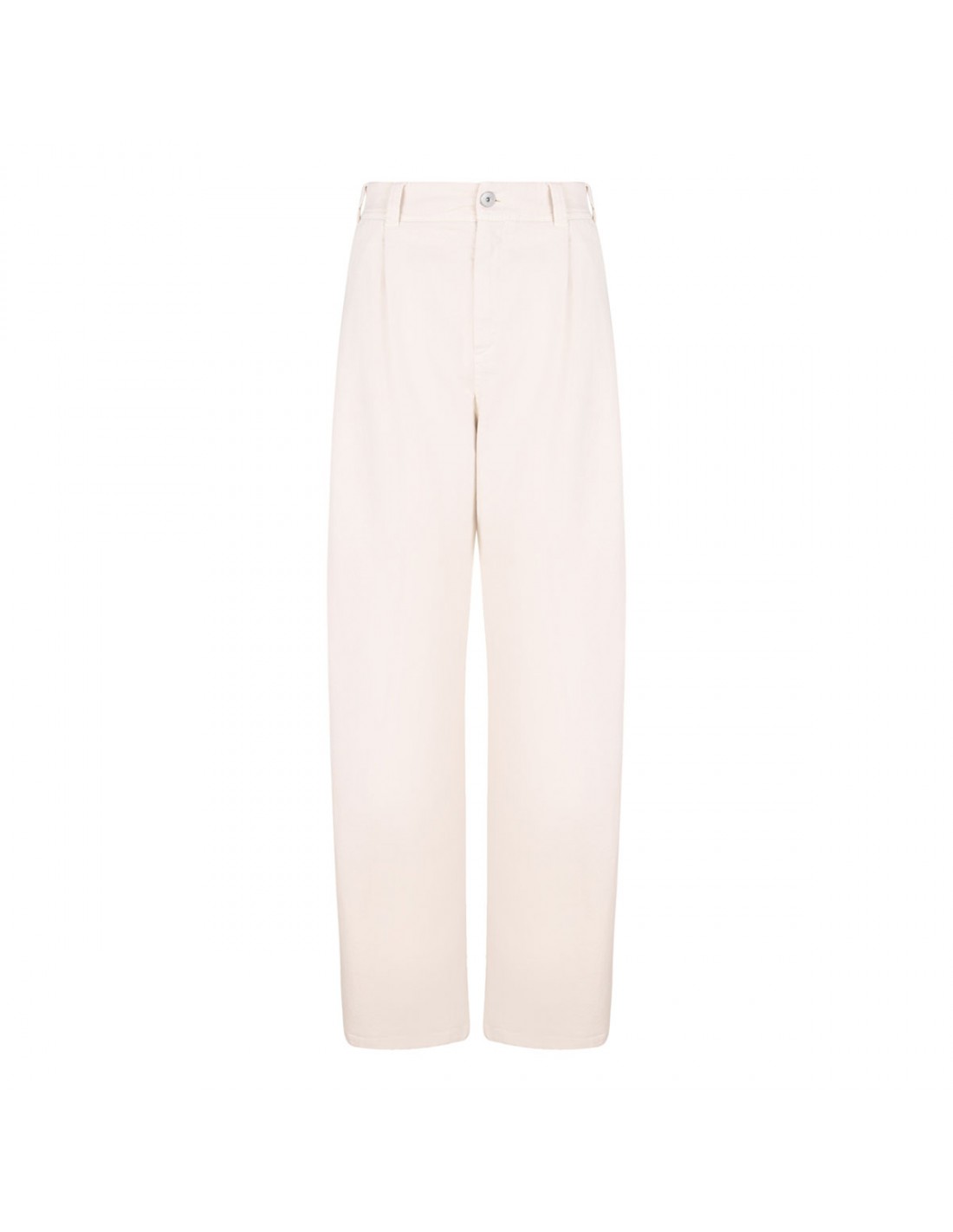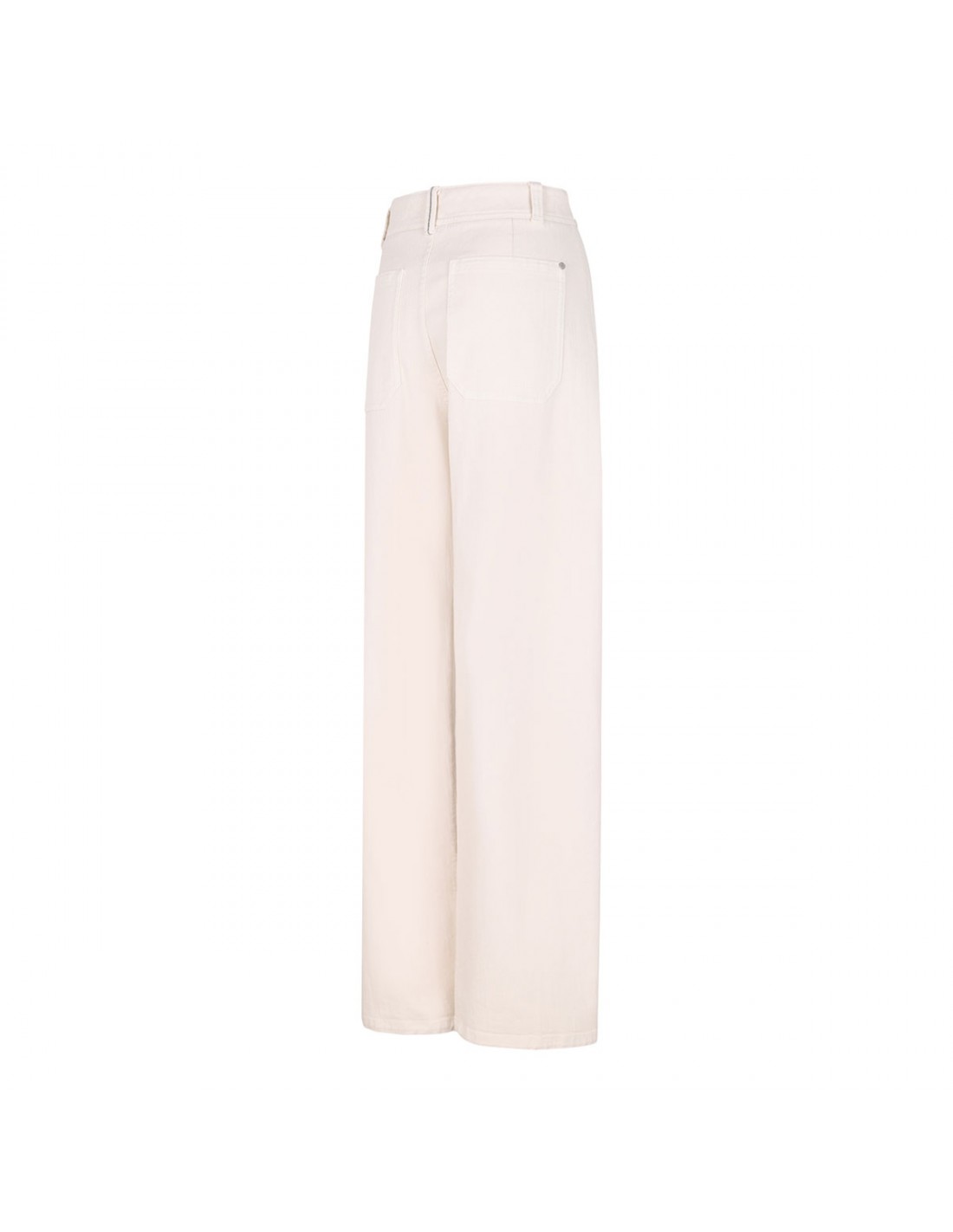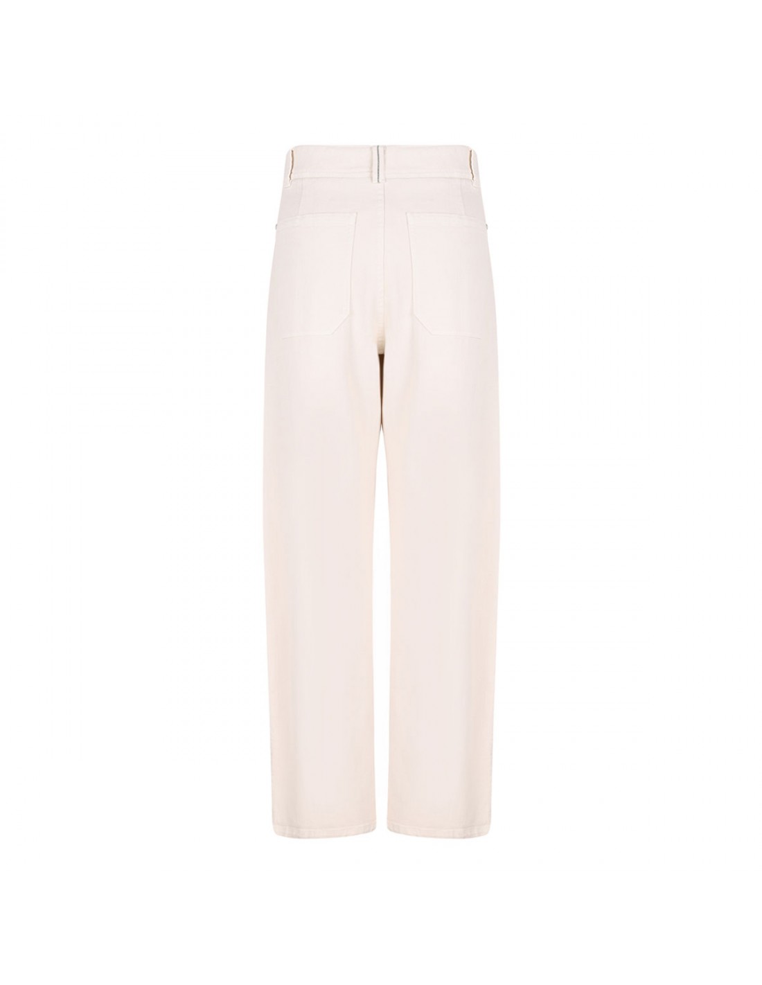 Chalk cotton pants from Brunello Cucinelli featuring monili embroidery detail, belt loops on the waistband, front pleats, button closure, zip fly, side pockets, wide leg, back patch pockets.
