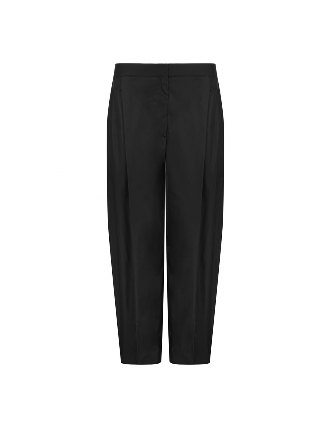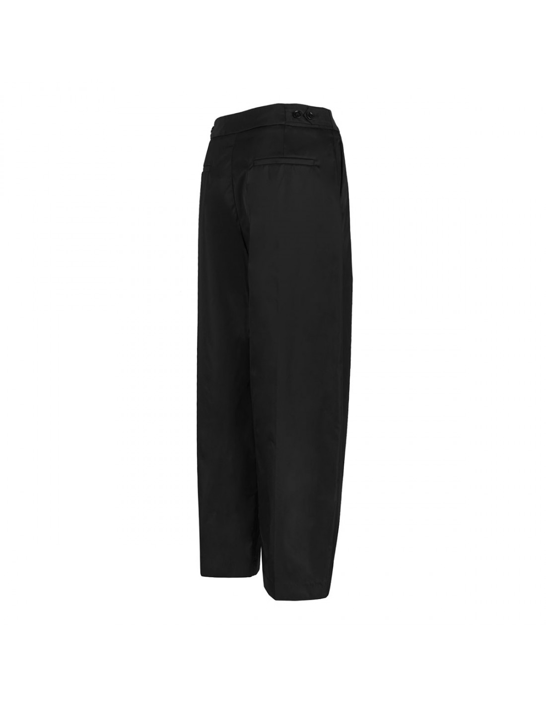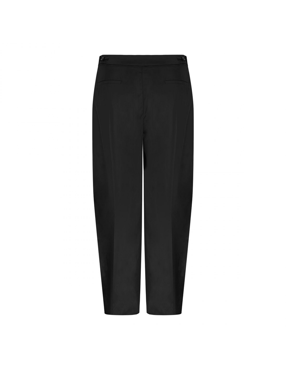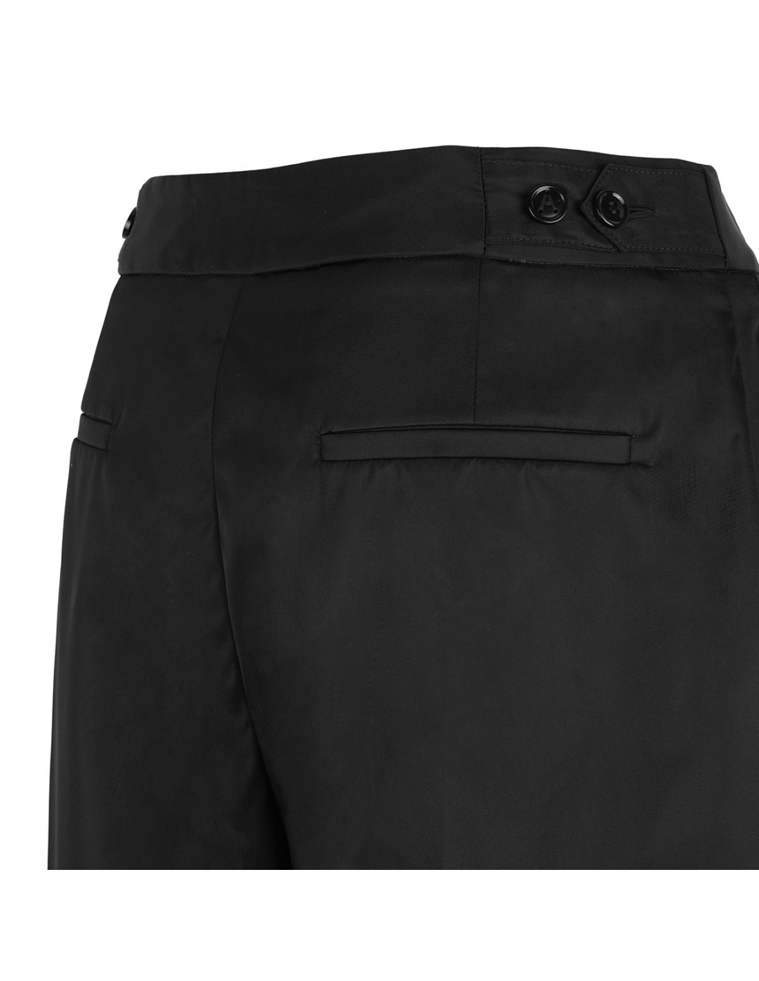 Black technical taffeta tailored pants from Alaia featuring low waist, ankle length, adjustable waist buttons, side pockets, darts on front, tapered fit and back pockets.