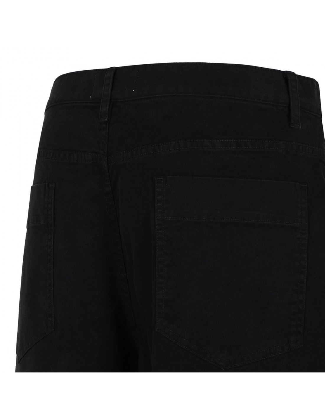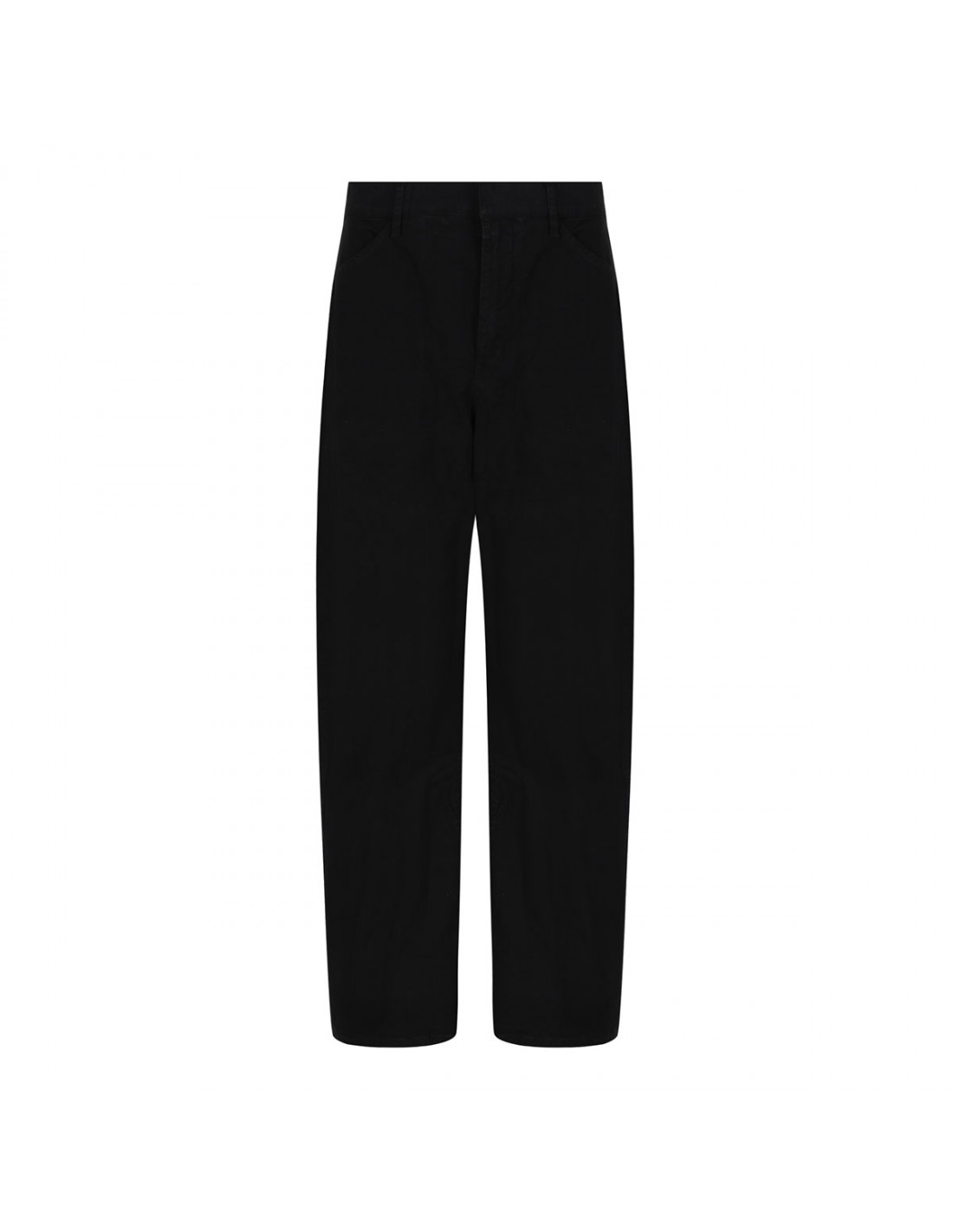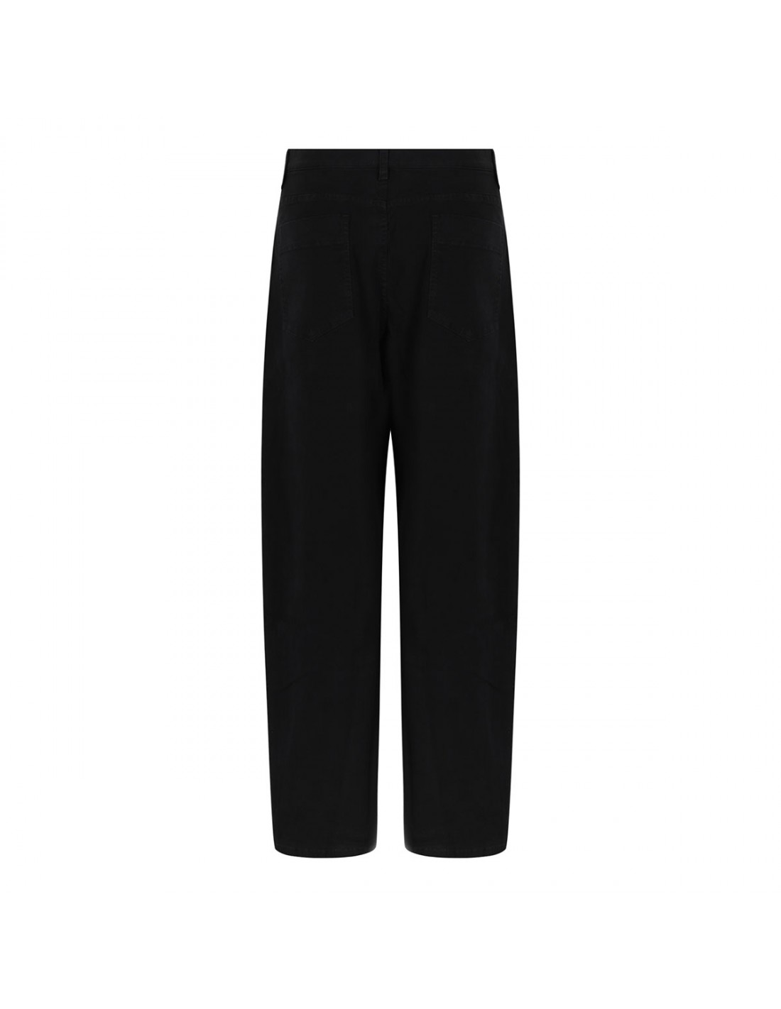 Black brushed stretch twill cotton Tribeca pants from Nili Lotan featuring mid rise, barrel leg, relaxed silhouette, slant pockets, hidden hook-and-bar fastening, zip fly, back patch pockets, belt loops on the waistband and coin pocket.