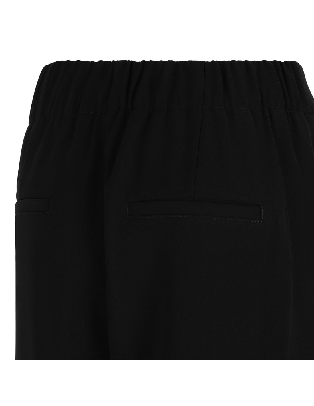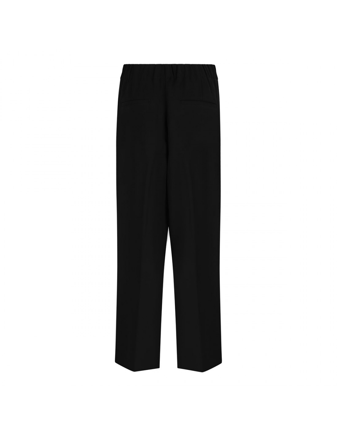 Black pants from Vince featuring pull-on silhouette, elastic waistband, straight leg, cropped length, side pockets, tapered below the knee, back pockets.