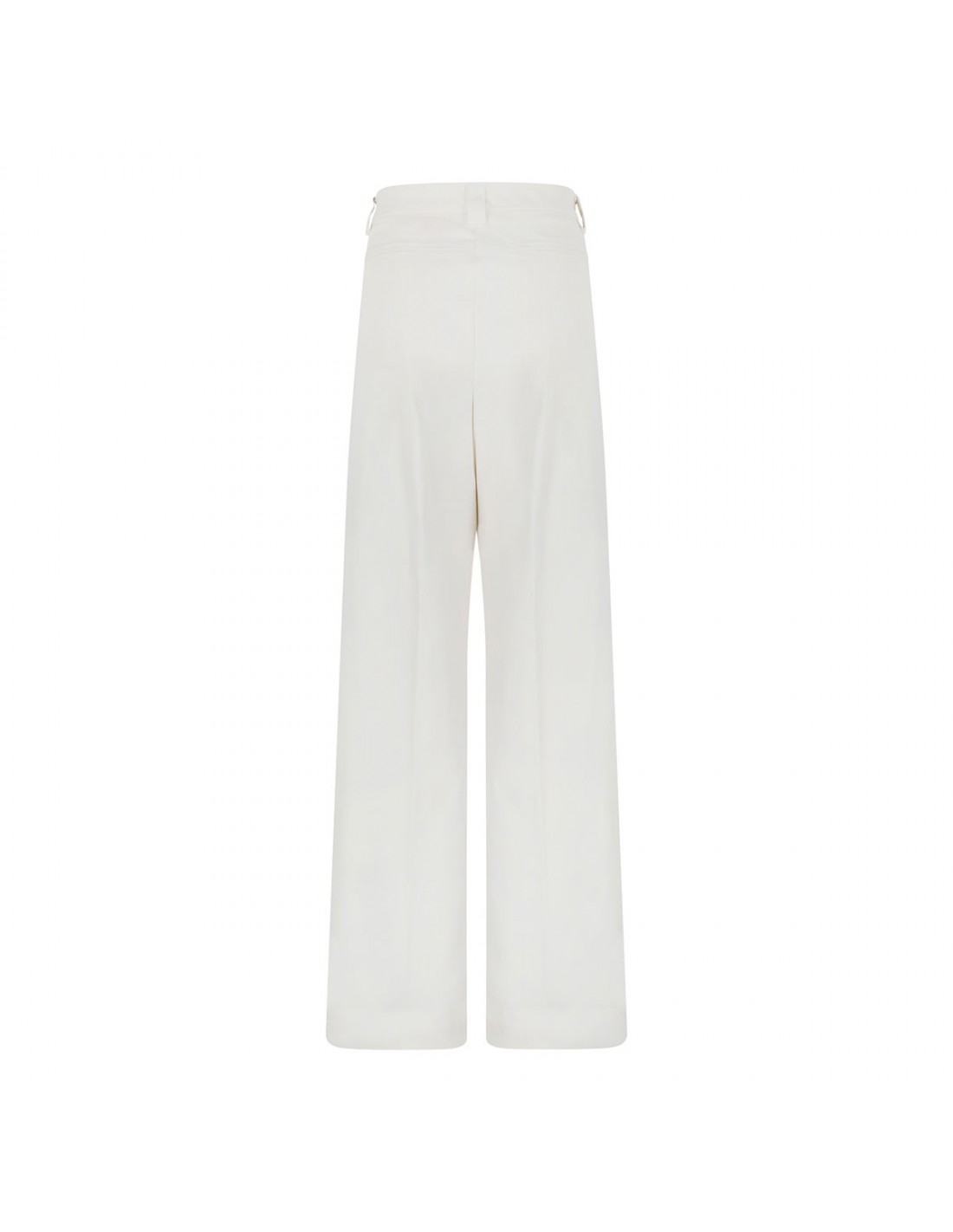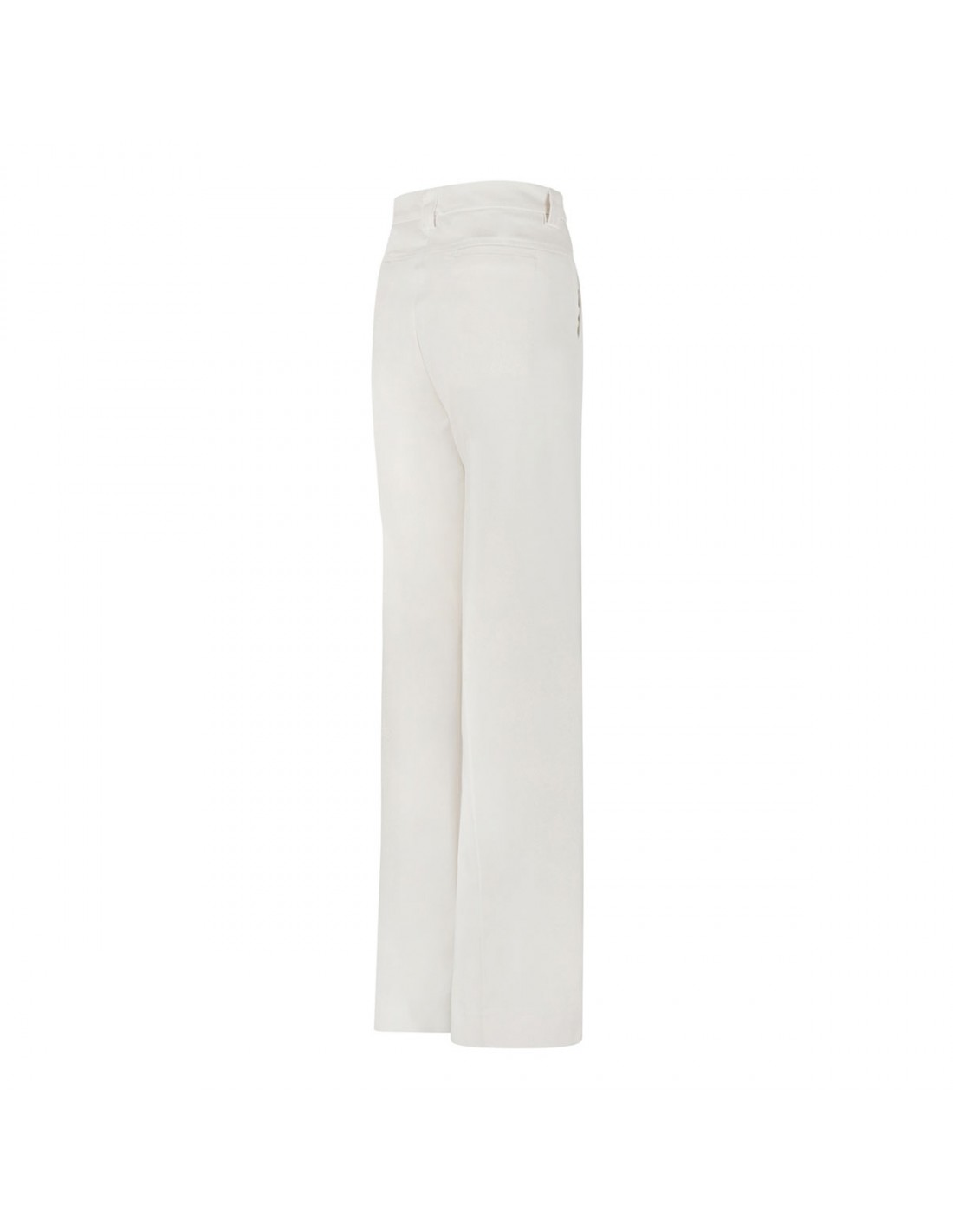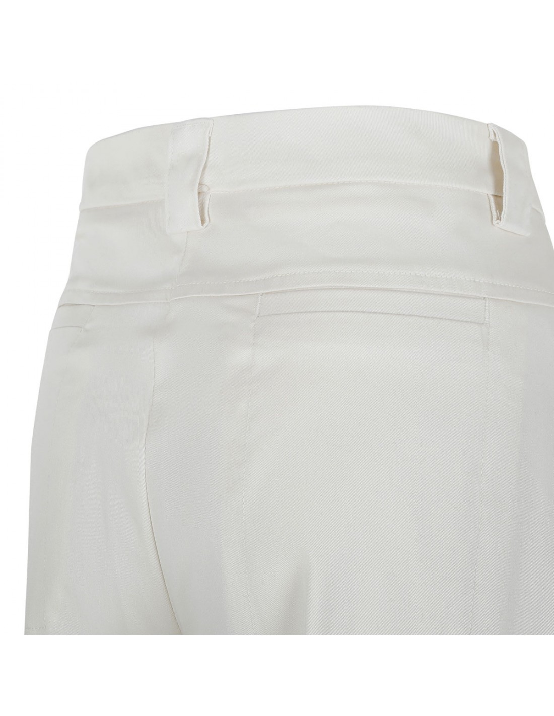 Cream white hue gabardine D-Alek pants from The Latest featuring hook and button closure, zio fly, side pockets, creased at front and back, belt loops on the waistband, back welt pockets.