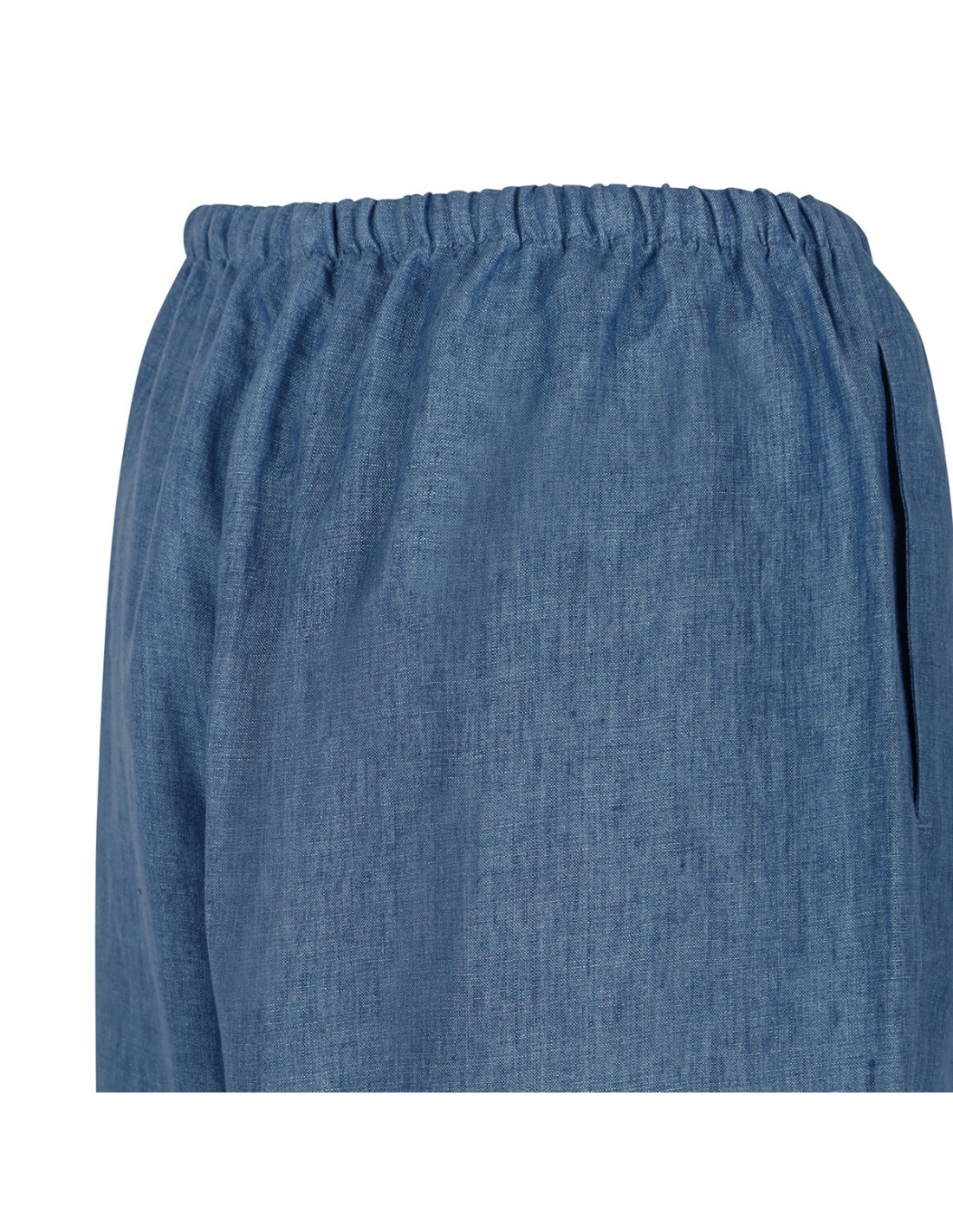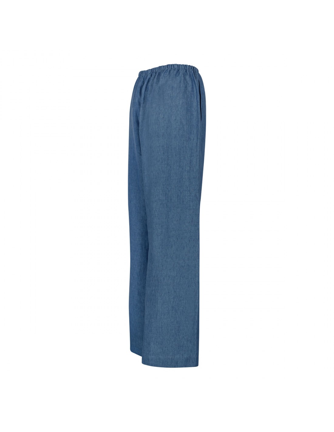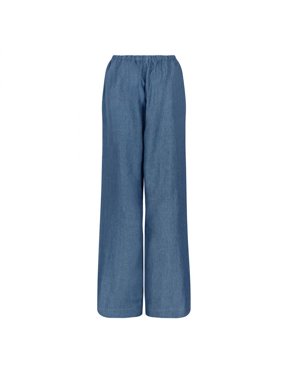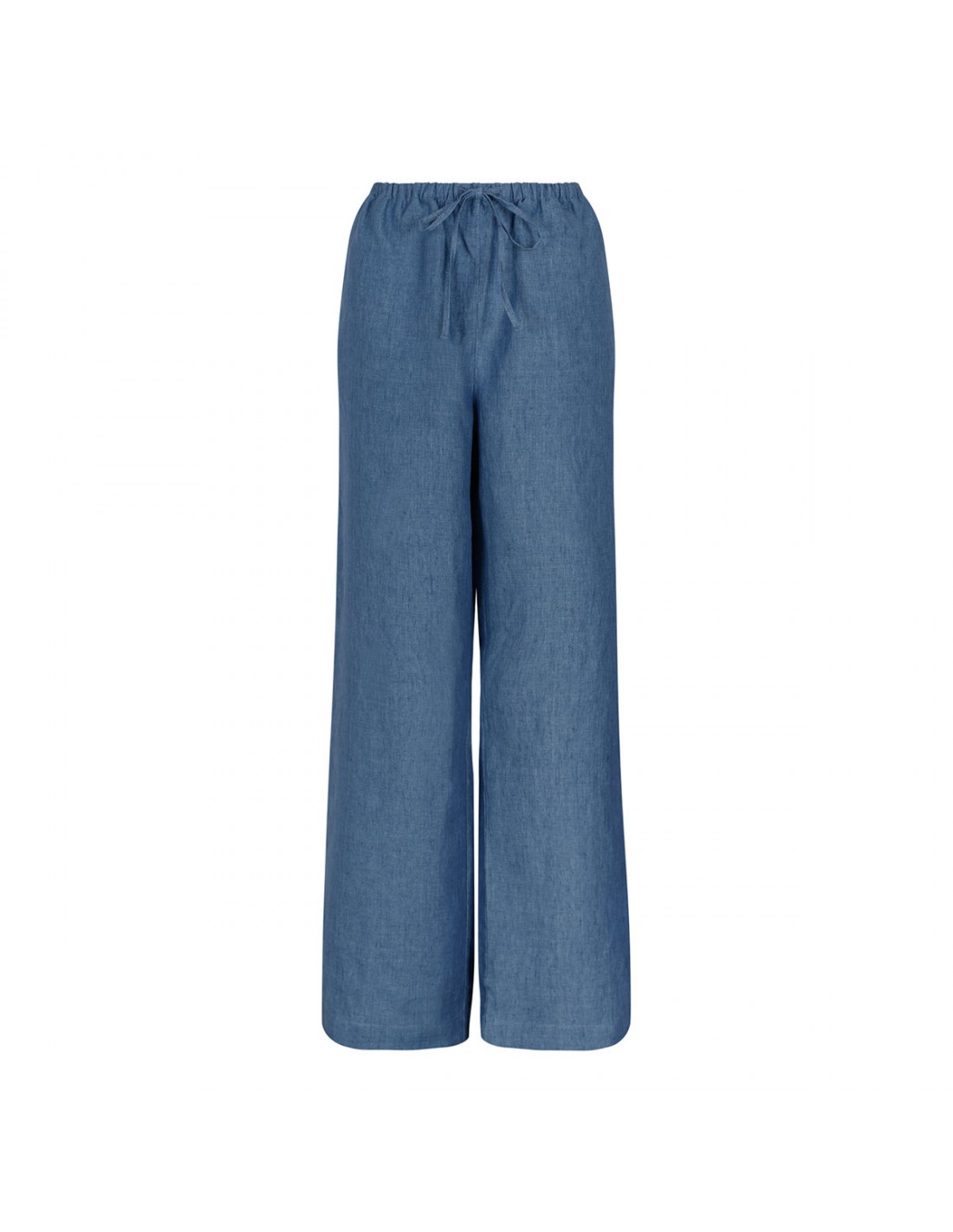 Ocean blue pure linen pants from Rohe featuring elastic waistband with drawstring, classic pyjama silhouette, washed delavé finish, long length, wide leg, side pockets.