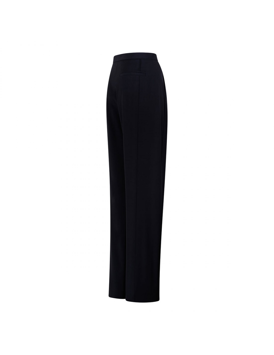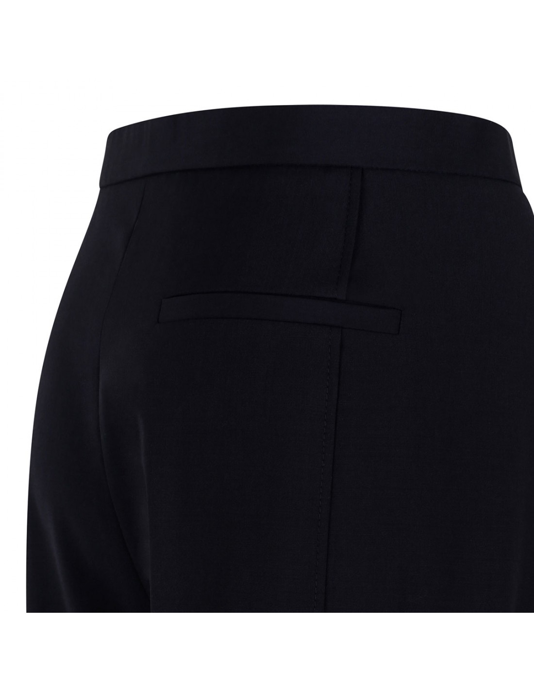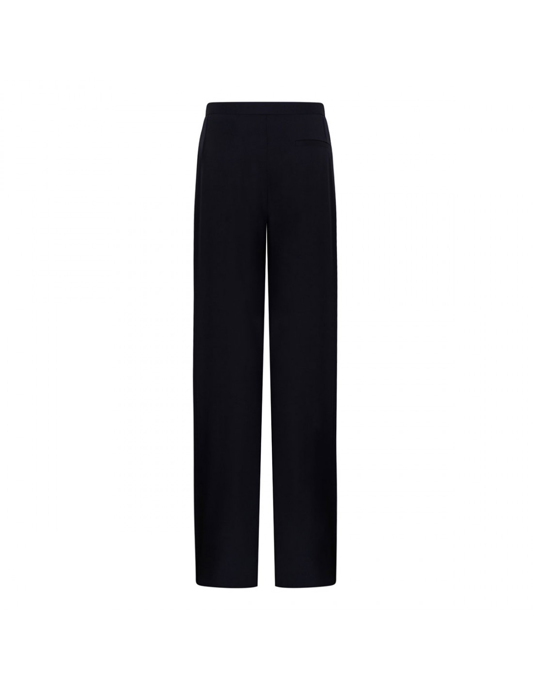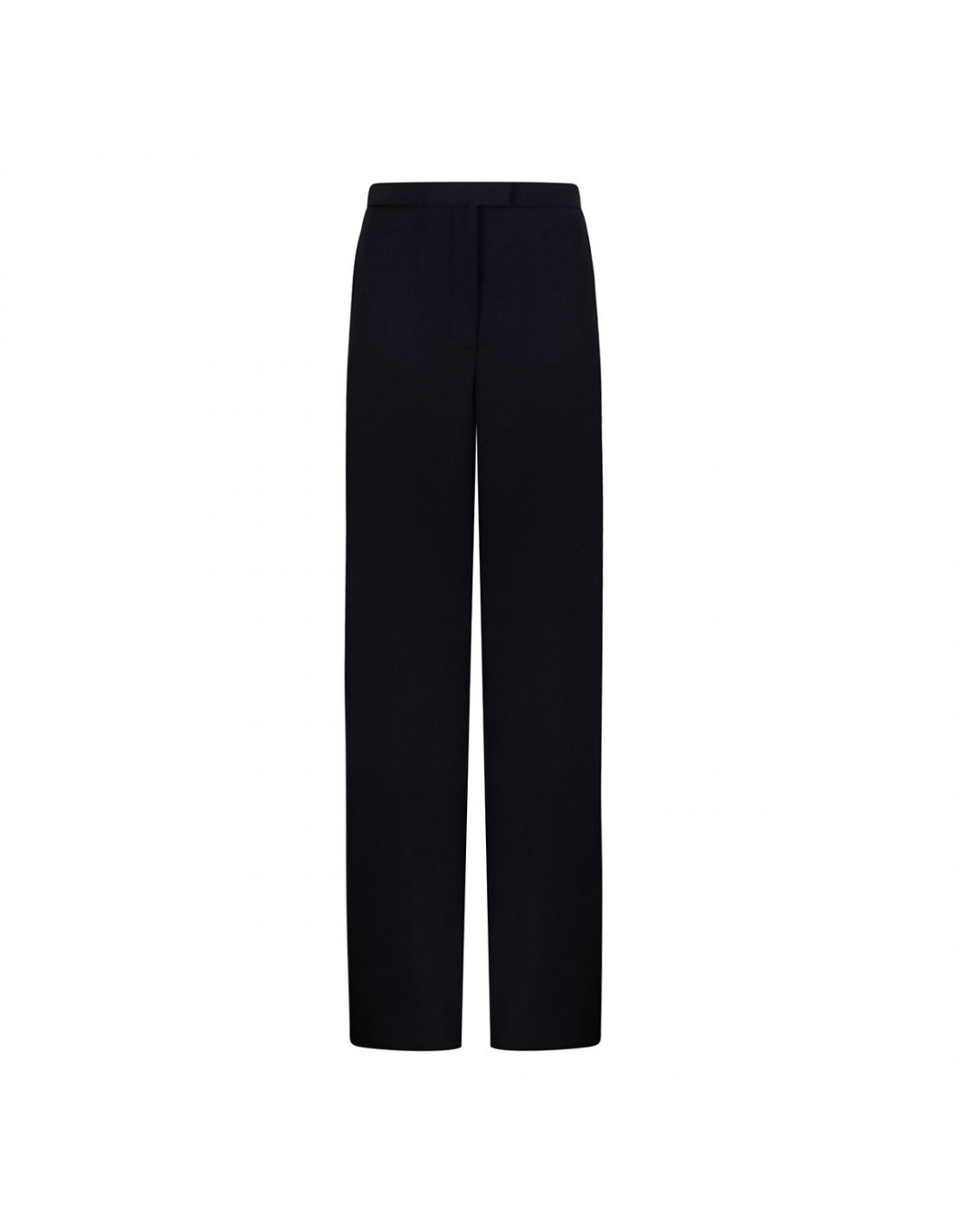 Dark navy lightweight wool Borden pants from Khaite featuring slim-leg, in-seam side pockets, narrow waistband, zip fly, hook-and-bar closure, back welt pockets.