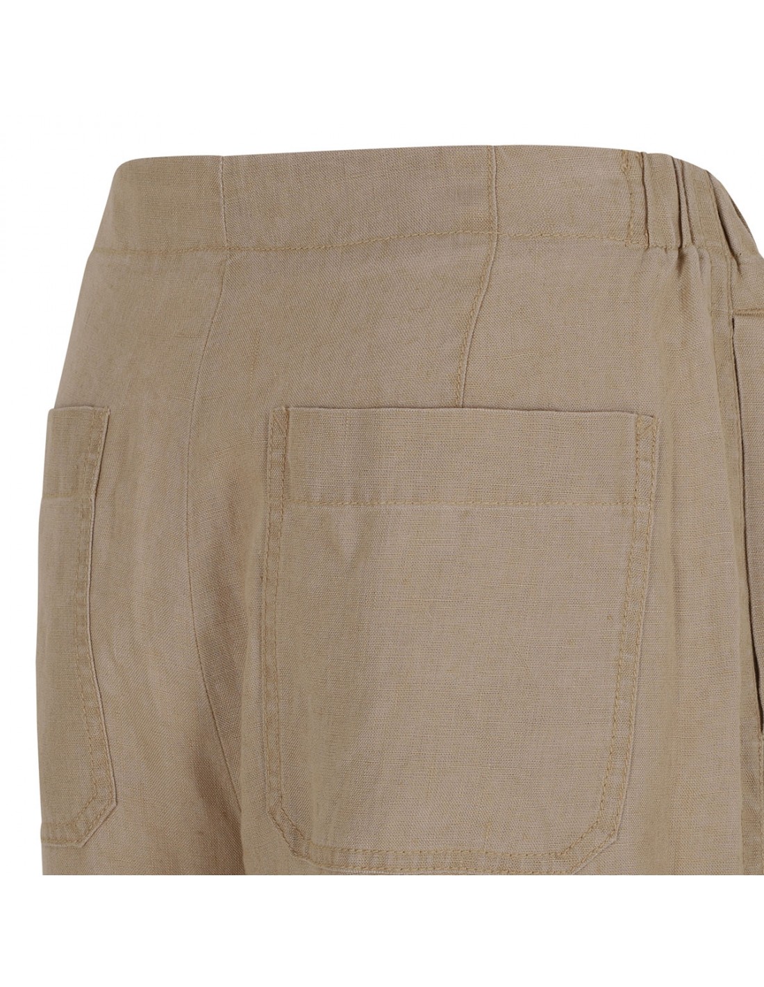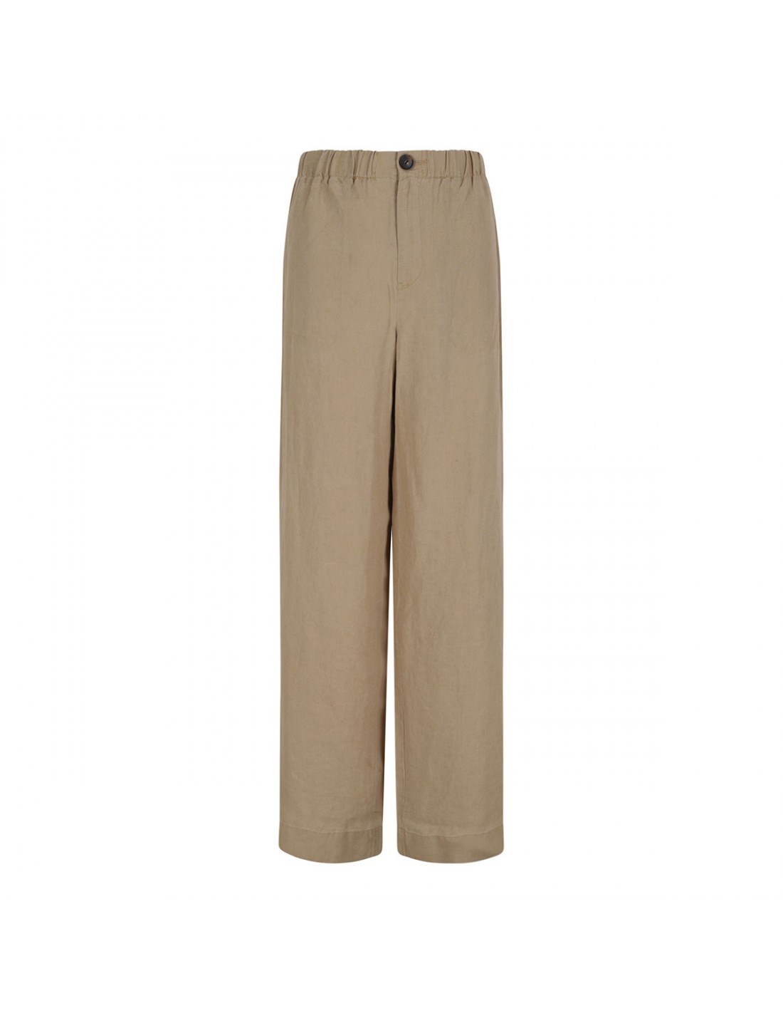 Brulee hue hemp utility pants from Vince featuring elastic waistband, side pockets, zip fly and button closure, patch back pockets, low rise, straight leg.