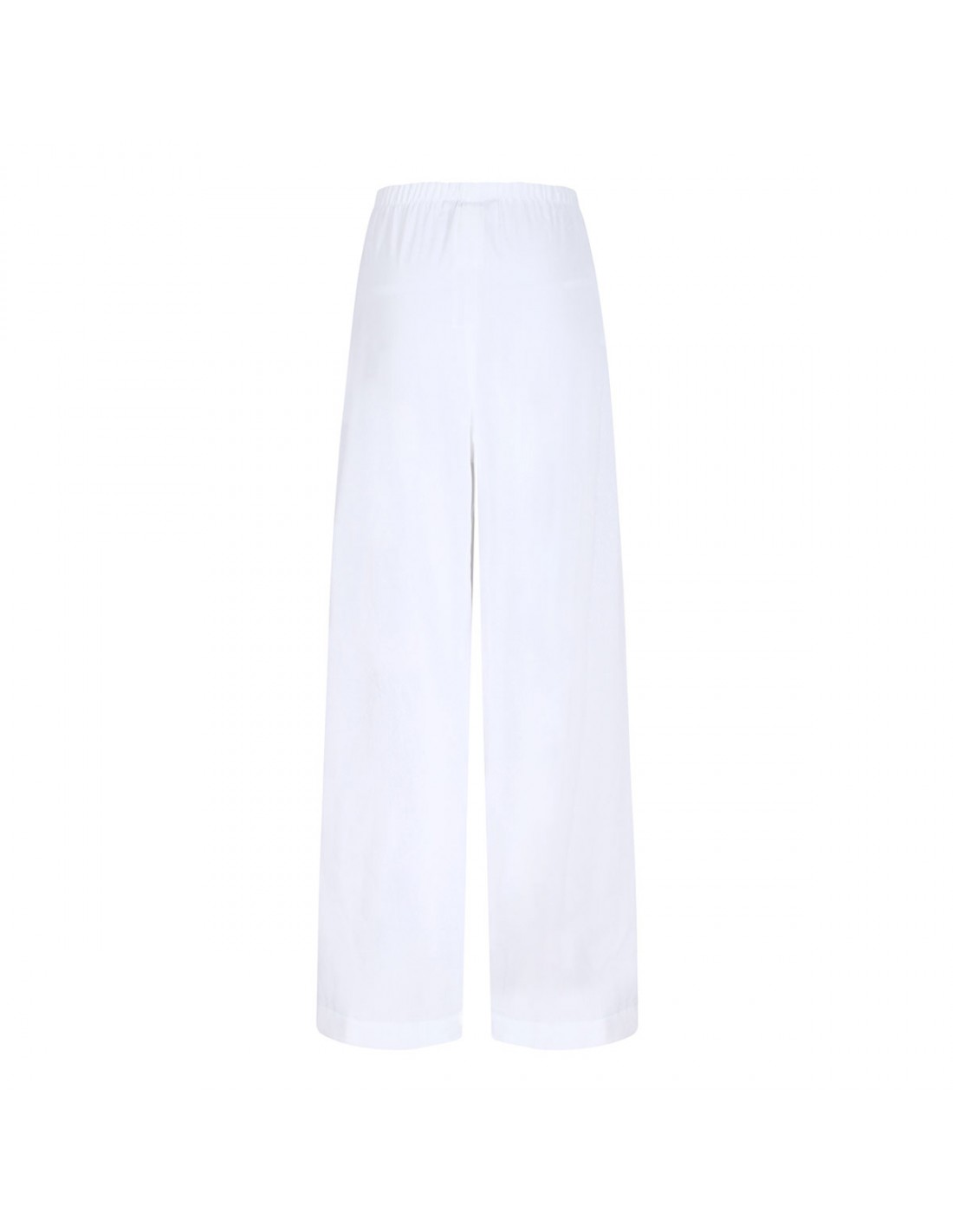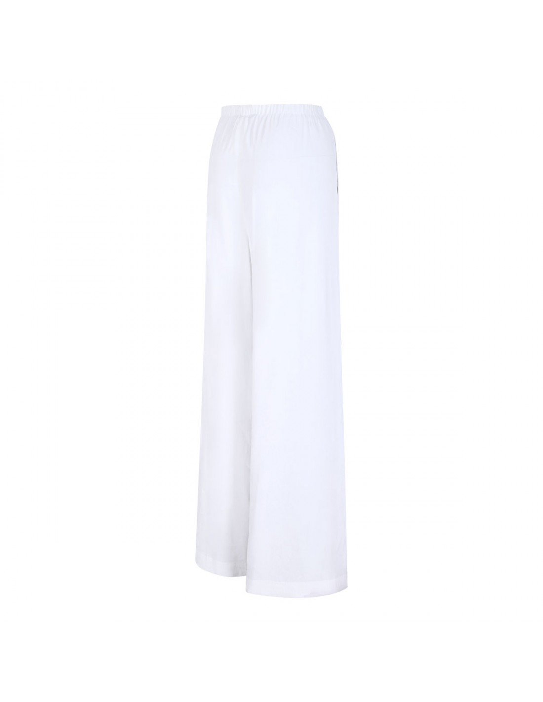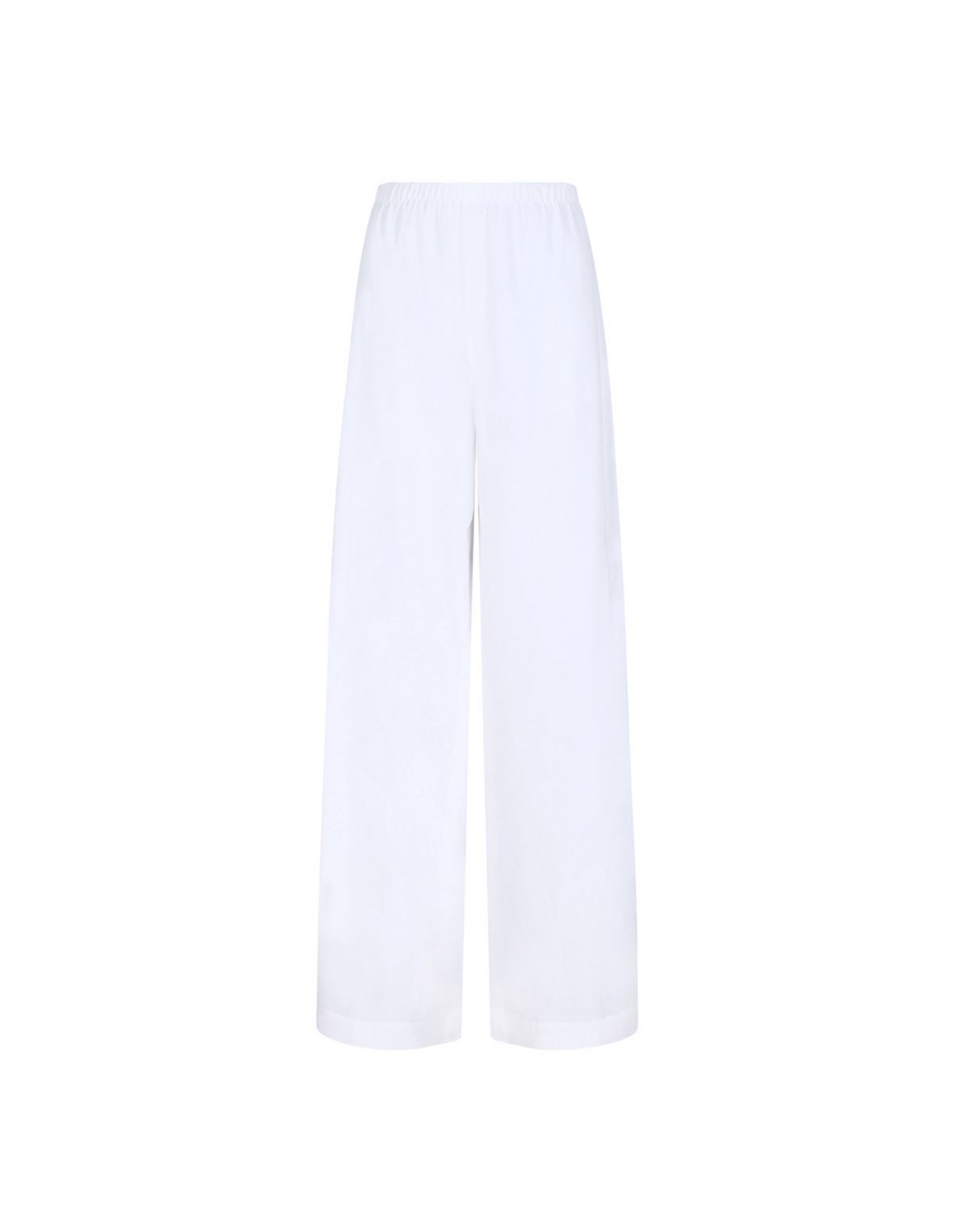 Optical white stretch linen and viscose Destino pants from Max Mara featuring fluid silhouette, elastic waist, wide leg, concealed zip fastening at the side, side pockets.