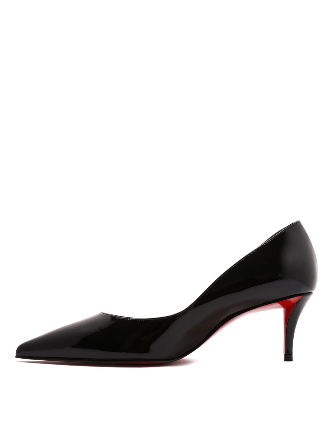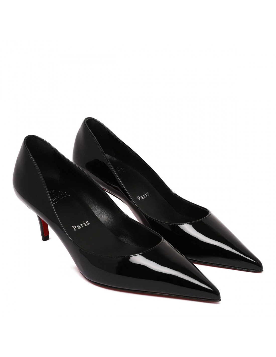 Black patent calf leather Miss Z pumps from Christian Louboutin featuring pointed toe, 60 stiletto heel, padded insole, leather lining, signature red leather outsole.