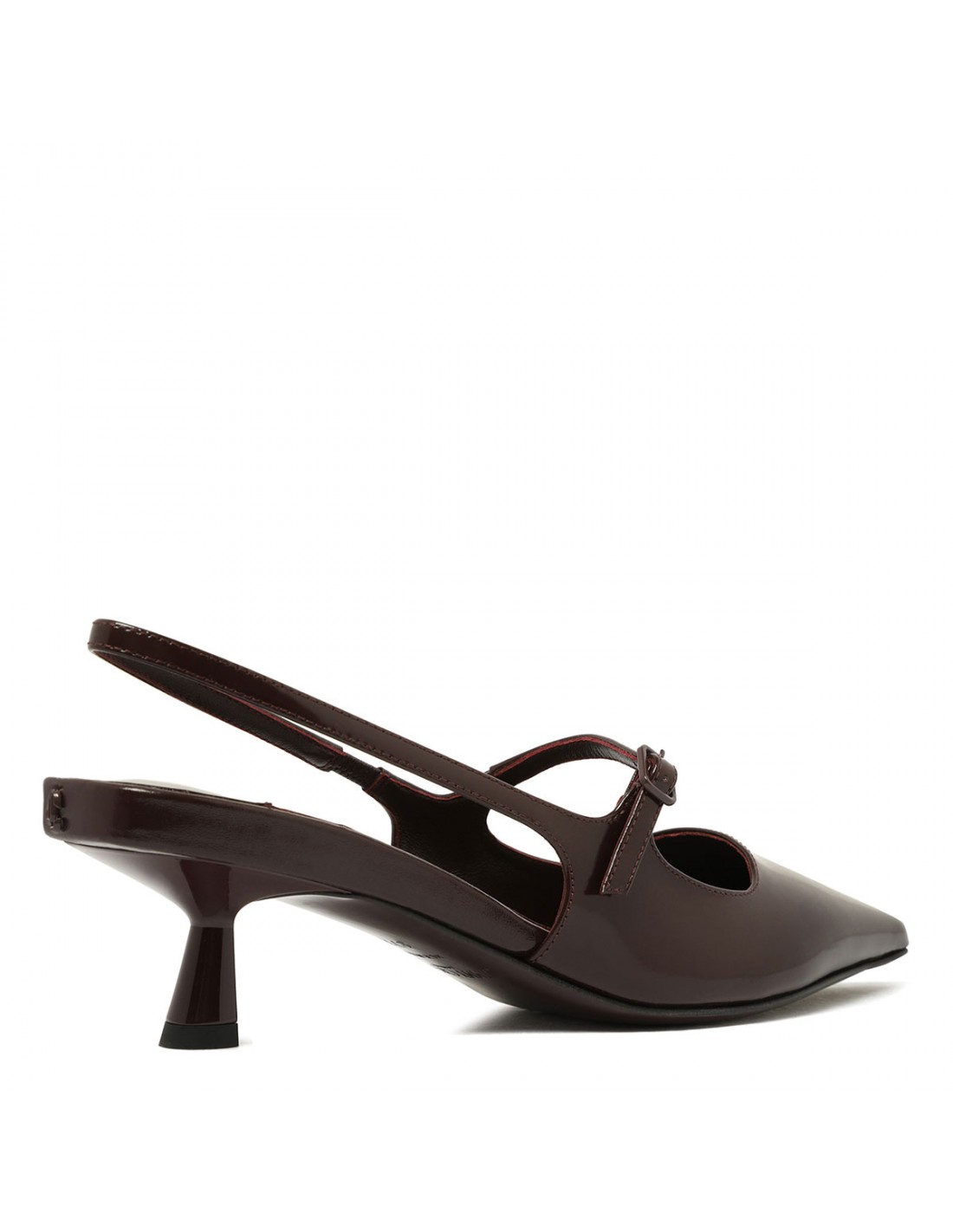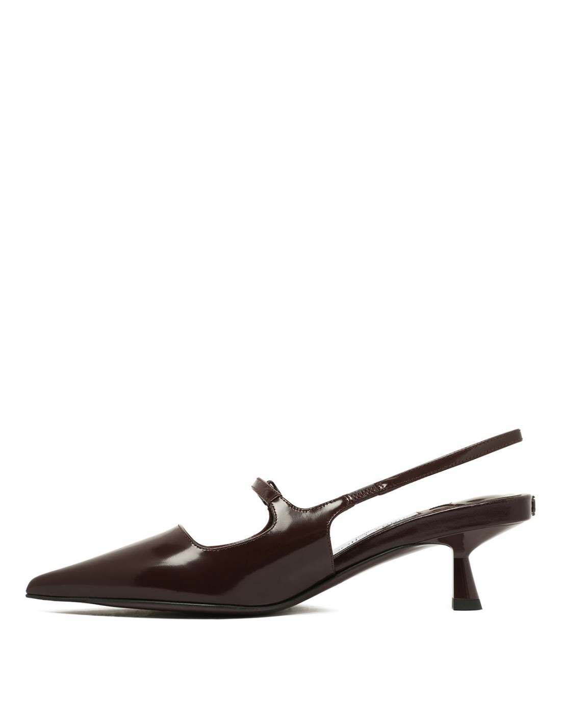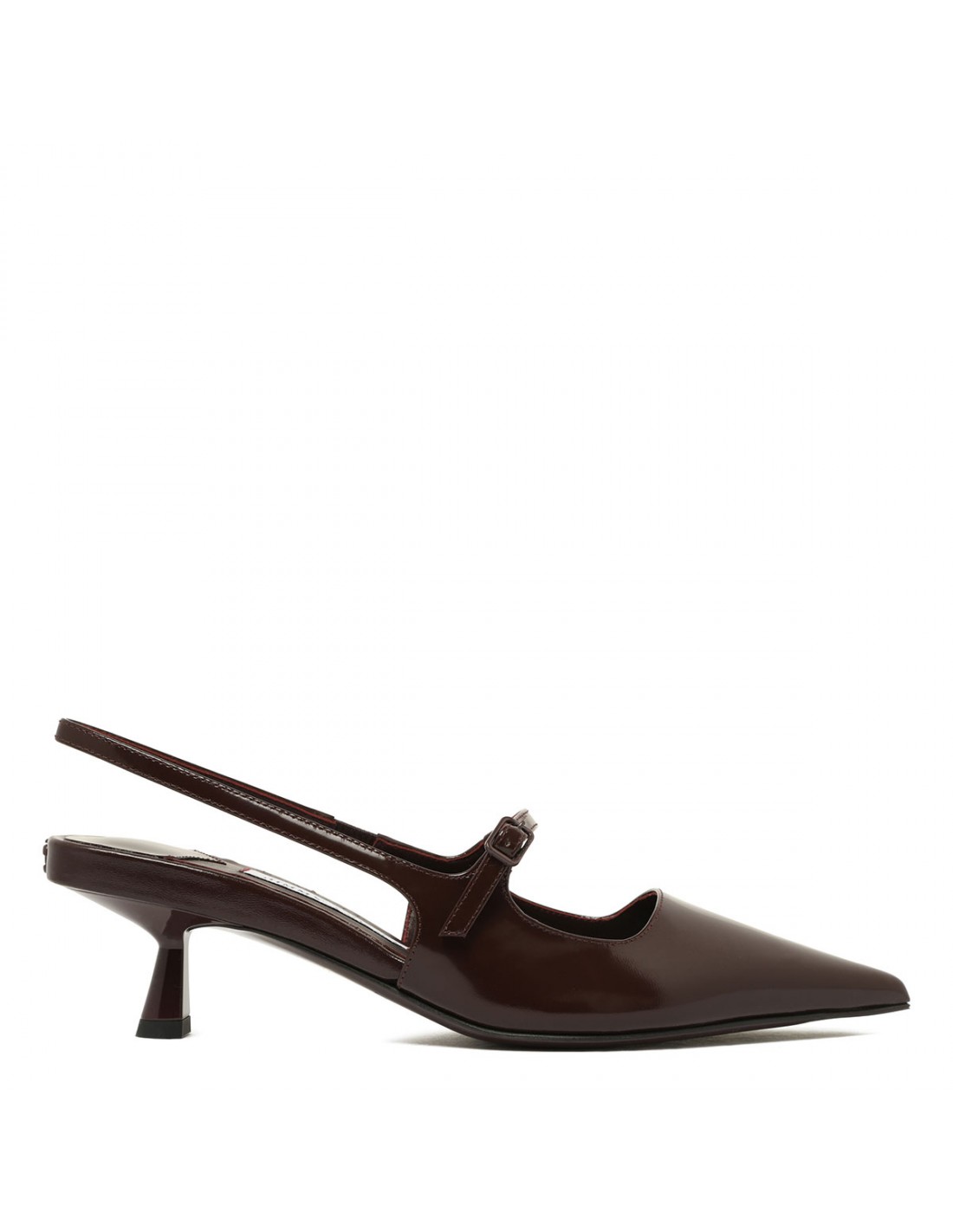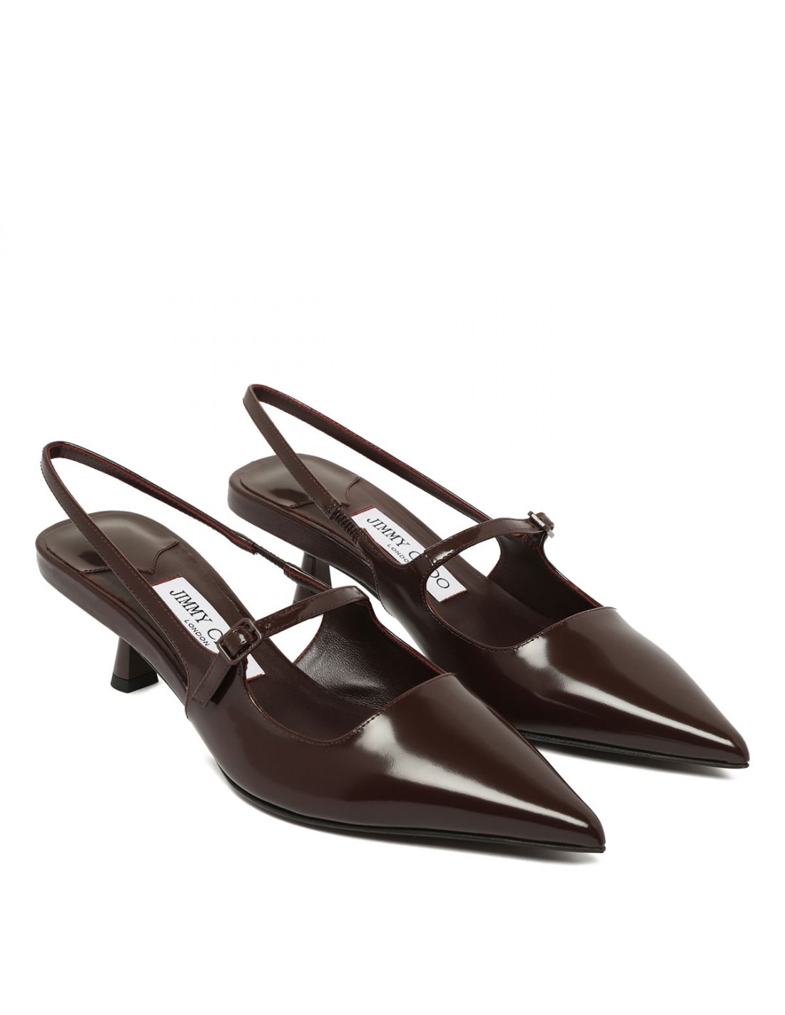 Deep merlot hue brushed leather Didi slingback pumps from Jimmy Choo featuring pointed toe, elasticated slingback strap with buckle fastening, 45 kitten heel, leather sole and lining.