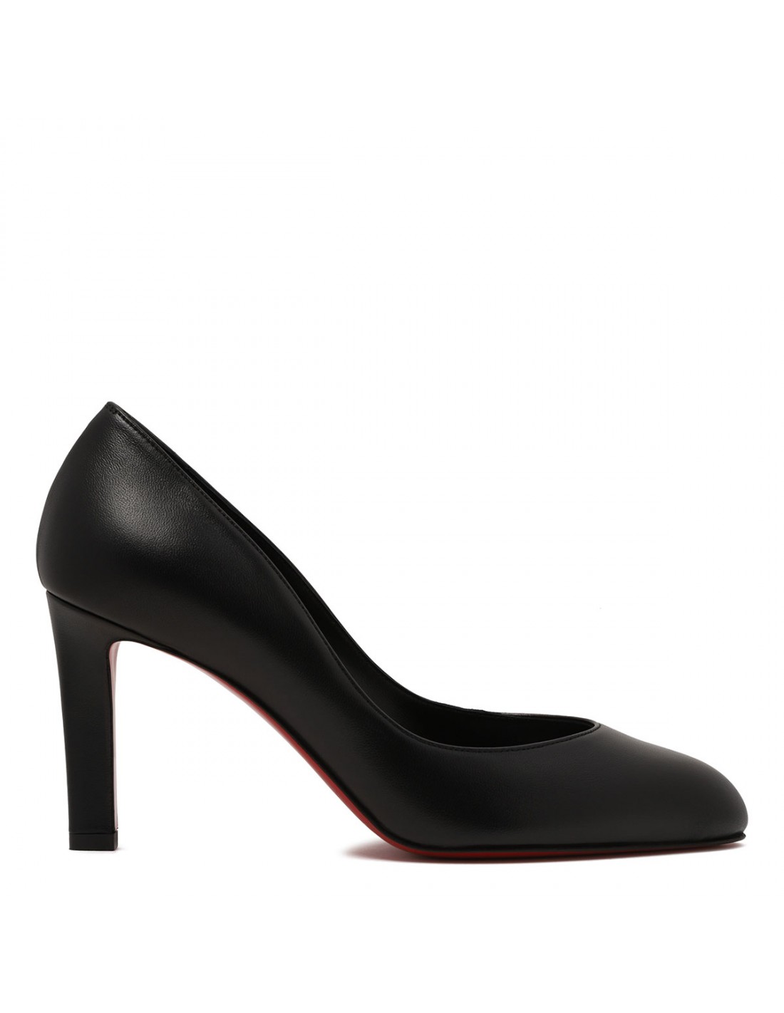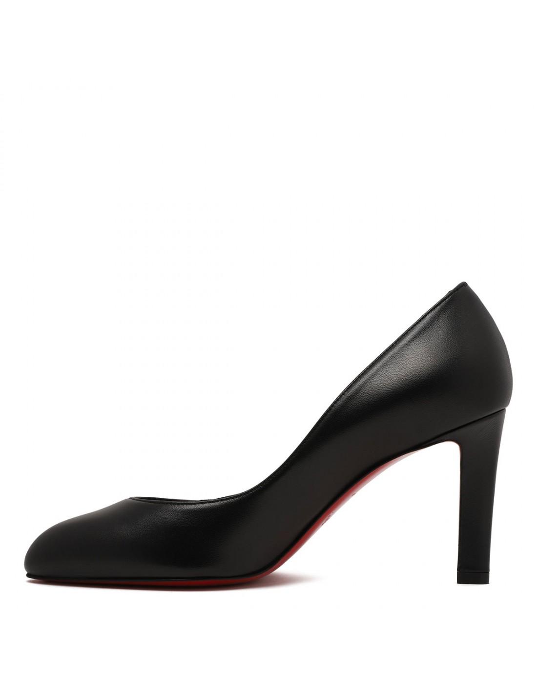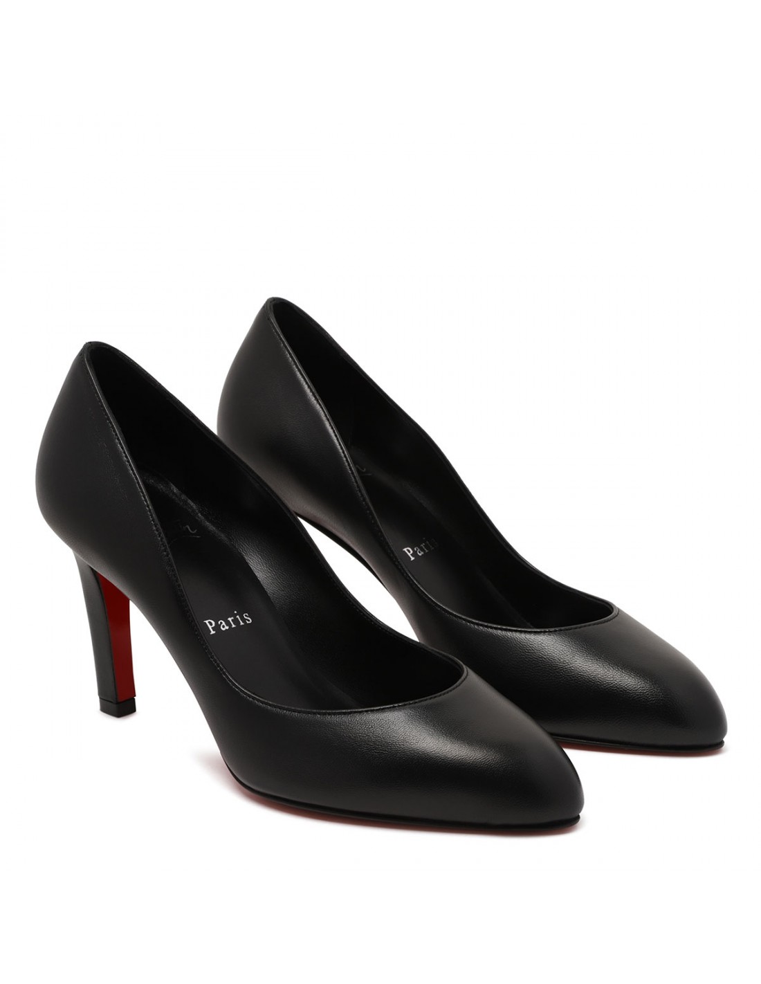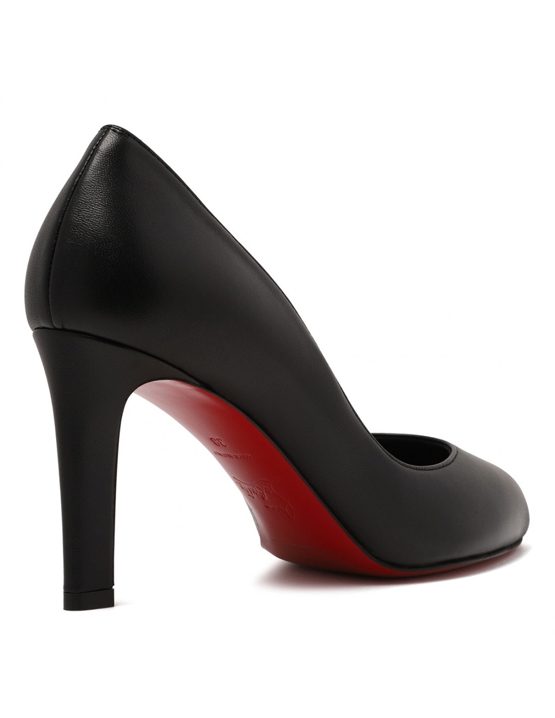 Black lamb nappa leather Fannylove pumps from Christian Louboutin featuring almond-shaped toe, 85 sculptural heel, tonal lining, padded insole, signature Louboutin red outsole.