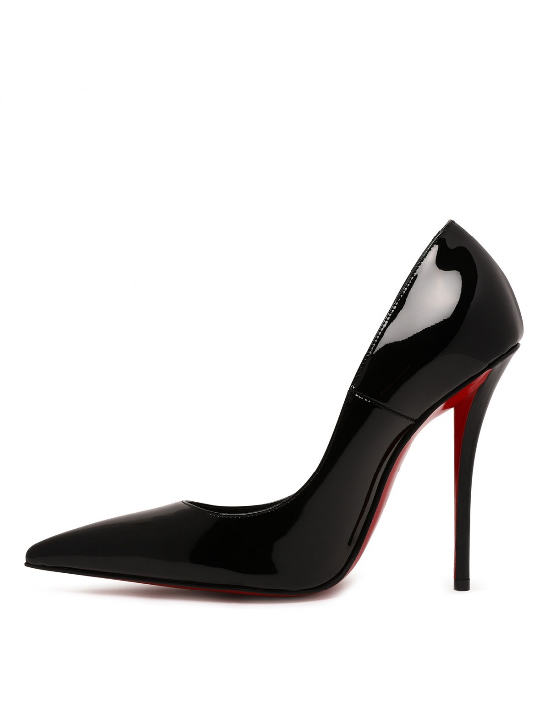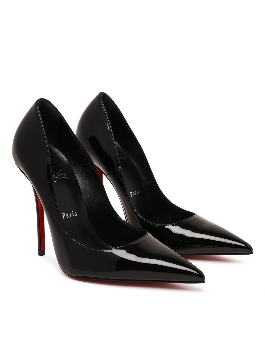 Black patent leather Miss Z pumps from Christian Louboutin featuring pointed toe, tapered silhouette, 100 stiletto heel, leather lining, padded insole, signature red leather outsole.