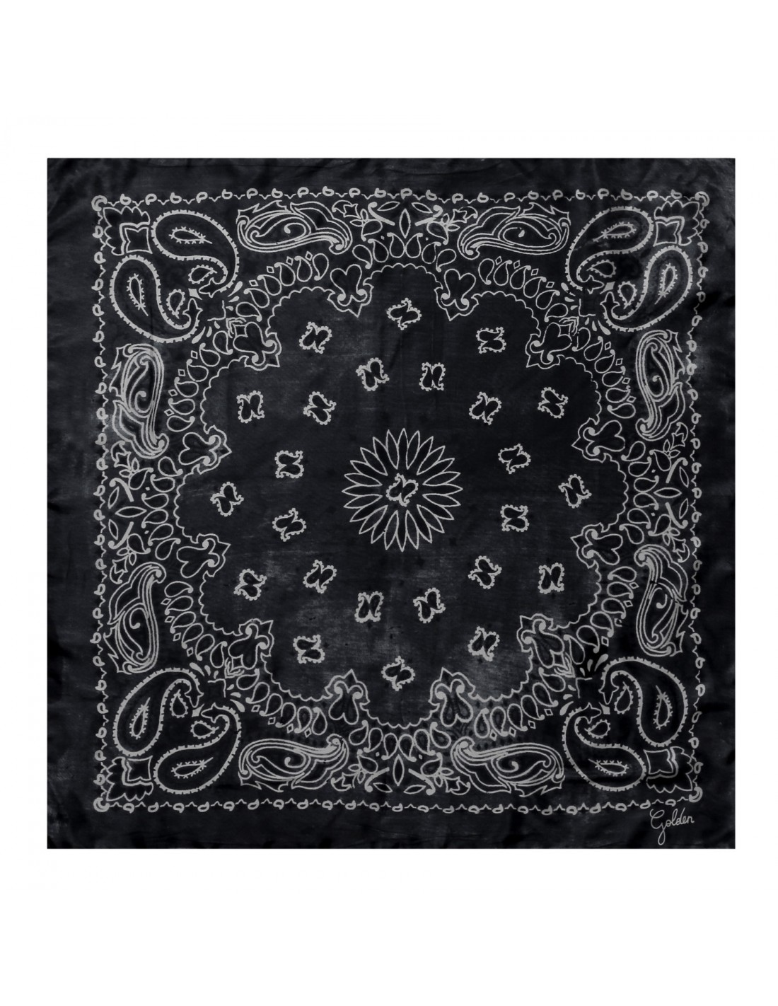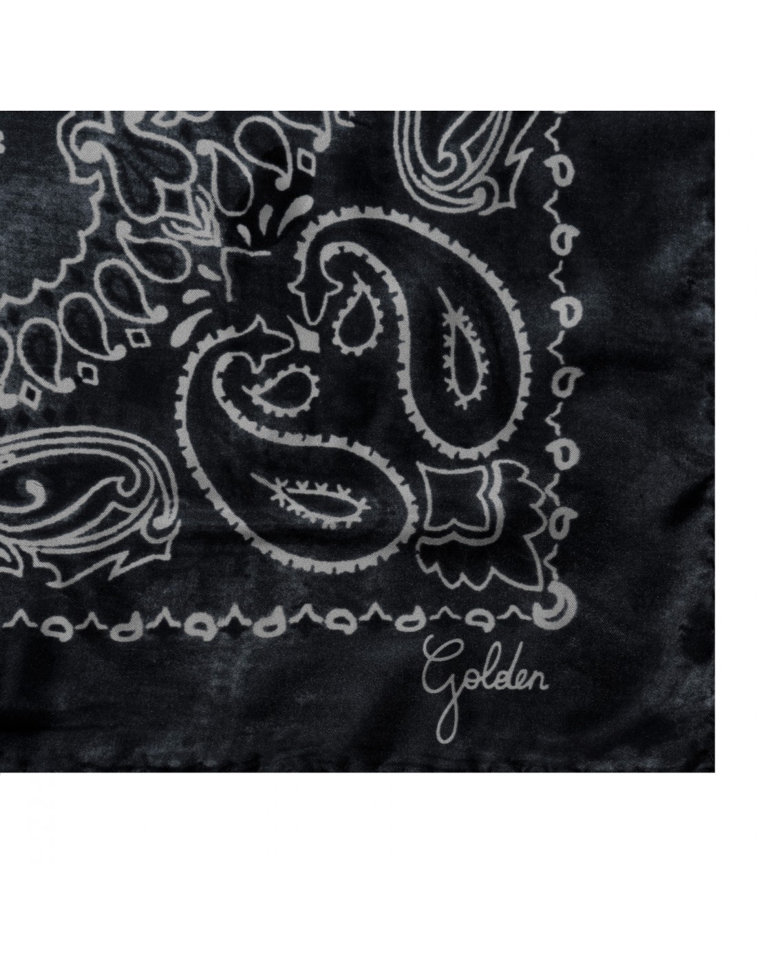 Blue pure silk scarf from Golden Goose featuring contrasting paisley pattern, Golden signature print.