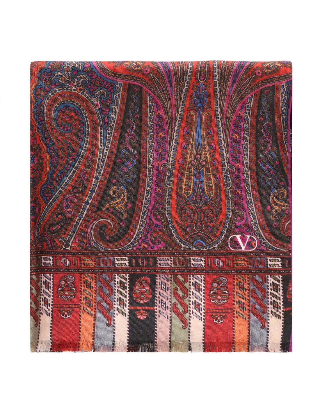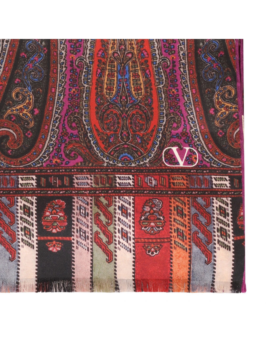 Multicolor silk scarf from Valentino Garavani featuring paisley motif printed allover, Vlogo, fringed trims.