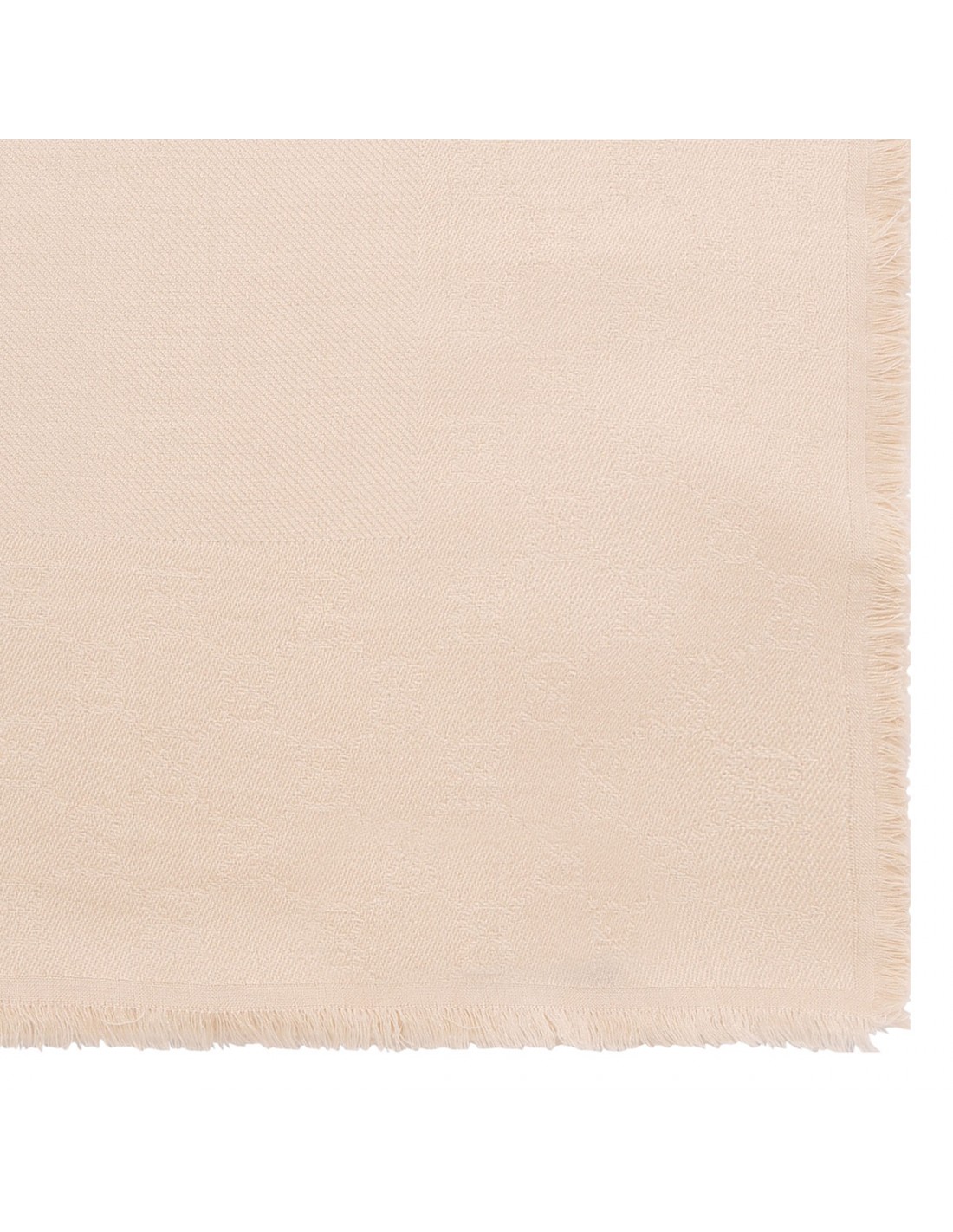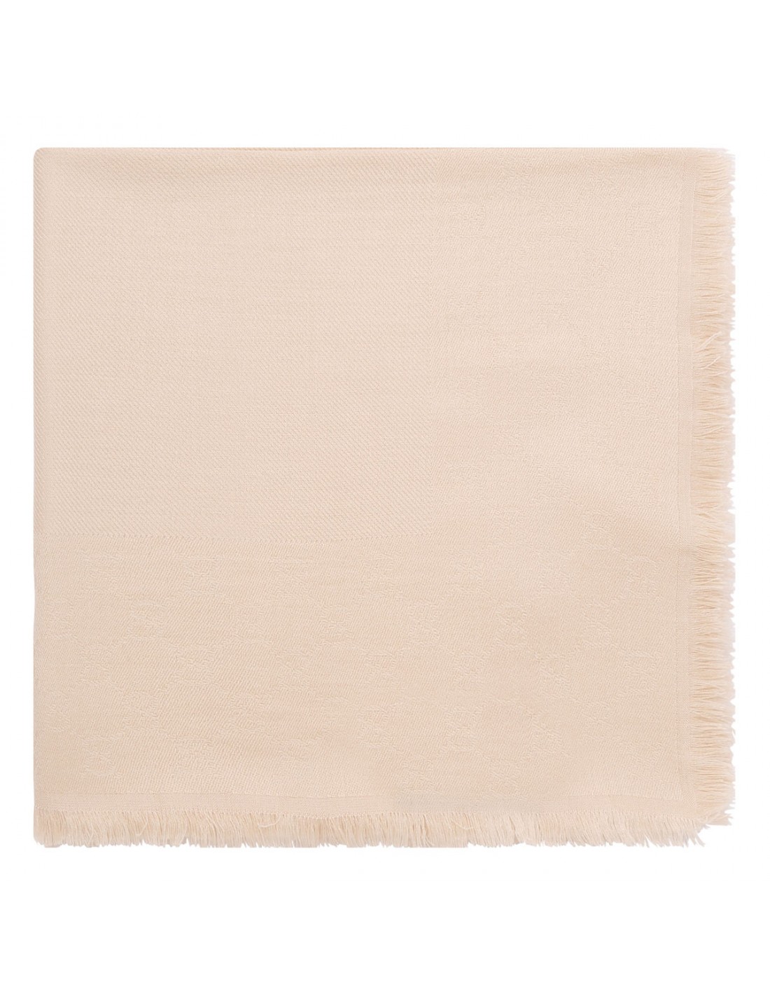 Pink wool silk blend scarf from Gucci featuring GG jacquard motif and fringed trims.