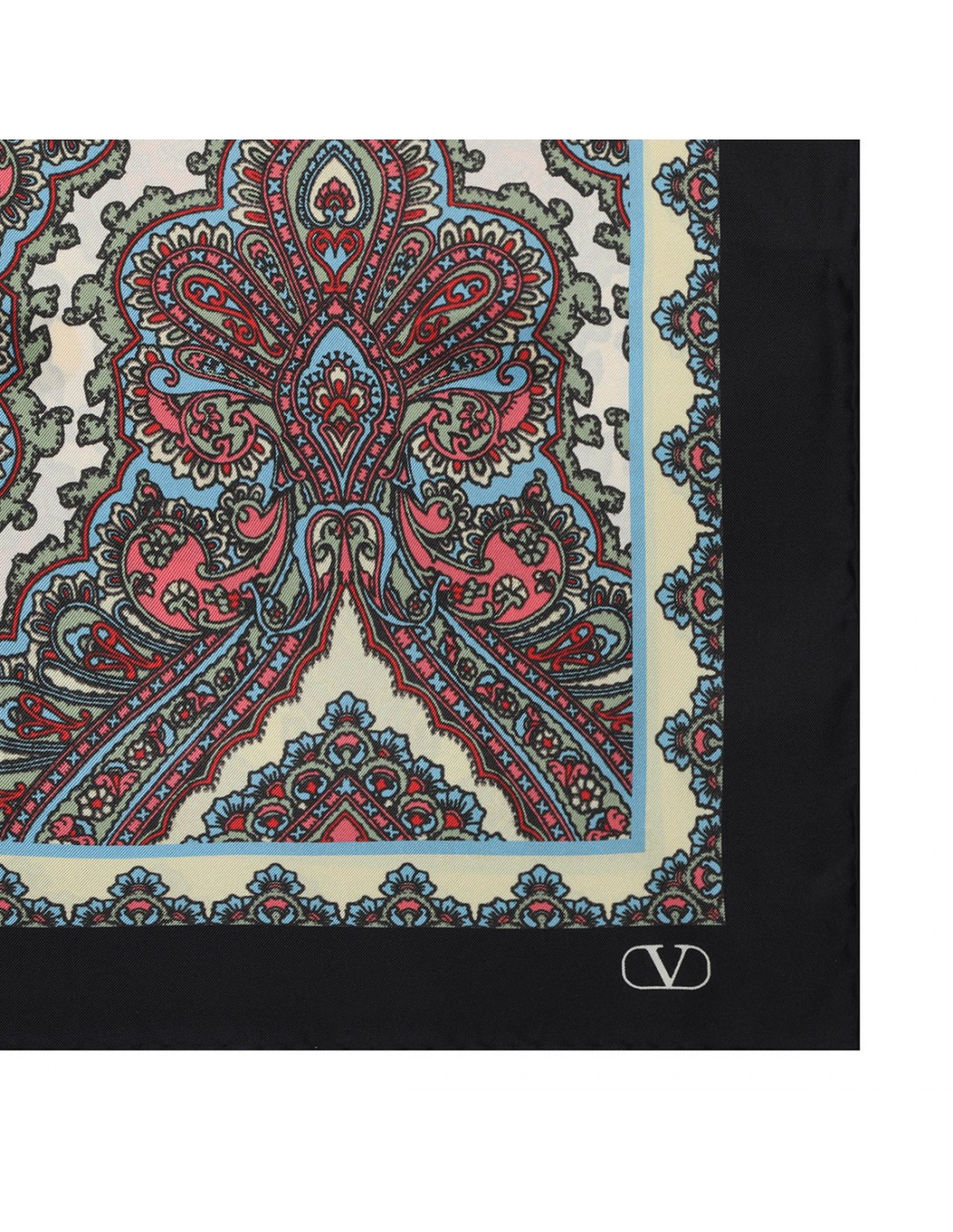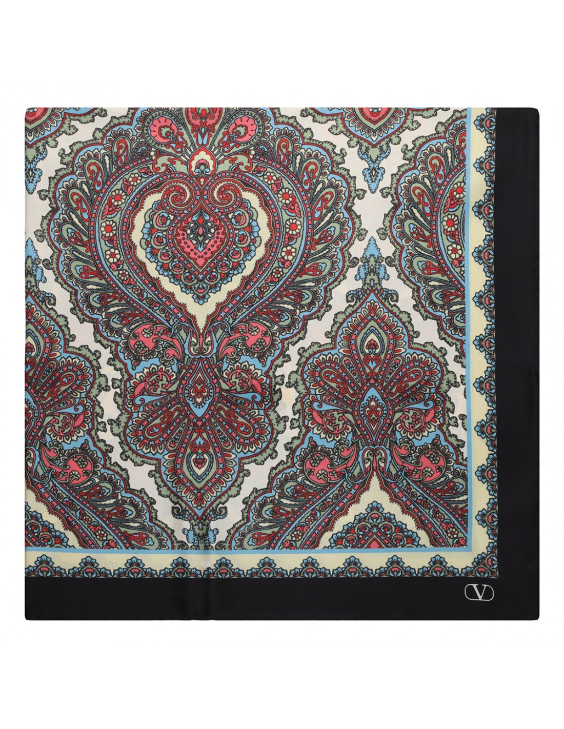 Butter, black, turquoise and red silk scarf from Valentino Featuring paisley motif, V logo print.