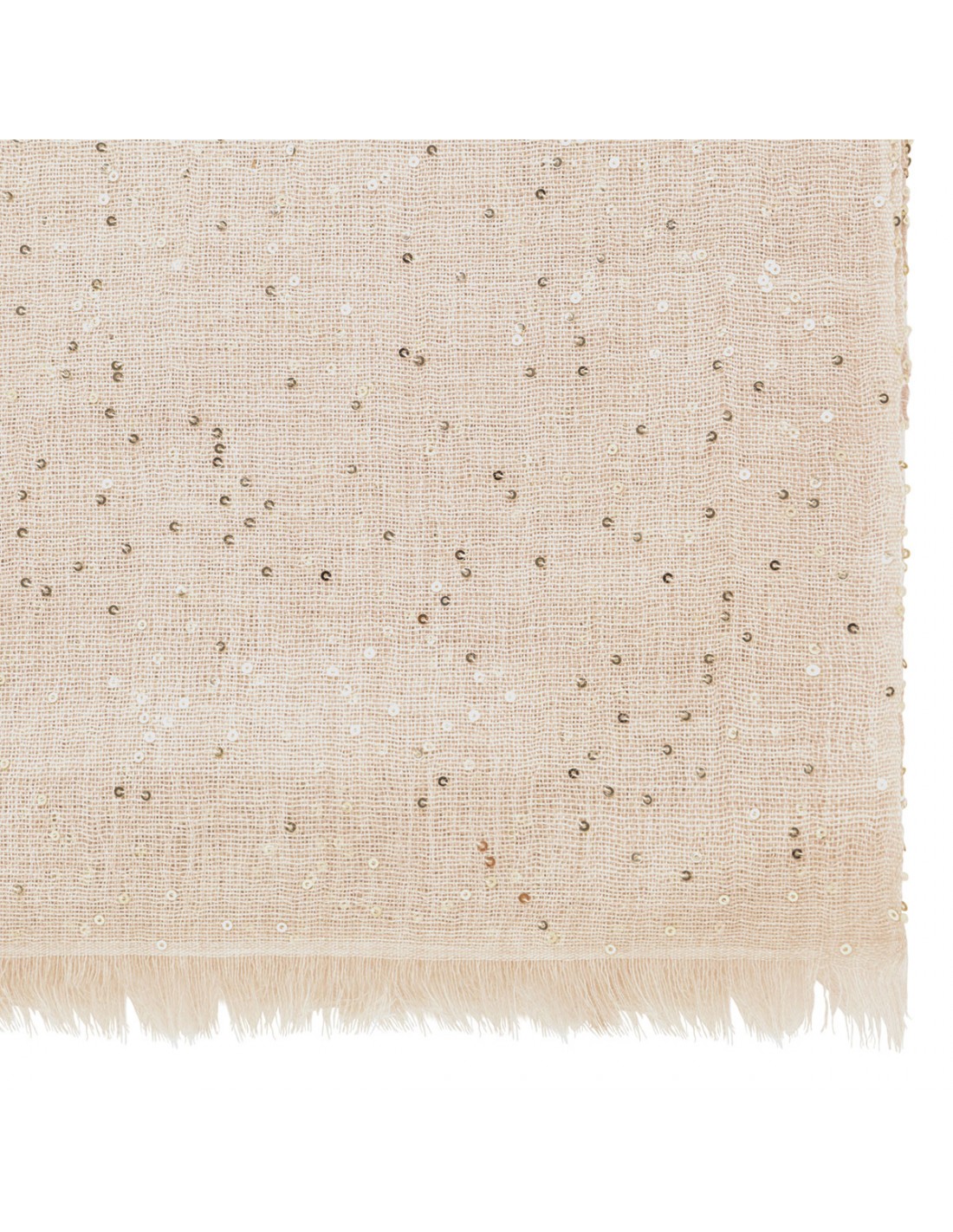 Ecru silk and wool blend scarf with sequins