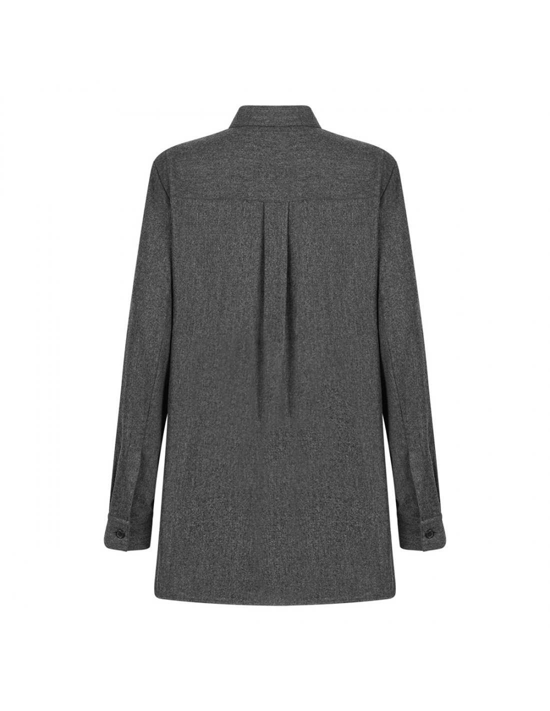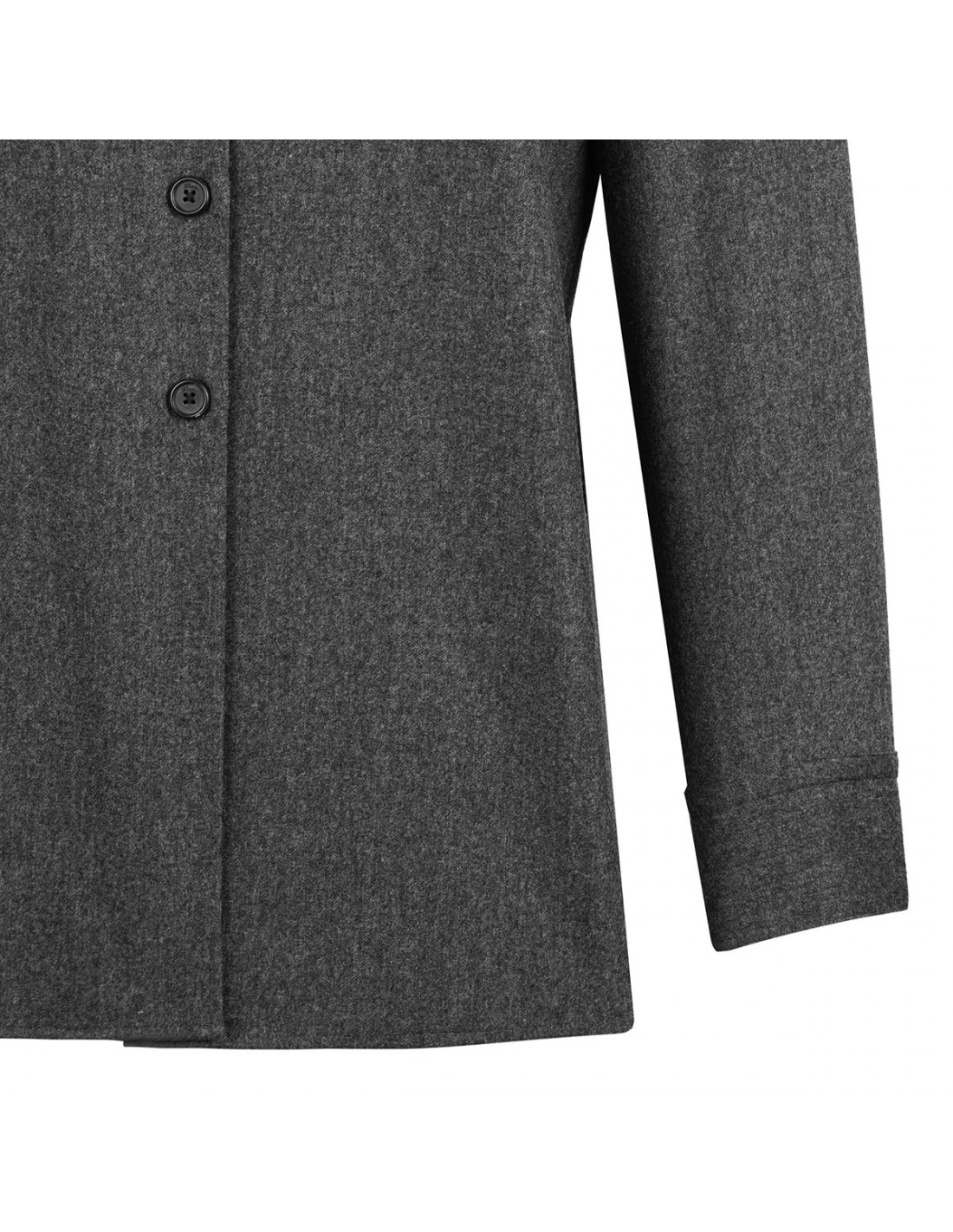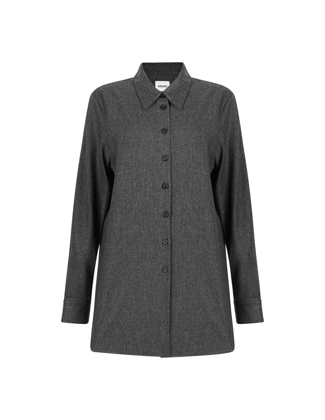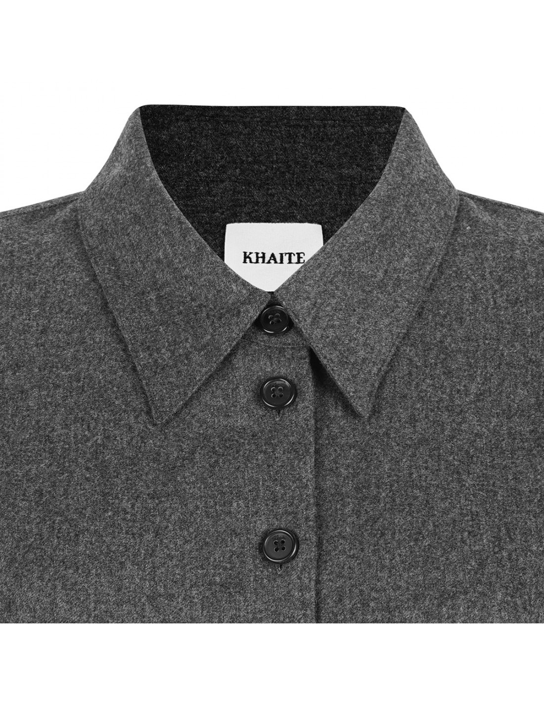 Storm gray wool and cashmere blend Auryn shirt from Khaite featuring pointed collar, button closure on front, back box pleat, long sleeves with buttoned cuffs.