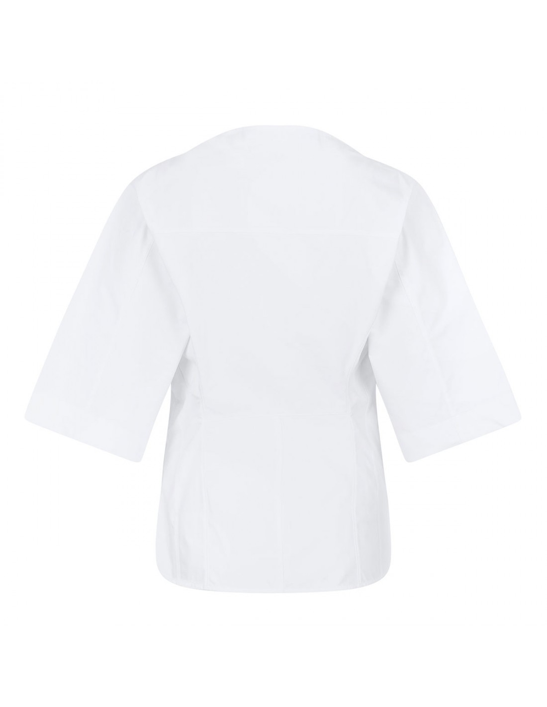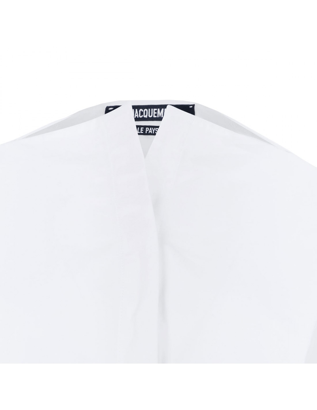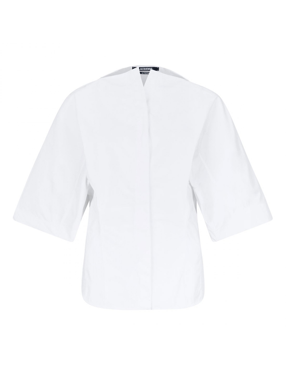 White cotton poplin The Moisson shirt from Jacquemus featuring boat neck that can be buttoned up or worn open, concealed button fastening, wide short sleeves, fitted silhouette.