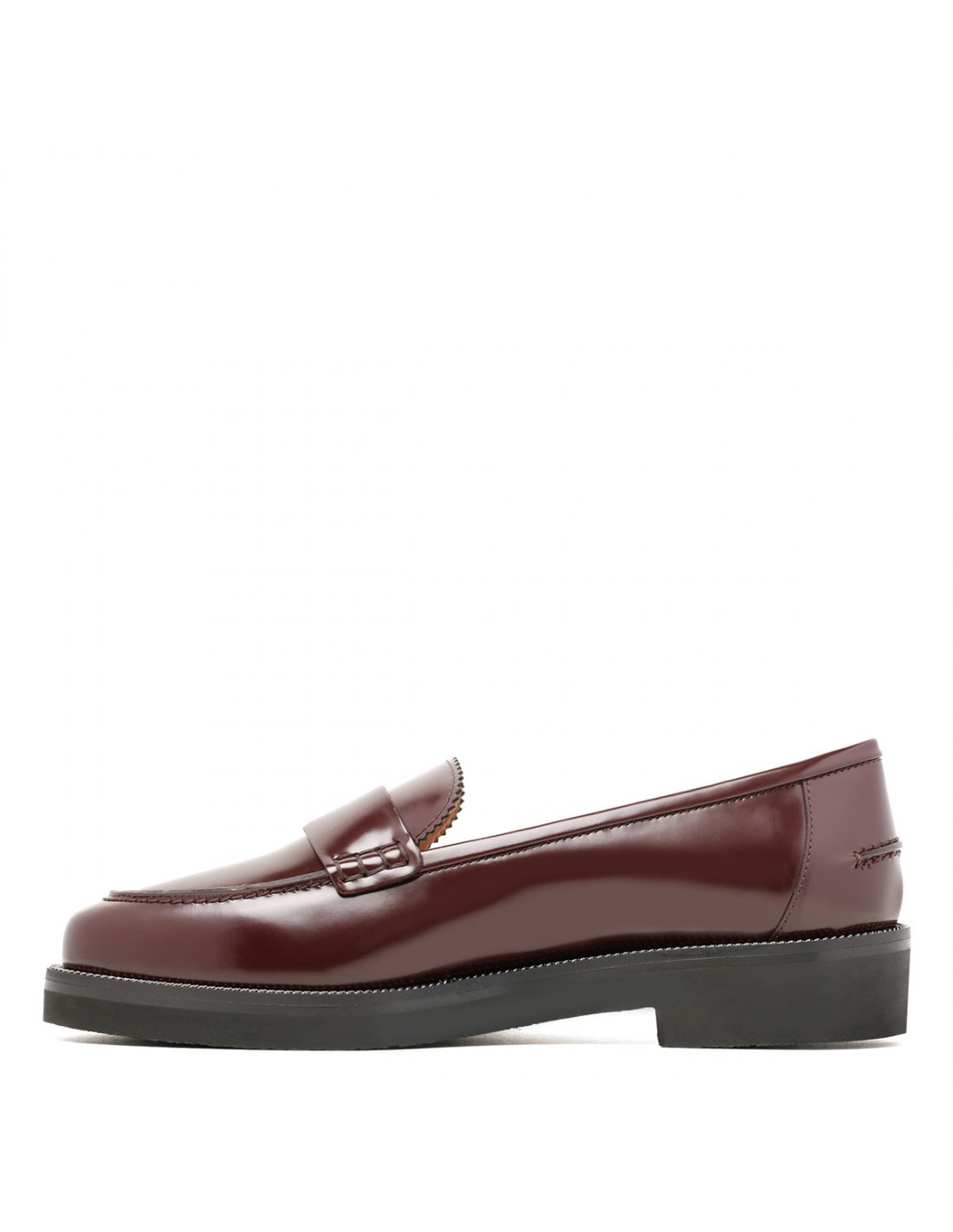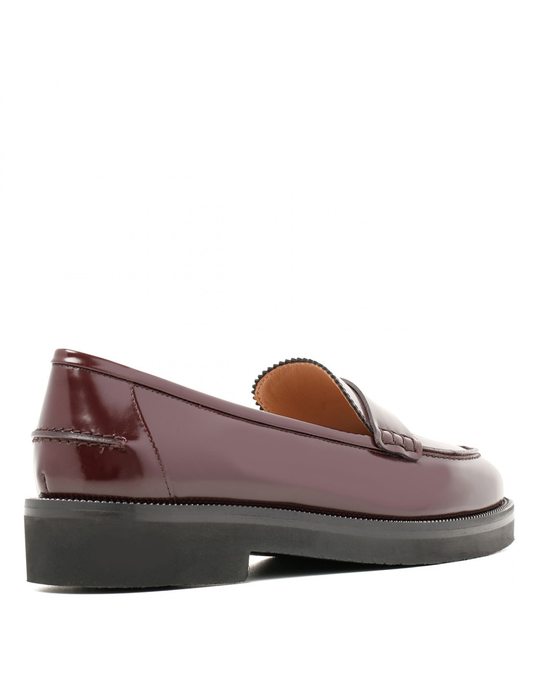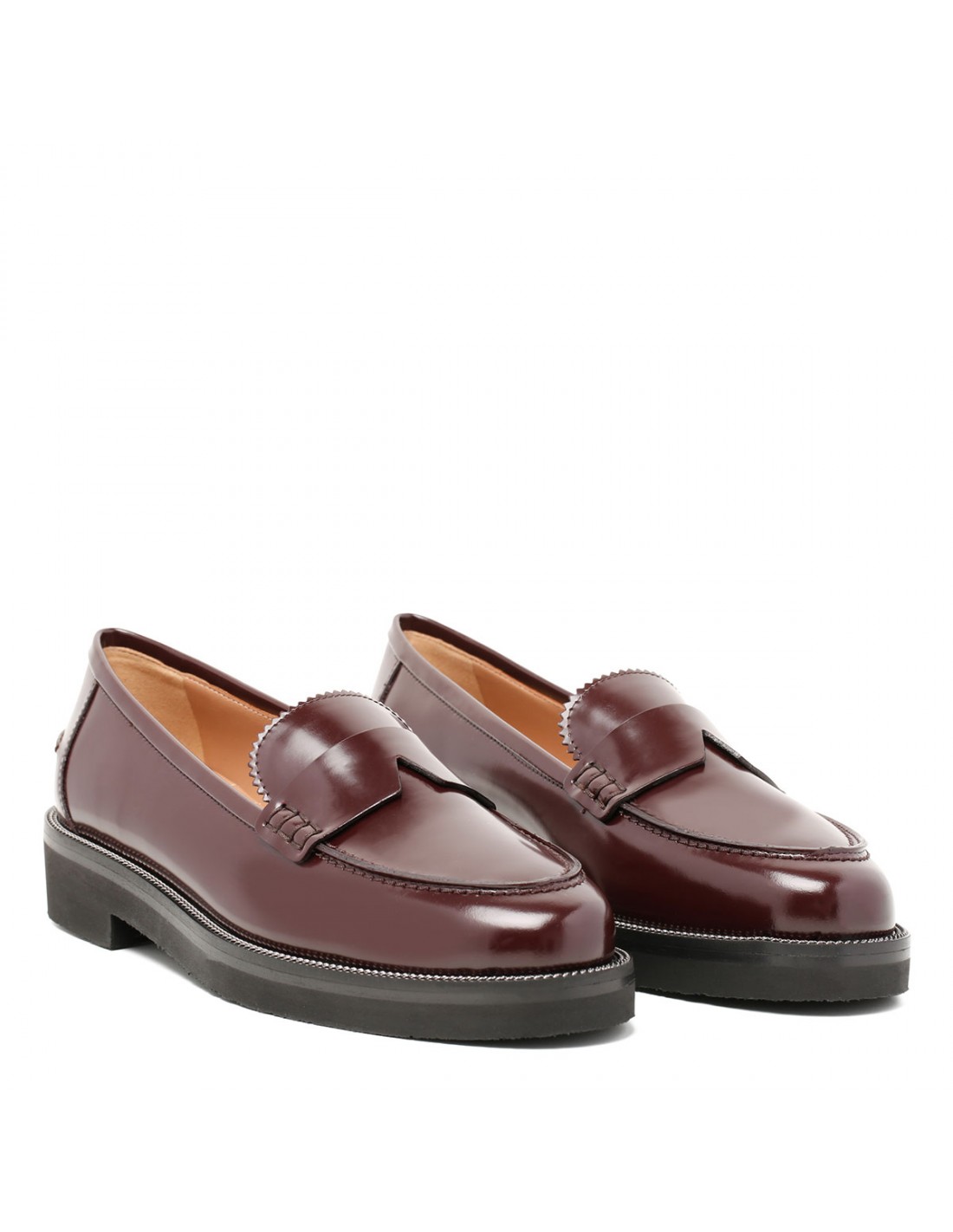 Aubergine hue brushed leather Aqua loafers from Aquazzura featuring rounded toes, classic penny-inspired detailing, low heel, padded leather insole, signature logo detailing and bold lug sole.
