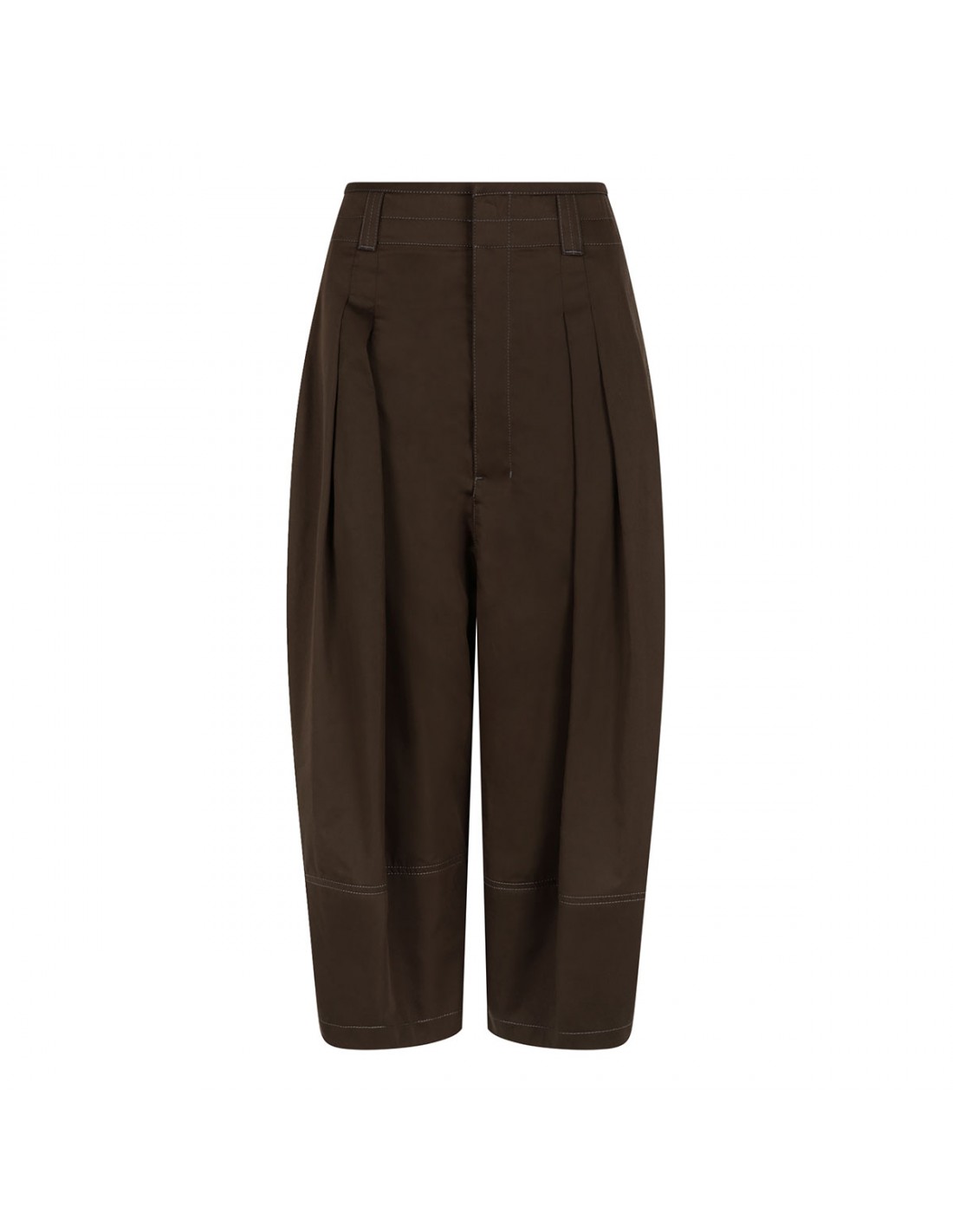 Bronze hue cotton satin Volume bermudas from Lemaire featuring balloon-cut, belt loops on the waistband, hooks, button and zip fastening, side pockets, front pleats and back welt pocket.