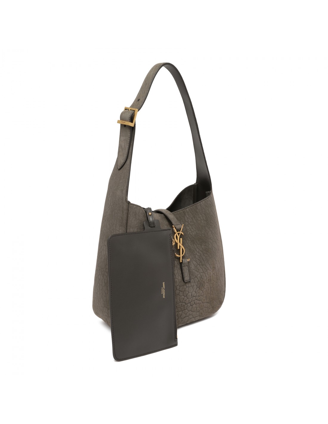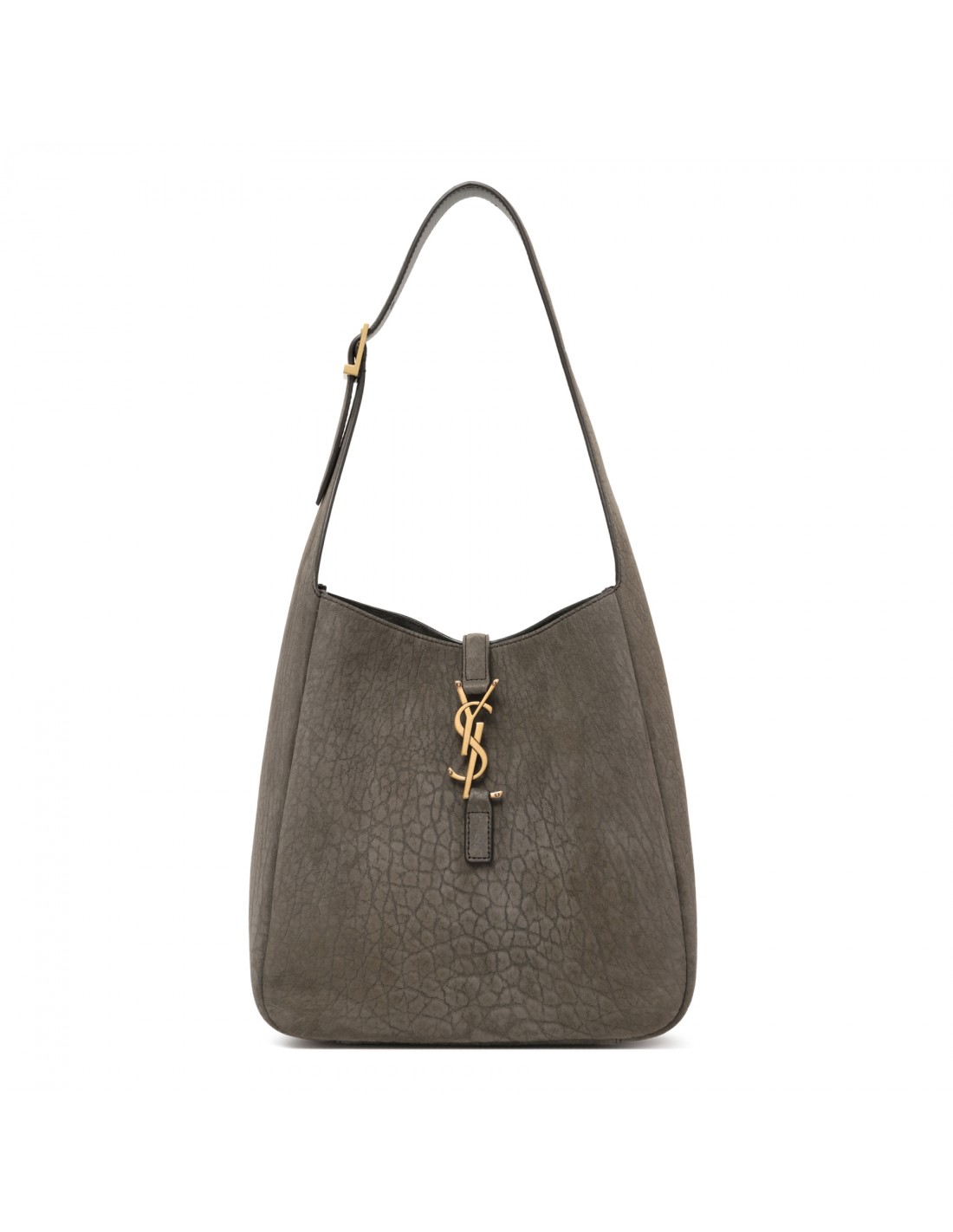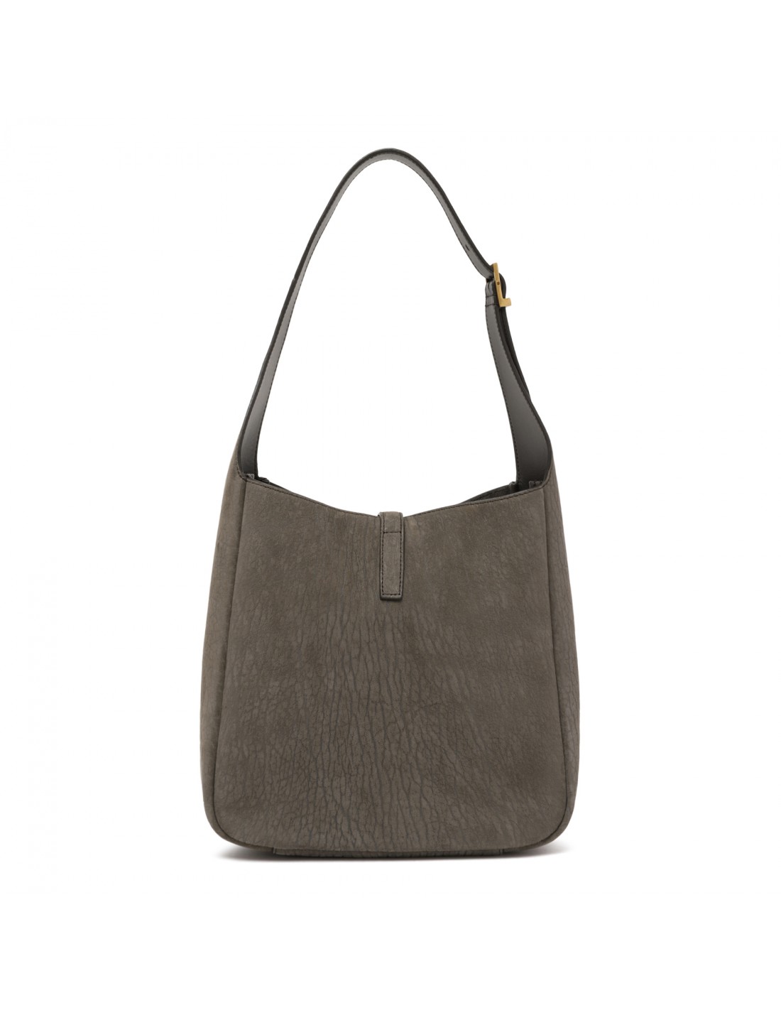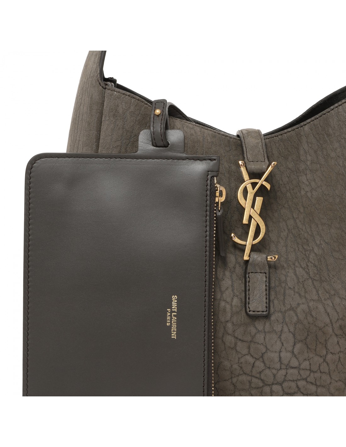 Zinc gray hue grained nubuck Le 5 à 7 supple small shoulder bag from Saint Laurent featuring leather tab closure decorated with the Cassandre hook fastening, adjustable shoulder strap, detachable zip pouch, bronze-tone hardware, suede lining.