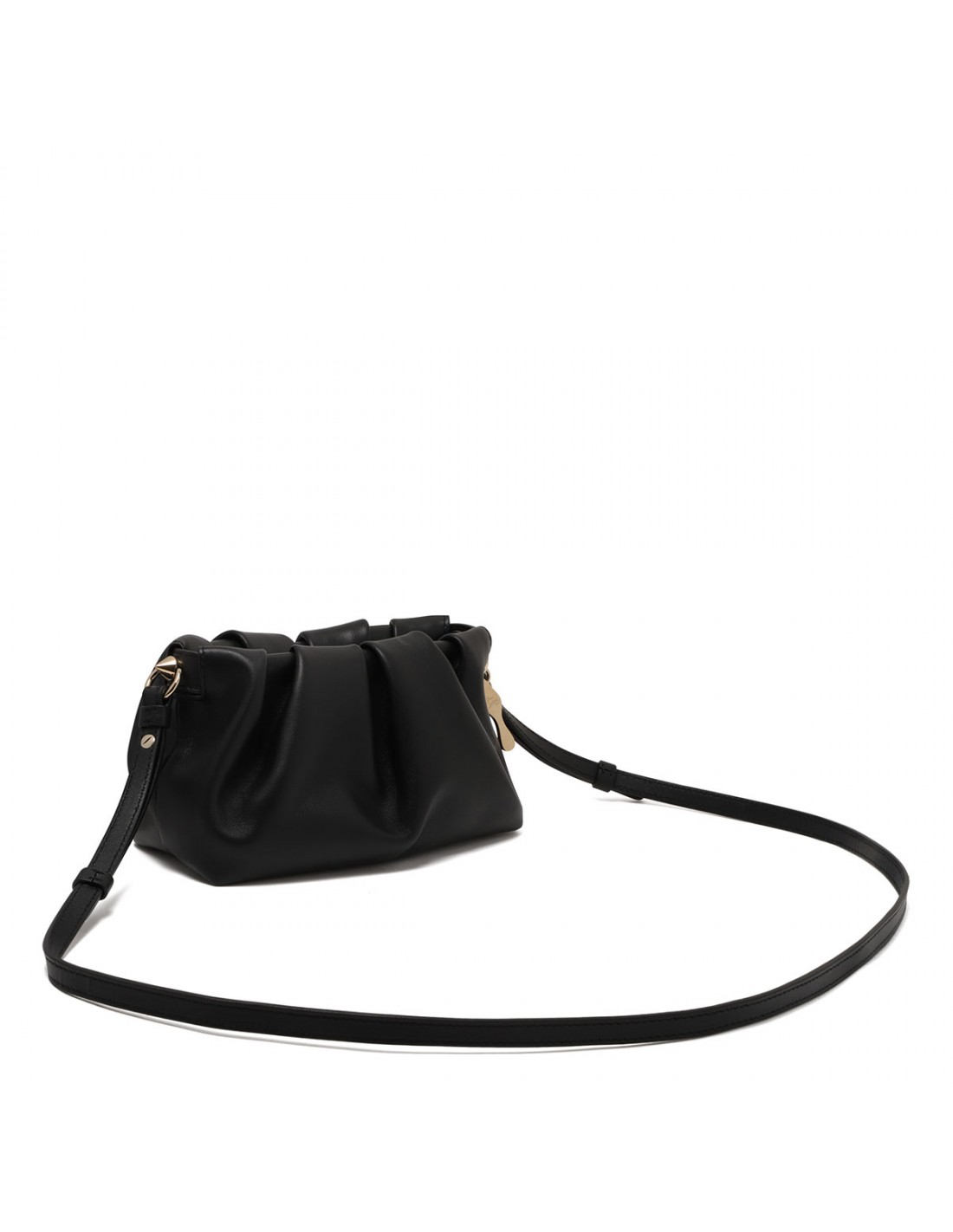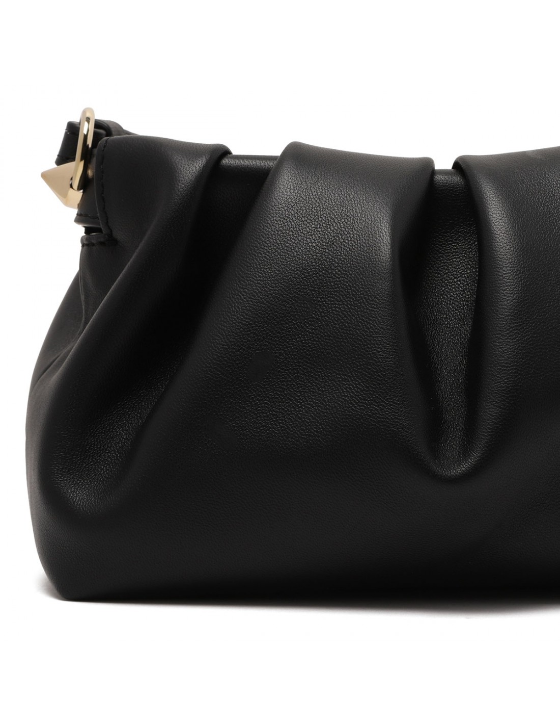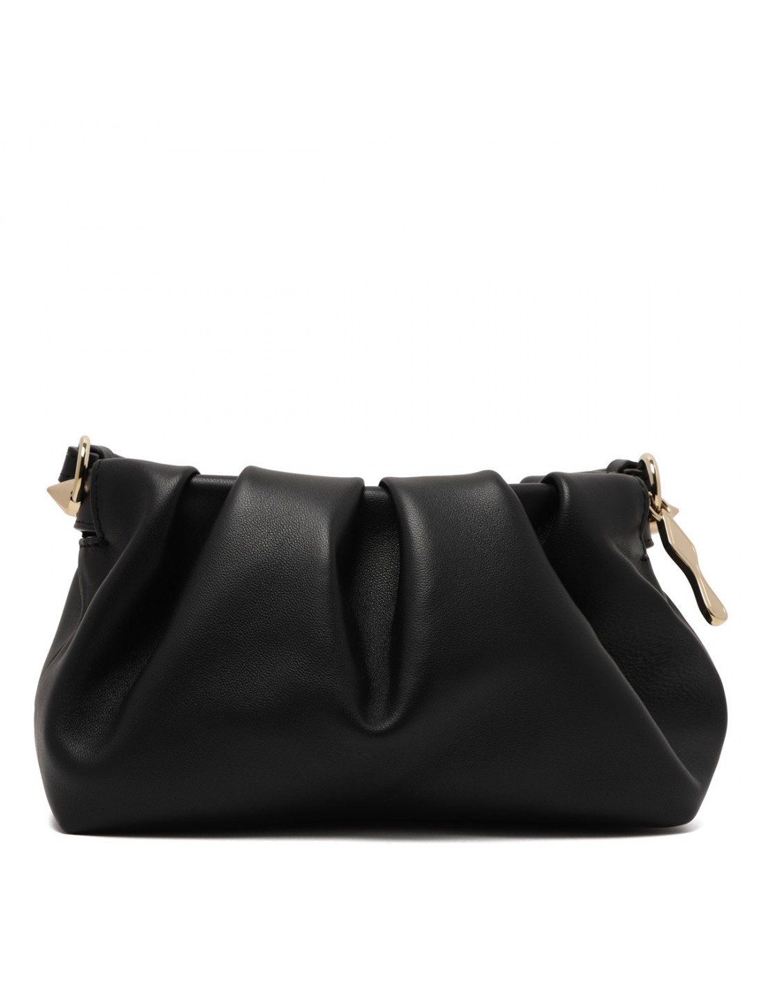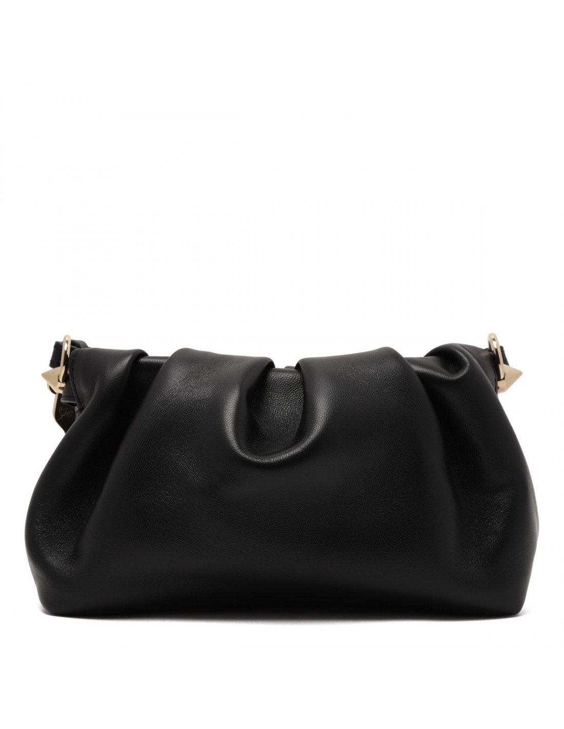 Black lamb nappa leather Eva mini shoulder bag from Christian Louboutin featuring pleated shape, spikes, iconic sole charm, magnetic fastening, adjustable leather shoulder strap, one main compartment.