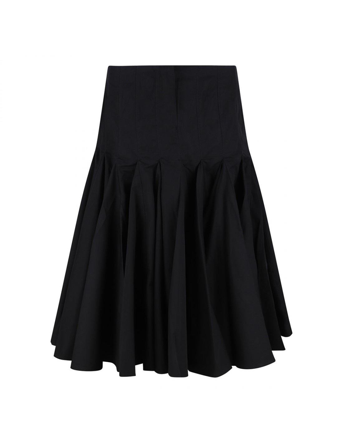 Black cotton poplin The Agave skirt from Jacquemus featuring flared silhouette below the hip with tulle lining, high waist, below-the-knee length, stitched pleats, concealed zip and button fastening, J belt loop.